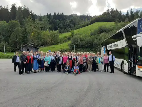 Mit dem Doppeldecker-Bus sind wir Sonntag, den 12. September 2021, recht früh, schon um 07.00 Uhr in Wörgl beim Gasthof Lamm gestartet. In Bruckhäusl sind dann noch weitere Annabund-Mitglieder zugestiegen. Insgesamt waren es 68 Wörgler und Bruckhäusler Frauen, aber besonders gefreut hat es uns, dass uns „unser Pfarrer Christian Hauser“ begleitet hat. Ziemlich pünktlich um 09.45 Uhr kamen wir in der Wallfahrtskirche „Böckstein“ zum Feiern der Hl. Messe an. Pfarrer Theo hat uns schon erwartet und gemeinsam mit Pfarrer Christian die Messe zelebriert. Danach gab´s ein Begrüßungs-Schnapserl, bevor wir die Weiterfahrt nach Bad Hofgastein ins „Weitmooser Schlössl“ angetreten haben, wo wir mit einem vorzüglichen Mittagessen bereits erwartet wurden. Gewohnt humorvoll, mit dem berühmten „Lacher“ von Pfarrer Theo, wurde es eine gemütliche Mittagsrast. Nach einem kurzen Spaziergang durch Bad Hofgastein, einige haben neben der Kirche auch noch den Pfarrhof besichtigt, wurden wir im „Hotel Bad Hofgastein“ mit Kaffee und Kuchen verwöhnt. Danach mussten wir uns leider wieder von Pfarrer Theo verabschieden, aber wir wurden im Bus von unserem Pfarrer Christian und unserer Obfrau Lisbeth Werlberger mit Keksen, Süßigkeiten, Schnapserl usw. fast während der ganzen Fahrt bedient und betreut.