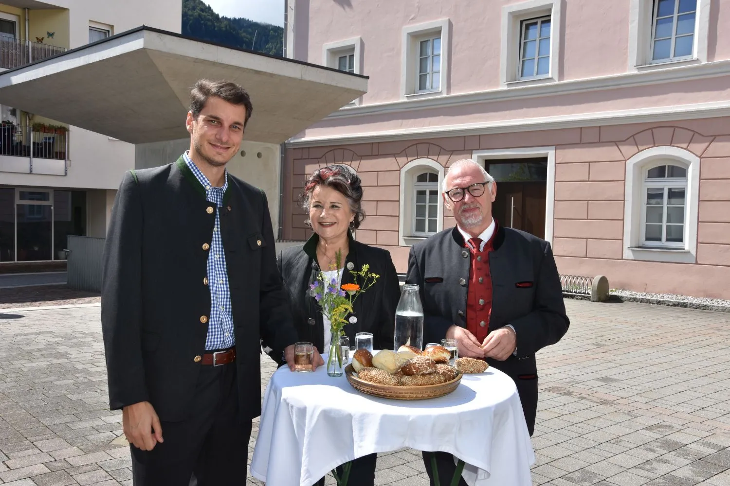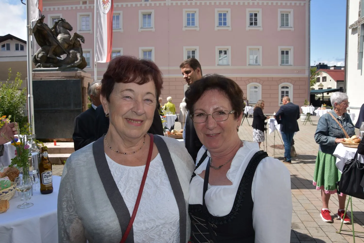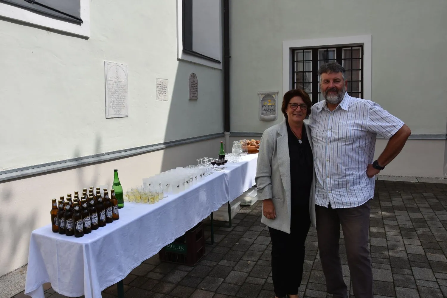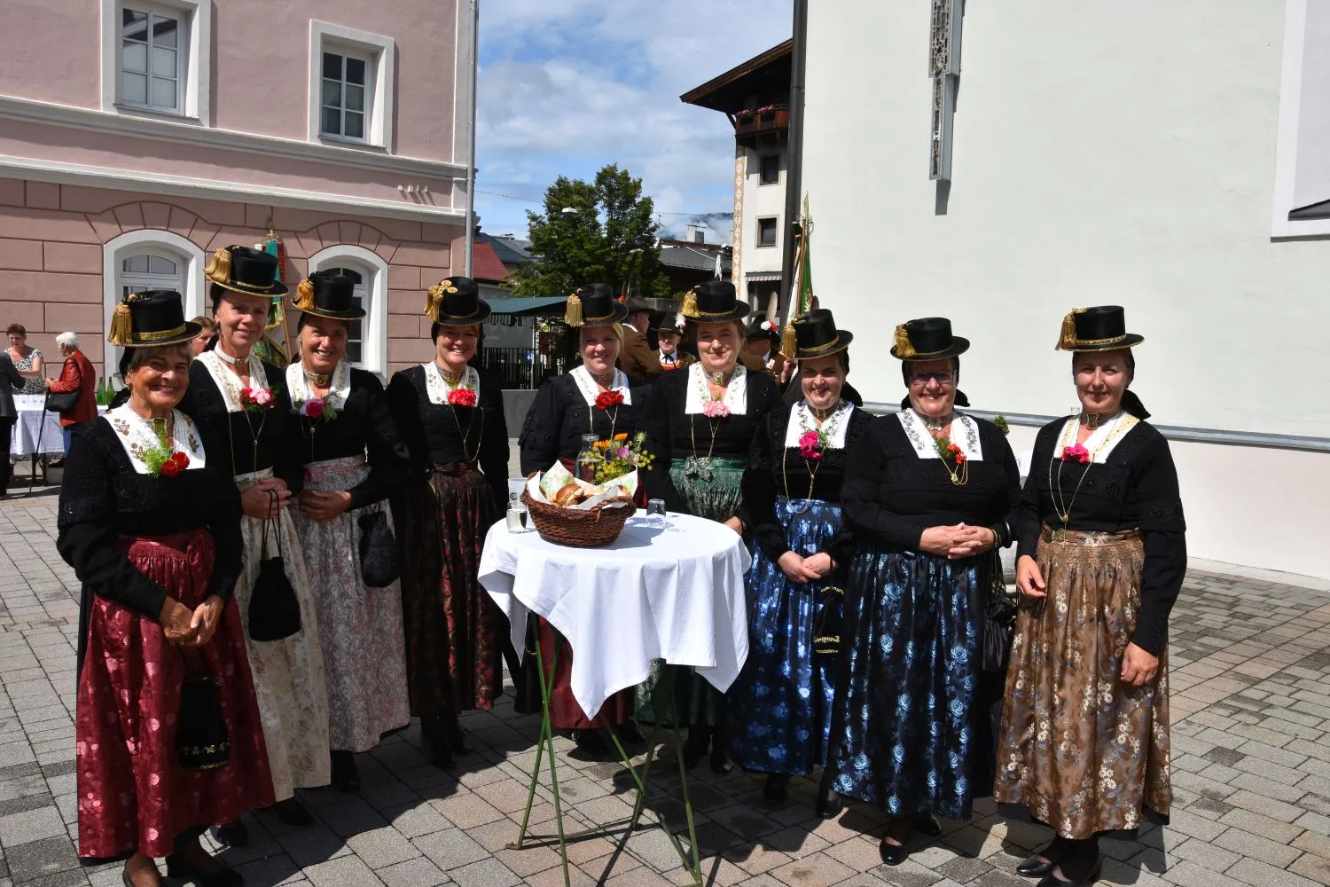 Im Anschluss gab es dann noch eine Agape im Kirchhof, der von fleißigen MitarbeiterInnen der Pfarre zu einem wunderschönen Ort des Feierns hergerichtet wurde. Den Blumenschmuck dafür bereitete Leni Scharnagl gekonnt und mit viel Liebe vor. Man merkte, dass den Menschen nach der langen Absenz sozialer Zusammenkünfte das gemeinsame Plaudern bei einem Gläschen Wein und mit einem Jourgebäck der Fa. Mitterer Spaß machte.