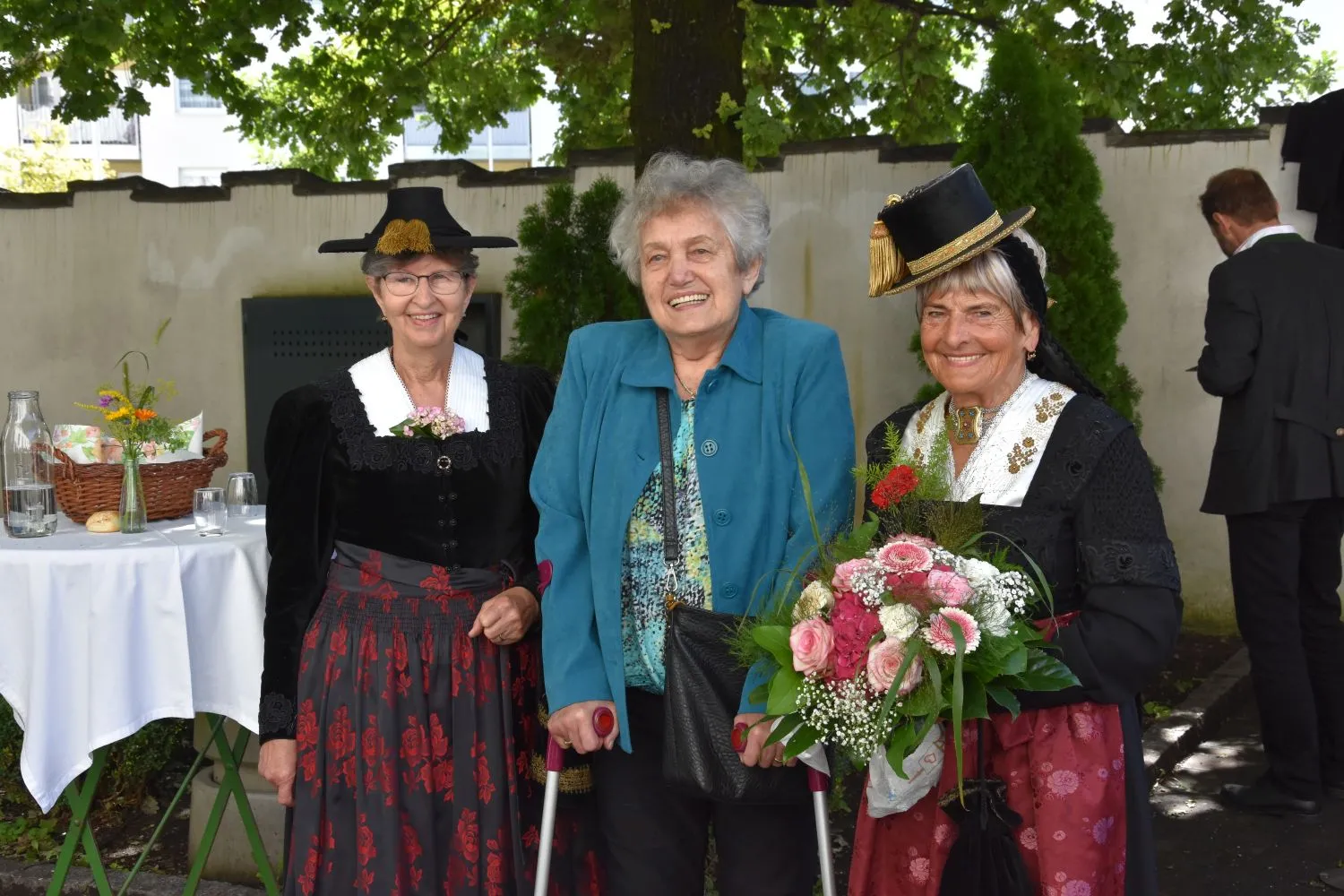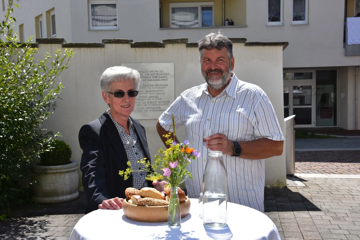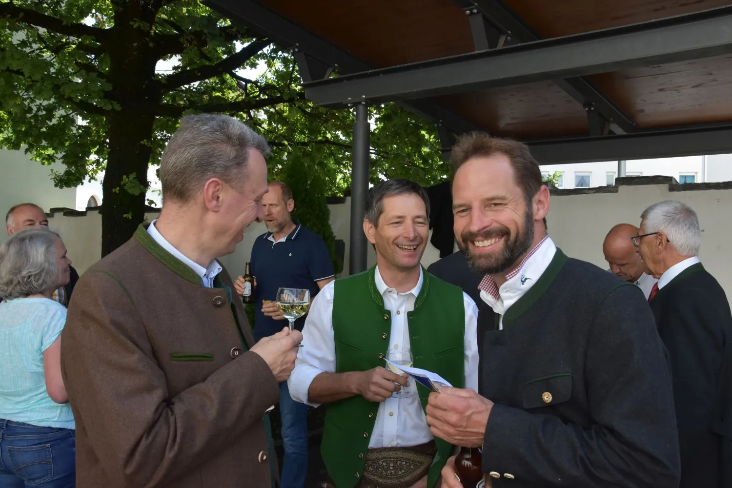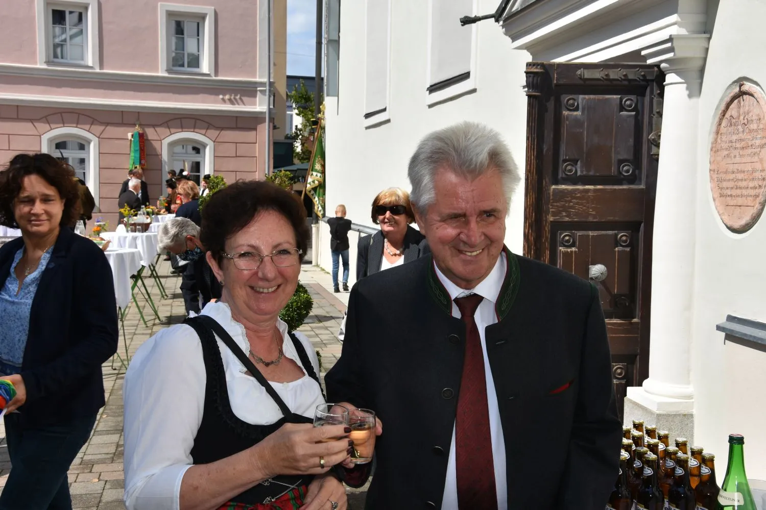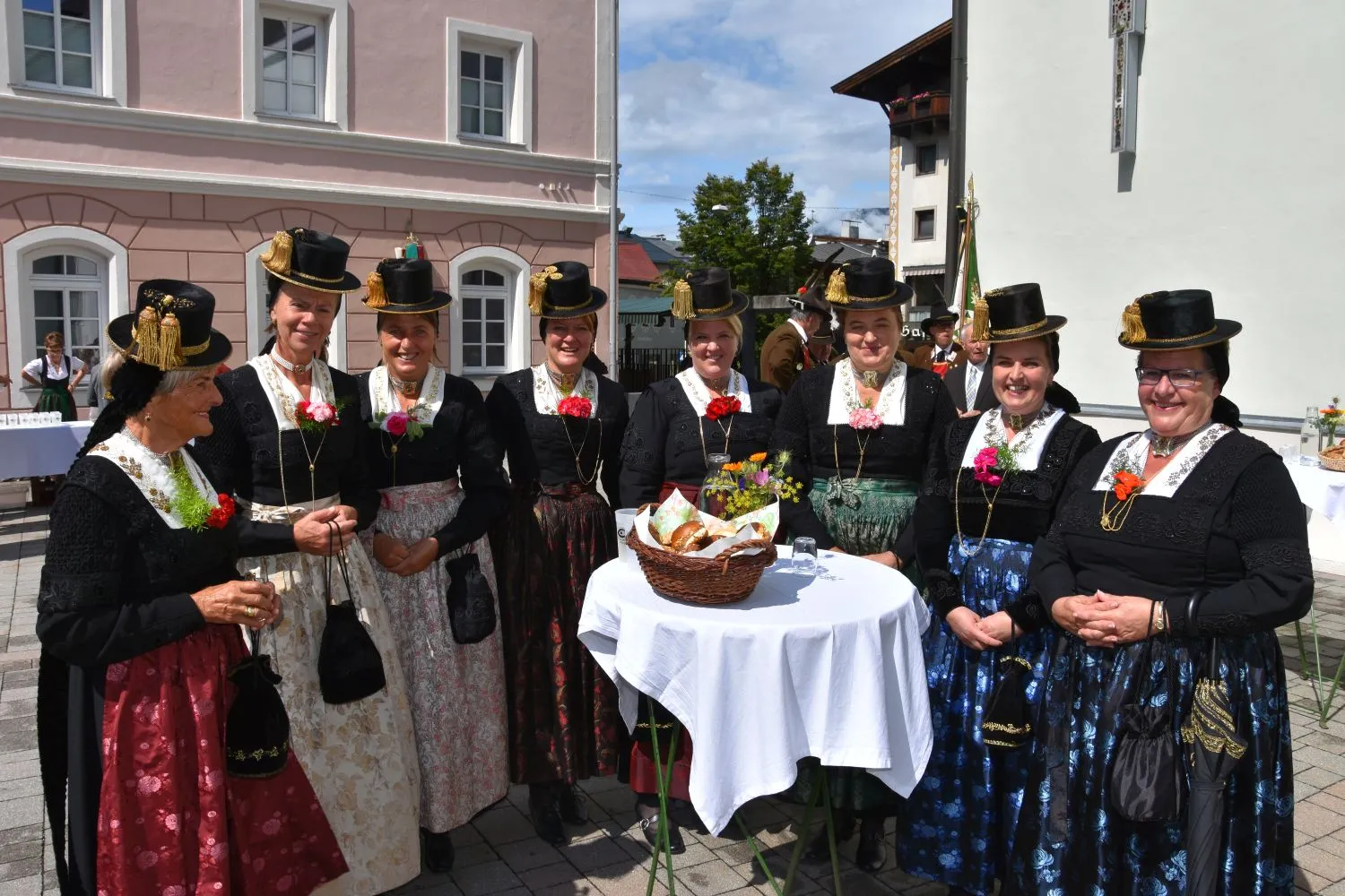 Im Anschluss gab es dann noch eine Agape im Kirchhof, der von fleißigen MitarbeiterInnen der Pfarre zu einem wunderschönen Ort des Feierns hergerichtet wurde. Den Blumenschmuck dafür bereitete Leni Scharnagl gekonnt und mit viel Liebe vor. Man merkte, dass den Menschen nach der langen Absenz sozialer Zusammenkünfte das gemeinsame Plaudern bei einem Gläschen Wein und mit einem Jourgebäck der Fa. Mitterer Spaß machte.