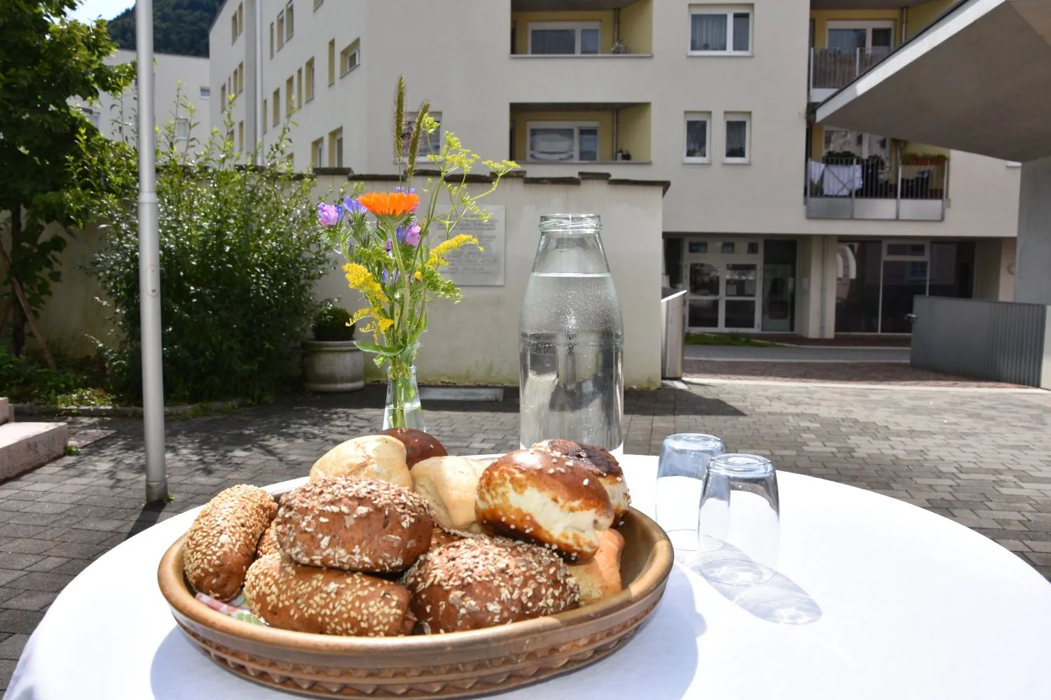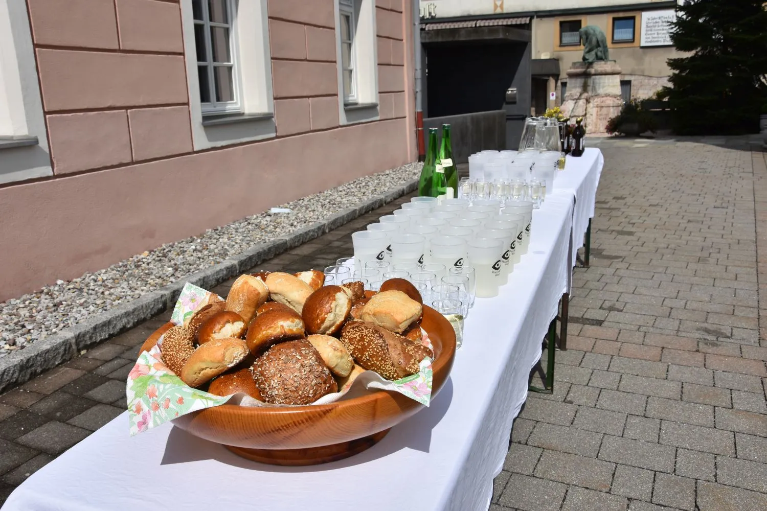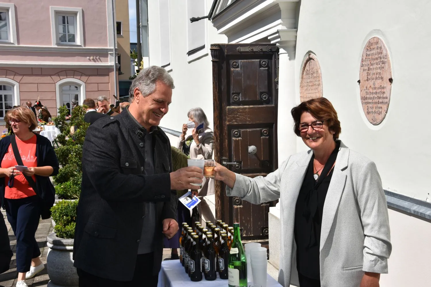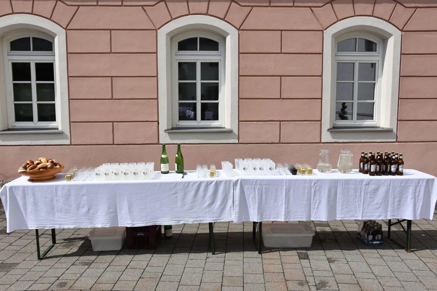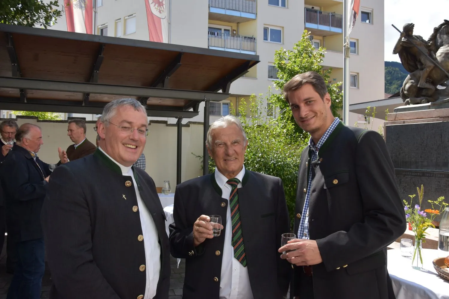 Im Anschluss gab es dann noch eine Agape im Kirchhof, der von fleißigen MitarbeiterInnen der Pfarre zu einem wunderschönen Ort des Feierns hergerichtet wurde. Den Blumenschmuck dafür bereitete Leni Scharnagl gekonnt und mit viel Liebe vor. Man merkte, dass den Menschen nach der langen Absenz sozialer Zusammenkünfte das gemeinsame Plaudern bei einem Gläschen Wein und mit einem Jourgebäck der Fa. Mitterer Spaß machte.