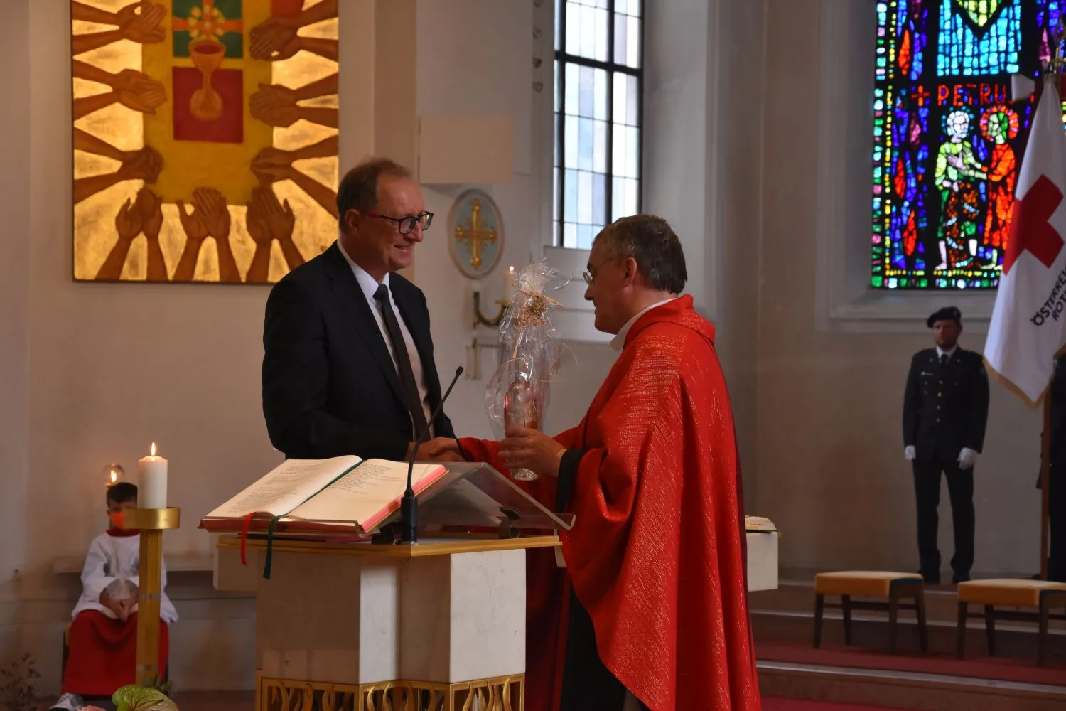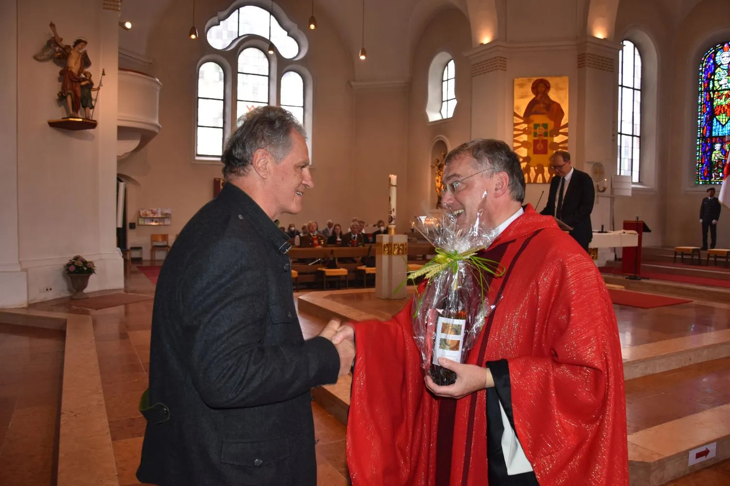 PGR-Obmann Werlberger bedankte sich auch beim ehemaligen Pfarrer Theo Mairhofer, der urlaubsdingt nicht anwesend sein konnte. Er legte den Grundstein für die Kirchenrenovierung und beeinflusste mit seiner humorvollen, offenen Art die Spendenbereitschaft sehr positiv. Pfarrer Christian wurde gedankt, der hier nahtlos an Mairhofer anschloss und die Kirchenrenovierung zu einem guten Abschluss brachte.