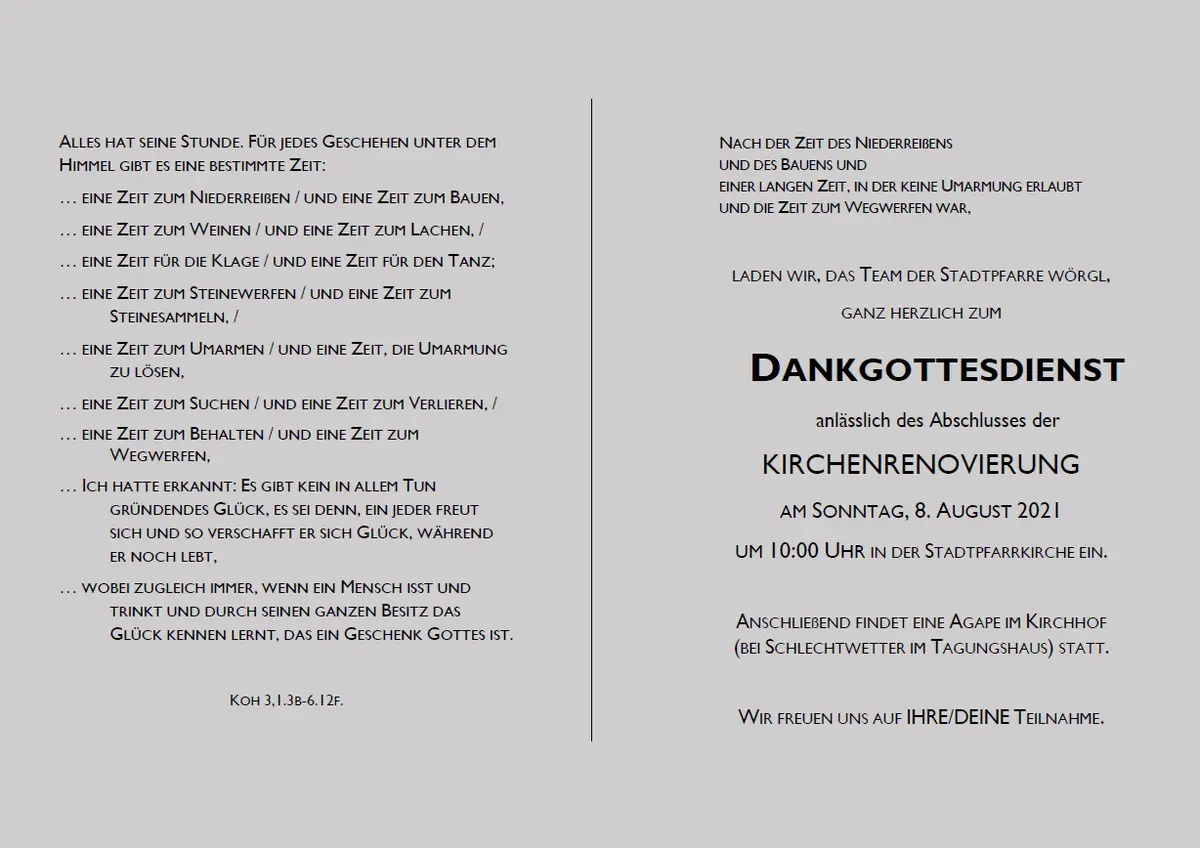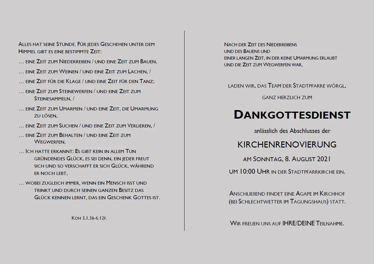 Das Kapitel "Kirchenrenovierung 2017 - 2020" wurde damit auch unter dem sozialen Aspekt zu einem guten Ende gebracht.