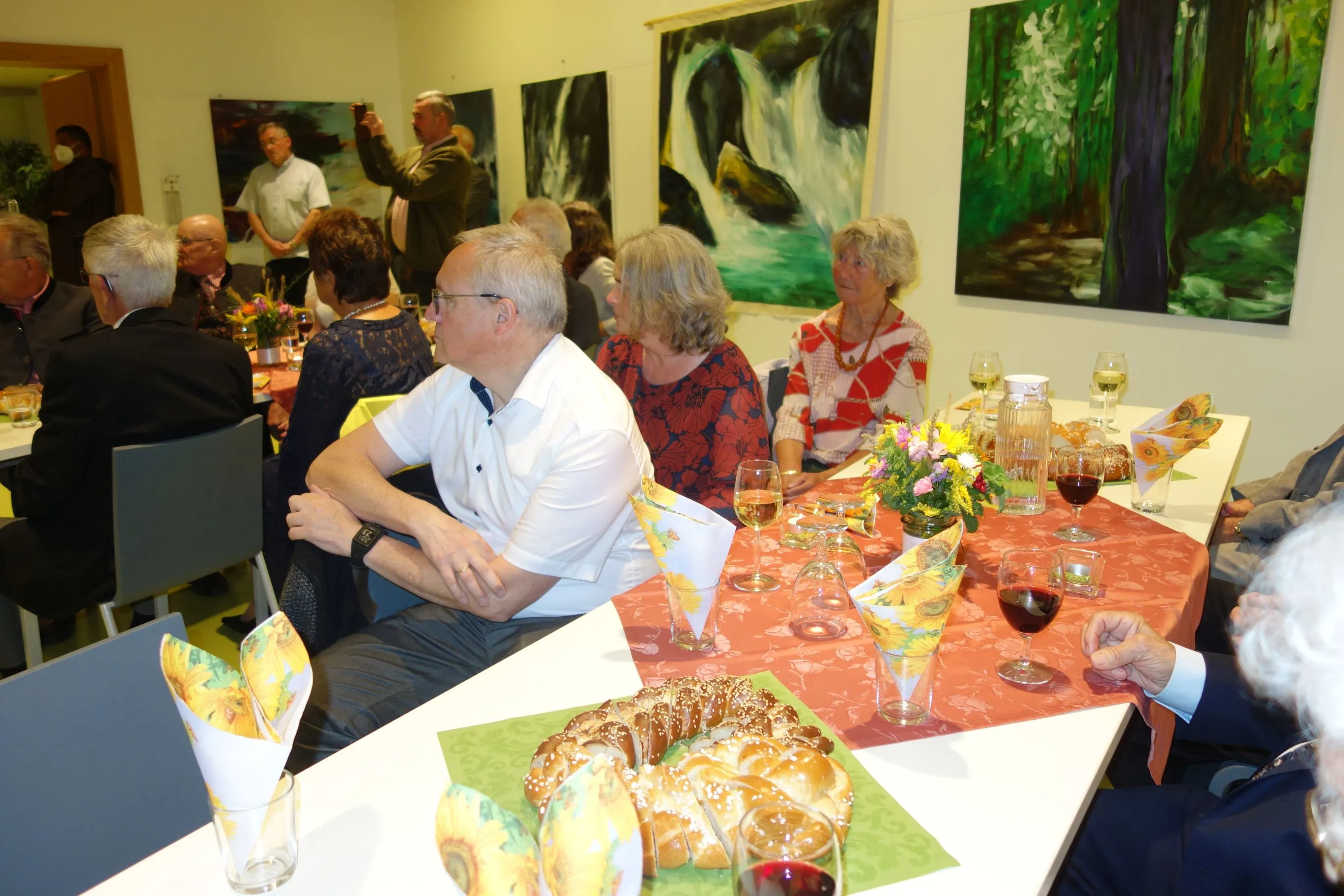 Nach dem Gottesdienst, den Pfarrer Christian inhaltlich gemeinsam mit dem Ausschuss Ehe und Familie unter der Leitung von Brigitte und Franz Schnellrieder vorbereitete und der musikalisch vom Chor Sonamus umrahmt wurde, gab es noch ein gemütliches Beisammensein der Paare, bei dem so manch nette Anektode aus dem Leben der Paare zum Besten gegeben wurde. Die gute Stimmung trug zu einem gelungenen Abend bei.