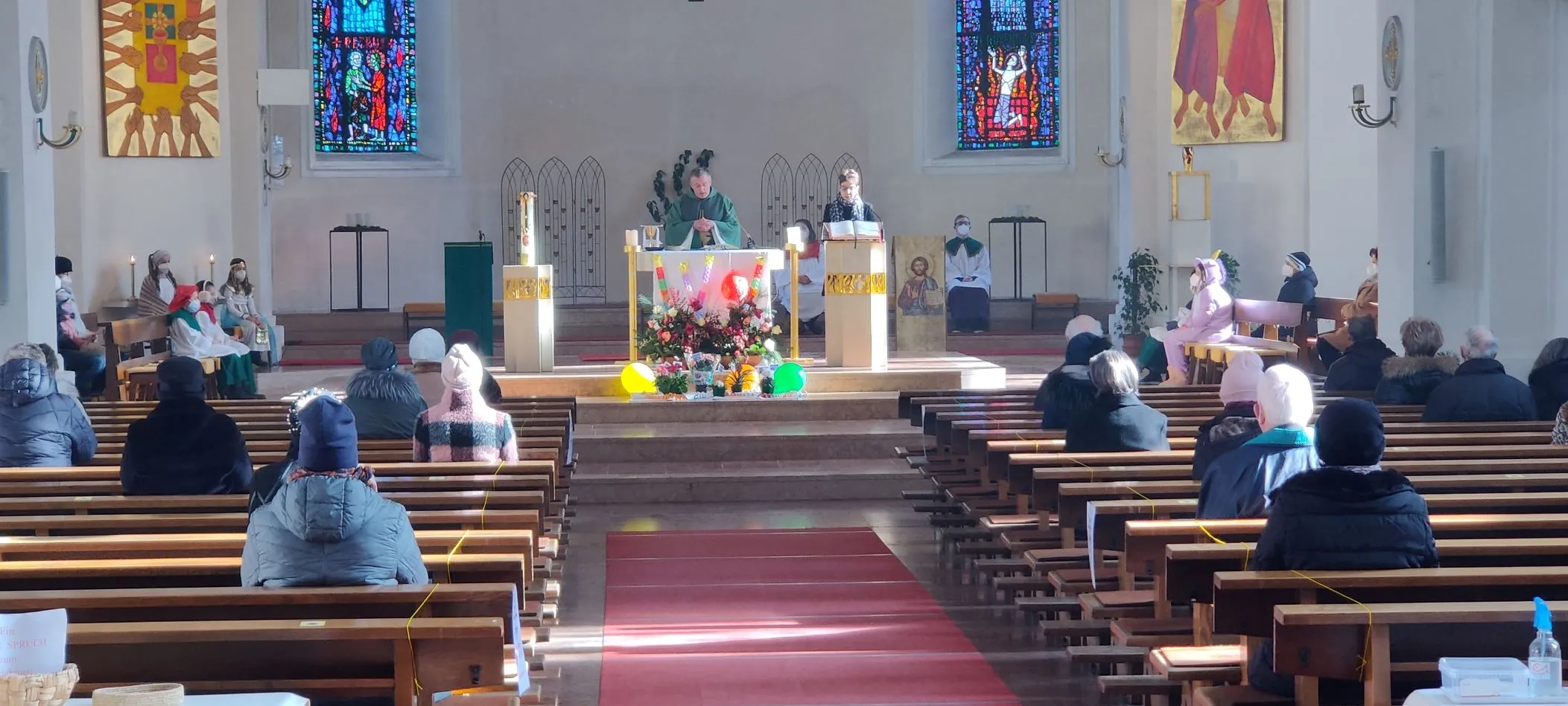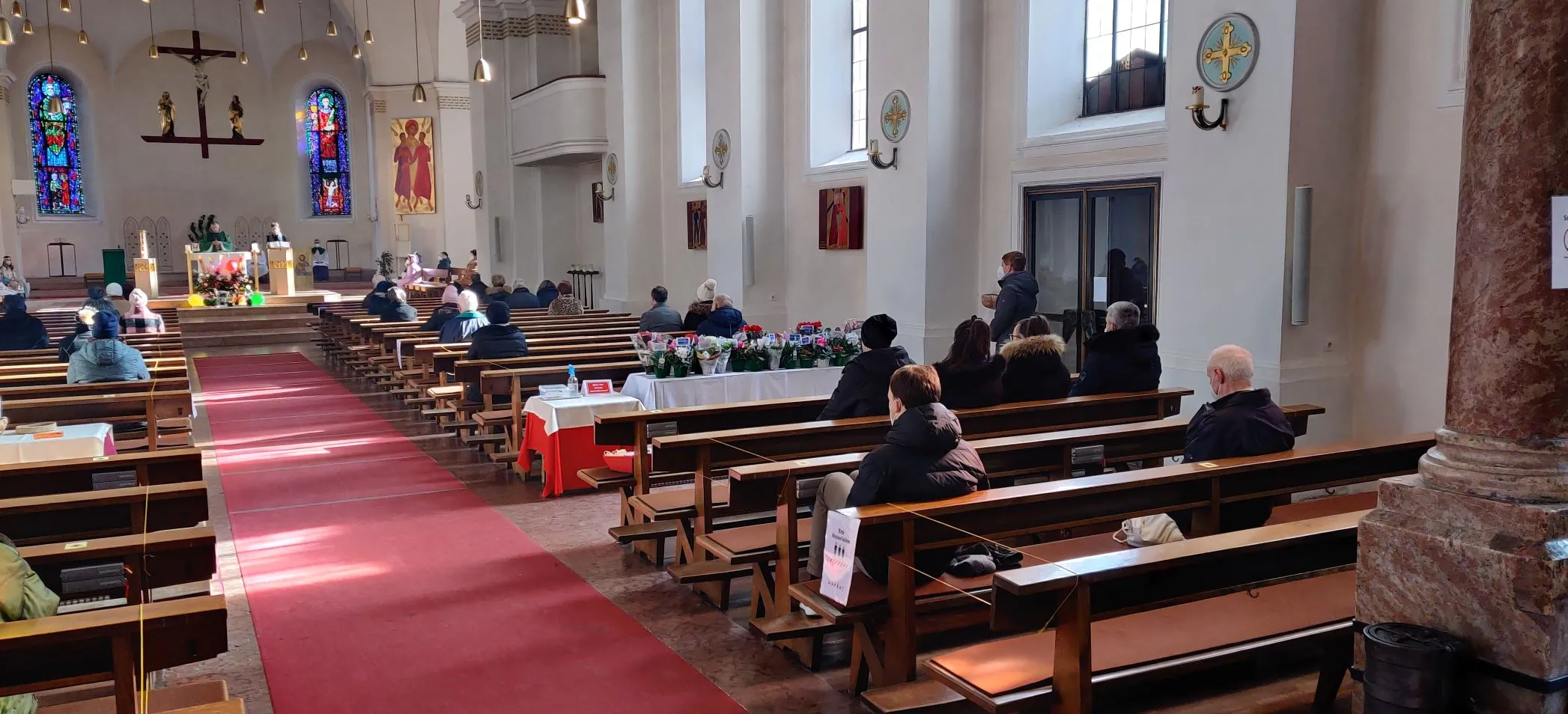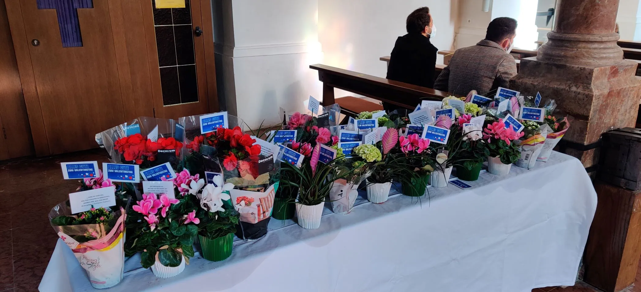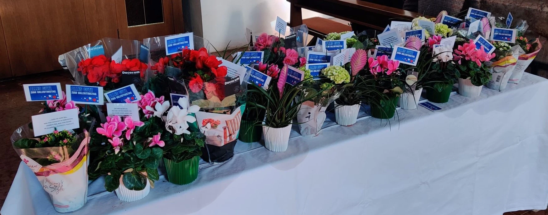 Seit dem 7. Februar sind wieder öffentliche Gottesdienste mit etwas größerer Beteiligung möglich. Am Valentinstag, der heuer auf den Sonntag fiel, und zugleich der Faschingssonntag war, an dem traditionellerweise die MinistrantInnen verkleidet oder nicht ganz "korrekt" gekleidet ihren Dienst versehen, ließ sich Pfarrprovisor Christian Hauser etwas Besonderes einfallen. Es gab für alle Gottesdienstbesucher/innen einen Blumengruß zum Mitnehmen. Ein Blumenhändler, der aufgrund der Pandemiebeschränkungen seine Ware nicht verkaufen kann, spendete die Blumen für diesen guten Zweck. Sichtlich erfreut über das unerwartete Geschenk wurden die Blumengrüße der Pfarre nach Hause getragen, um dort einen lieben Menschen mit der Farbenpracht zu beschenken oder sich selber daran zu erfreuen.