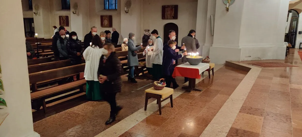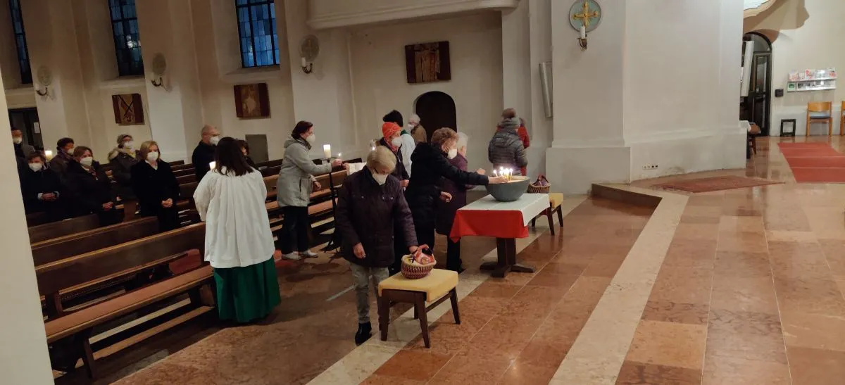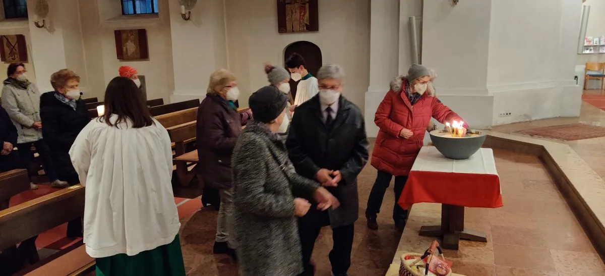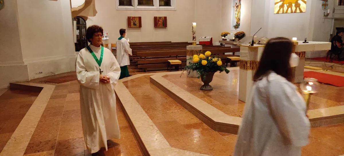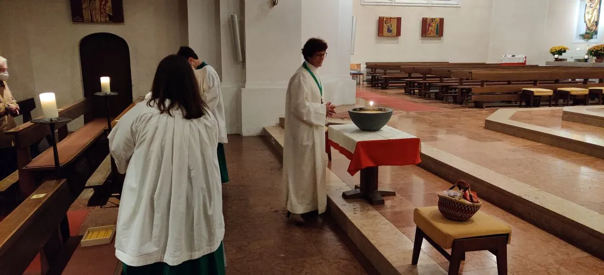Am 6.11.2021 leitete Martina Koidl ihren ersten Wortgottesdienst in der Stadtpfarre Wörgl. Bestens vorbereitet präsentierte sich Frau Koidl als bereits routinierte Liturgin. Nach den eröffnenden Worten, in denen sie sich kurz bei den BesucherInnen vorstellte und anschließend zum Thema hinführte, nahm alles seinen „gewohnten“ Lauf. Nach Lesung und Evangelium mit auslegenden Worten, in denen auch persönlichen Erfahrungen der Liturgin zum Ausdruck kamen, folgte ein Lichtritus, bei dem die Gottesdienstbesucher*innen eingeladen waren, mit dem Entzünden einer Kerze ihr Anliegen vor Gott zu bringen. Als Andenken durfte sich jede/r ein Säckchen, gefüllt mit etwas Süßem und einer kleinen Münze - in Anlehnung an die Lesung und das Evangelium (1 Kön 17, 10–16 und Mk 12, 38–44), mitnehmen.