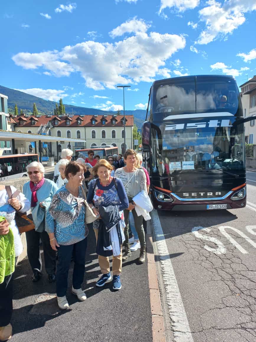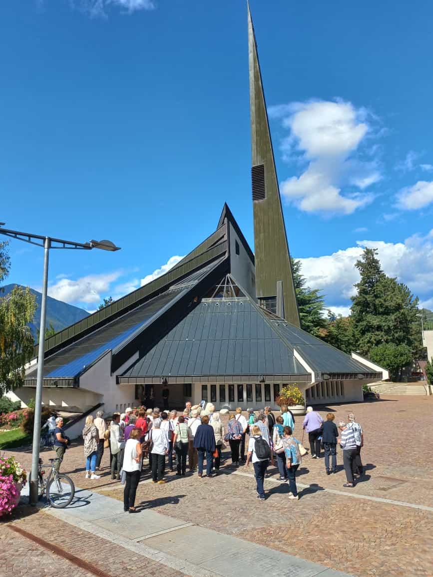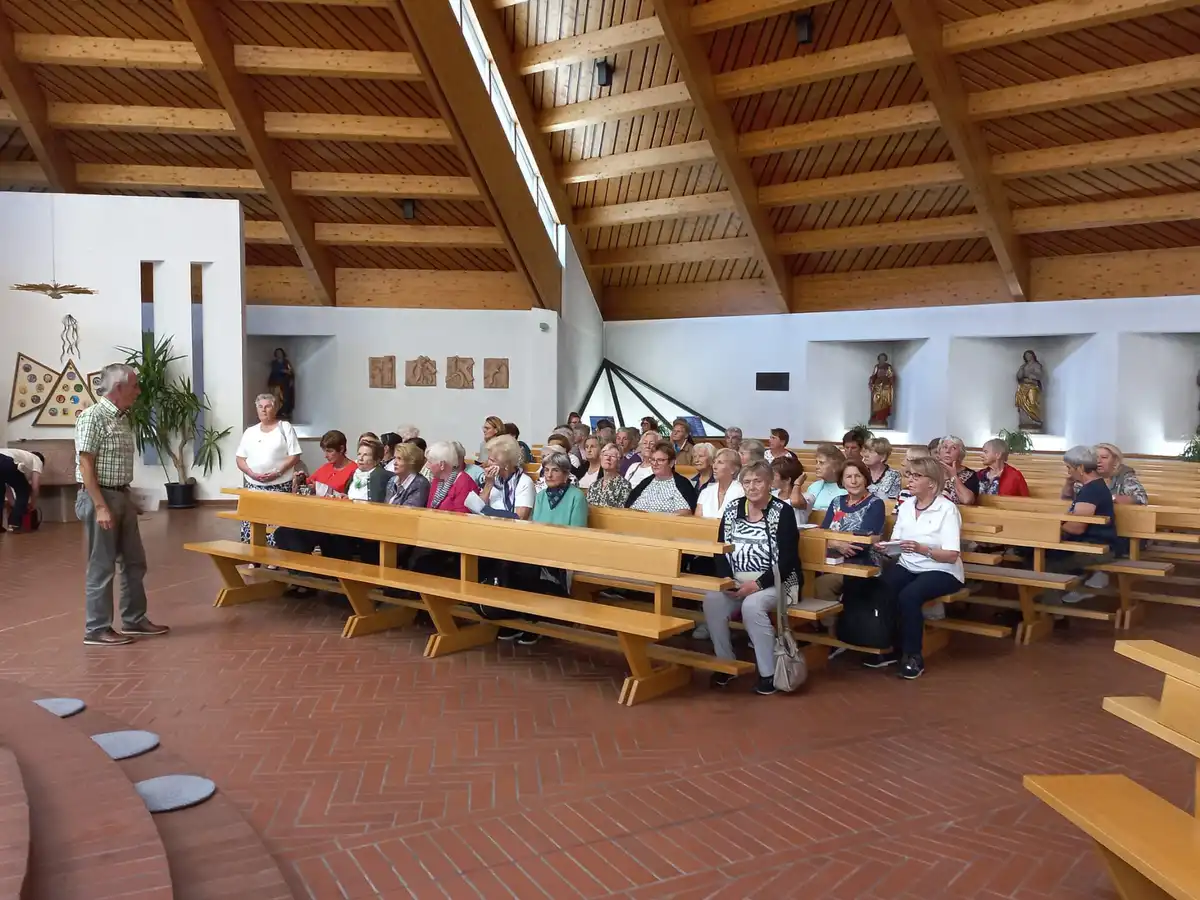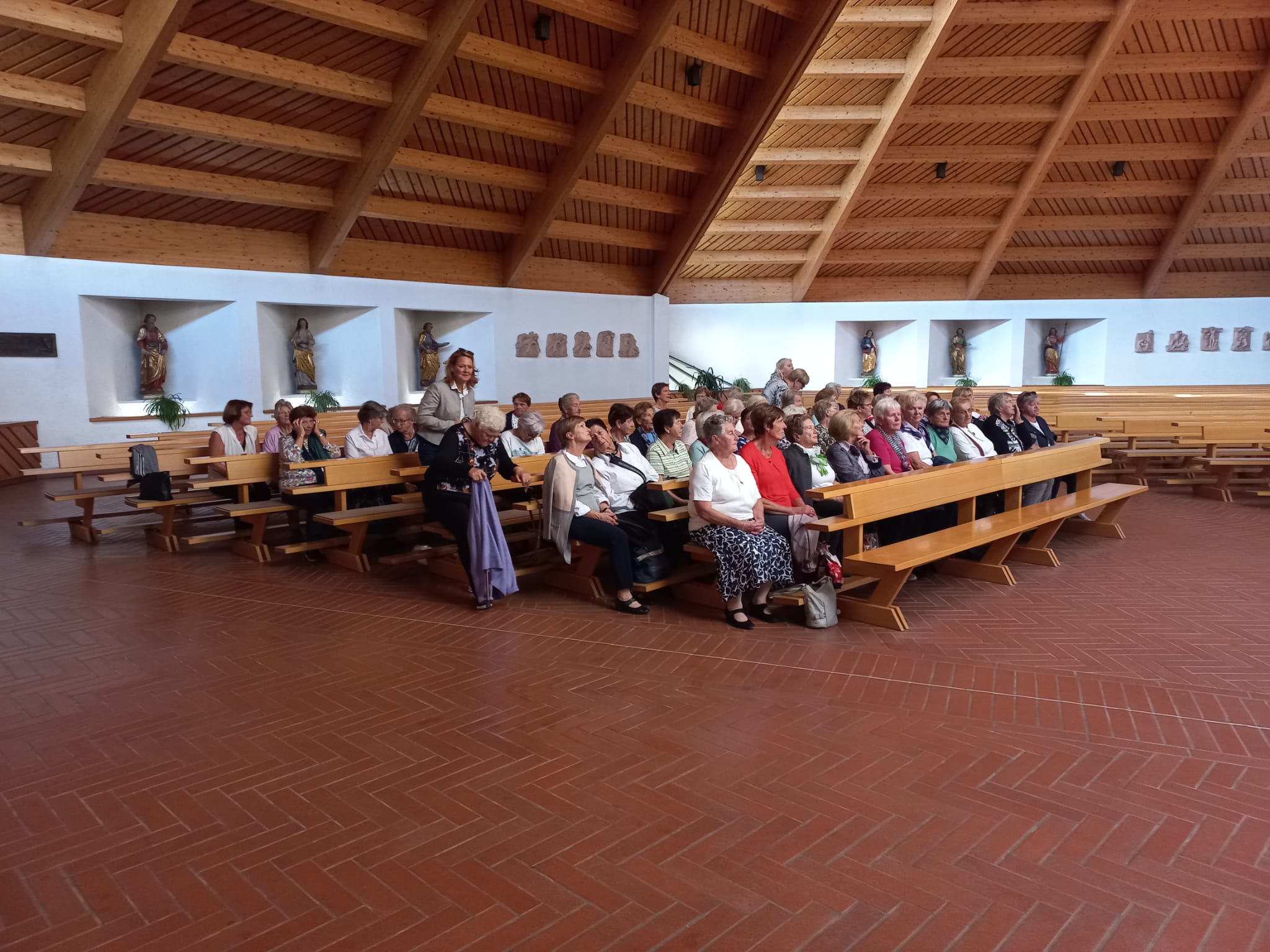 Um 07:30 Uhr war Start für die Bruckhäusler Annabund-Mitglieder, um 07:45 Uhr erfolgte dann der Zustieg für die Wörgler beim „Spieglwirt“. Wir waren insgesamt 54 Teilnehmerinnen. Der Beginn der Fahrt war schon sehr stimmig und eindrucksvoll. Unser Pfarrprovisor Mag. Christian Hauser hat uns begleitet und dafür sehr interessante und informative Unterlagen vorbereitet. Mit einem gemeinsamen Gebet und dem Segen für eine gute und gelungene Fahrt gings Richtung Brenner. Der Regen in Wörgl hat uns nicht lange begleitet, denn hinter dem Brenner erwartete uns herrliches Herbstwetter. Unsere erste Station führte uns nach Maria-Trens, wo wir um 10.00 Uhr gemeinsam mit dem dortigen Pfarrer und unserem Pfarrprovisor Christian die hl. Messe feiern durften. Danach ging die Fahrt weiter nach Vahrn bei Brixen, wo wir im Hotel Löwenwirt unser Mittagessen bei bester Bewirtung eingenommen haben. Unsere Reise führte uns dann in die Pfarre Milland/bei Brixen, wo der hl. Freinademetz verehrt wird. Die Besichtigung der modernen Wallfahrtskirche mit Führung, sowie der anschließende Besuch im kleinen, aufschlussreichen Museum des Hl. Freinademetz war sehr beeindruckend. Nach einer Super-Kaffee-Jause im Gasthof Grüner Baum in Brixen ging die Fahrt wieder retour über den Brenner nach Wörgl. Während der Hin- und Retourfahrt wurden wir bestens mit Schnapserl und Süßigkeiten von unserem Pfarrprovisor Christian und unserer Obfrau STR Elisabeth Werlberger betreut.