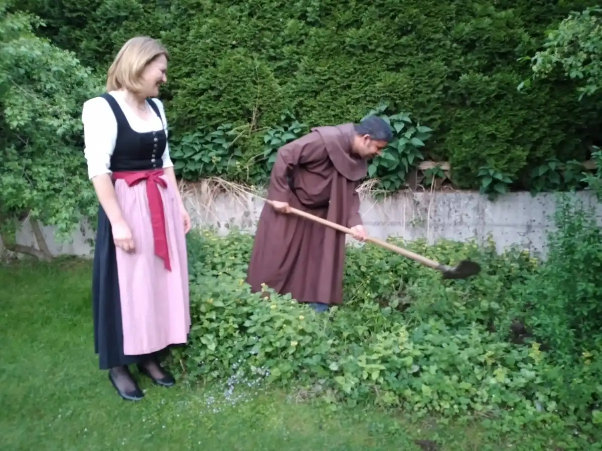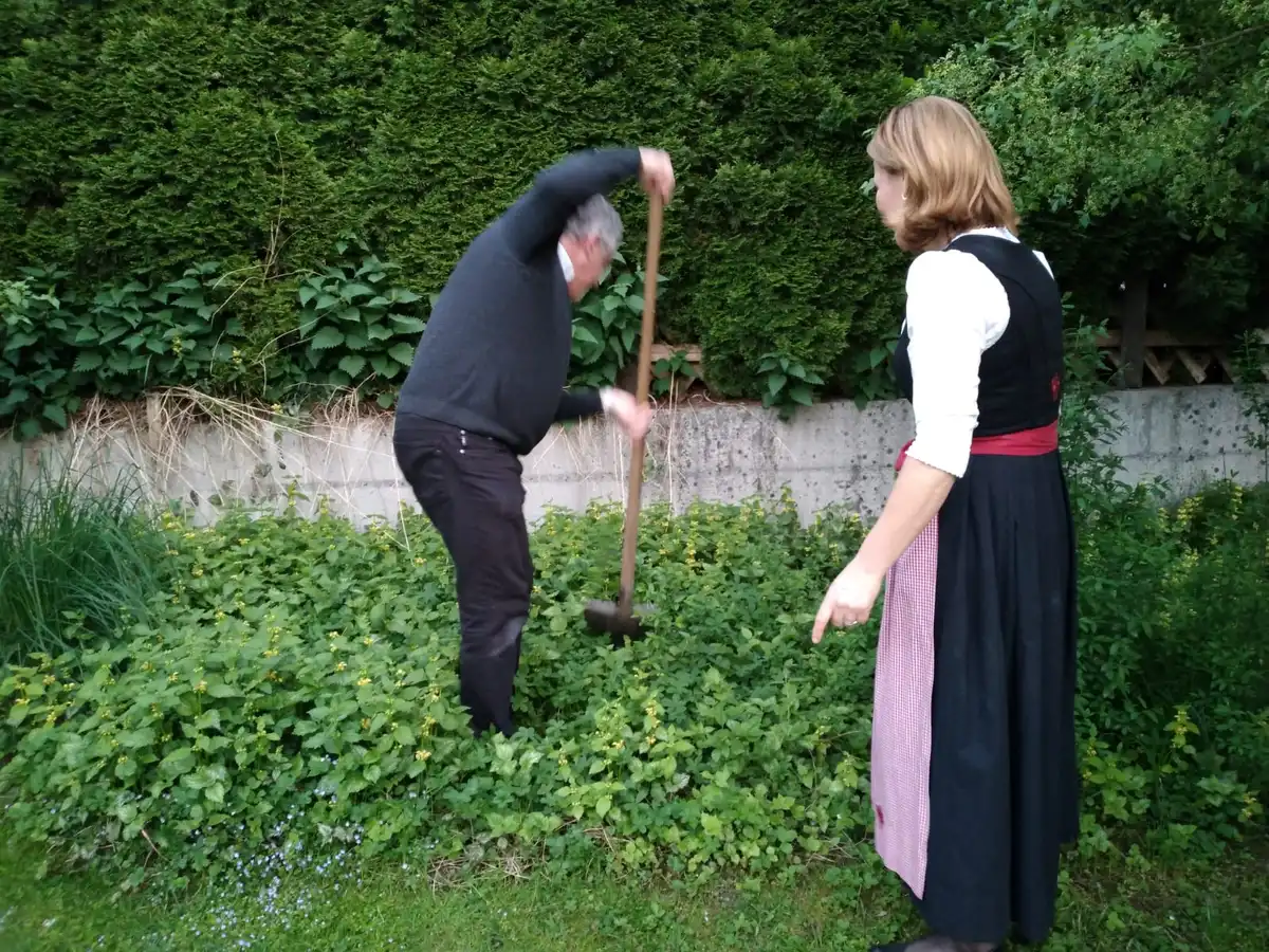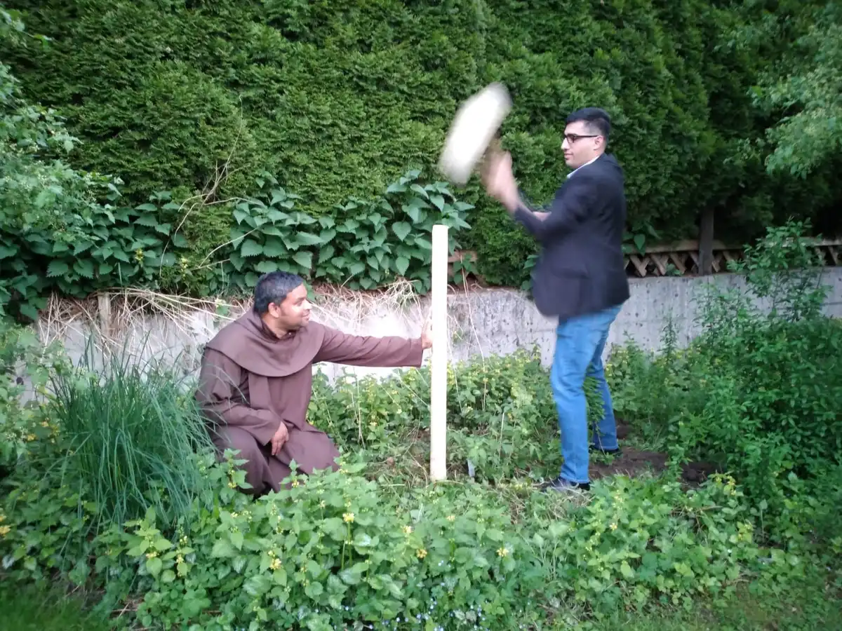 Pfarrer Christian mit der Schaufel bei der Arbeit