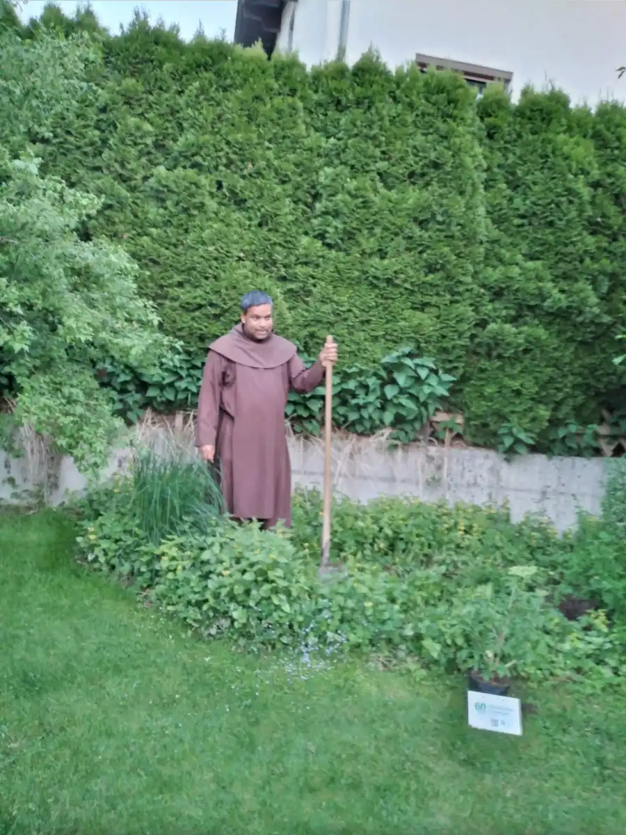 Pater Charles mit der Schaufel bei der Arbeit
