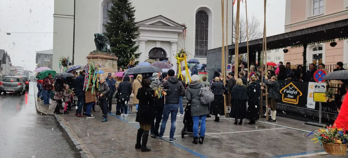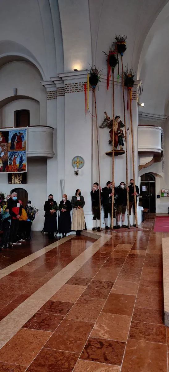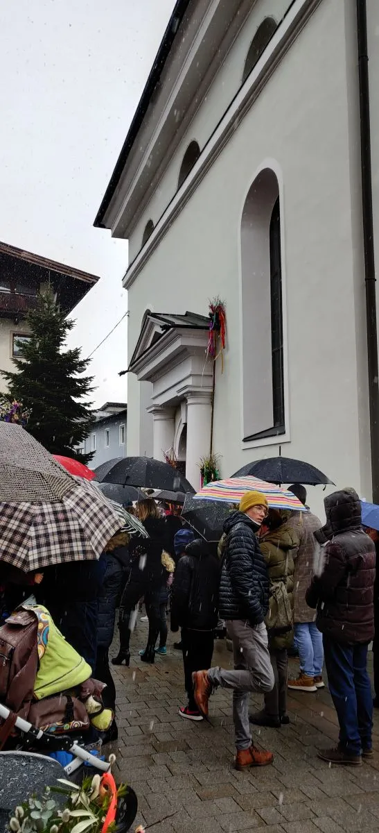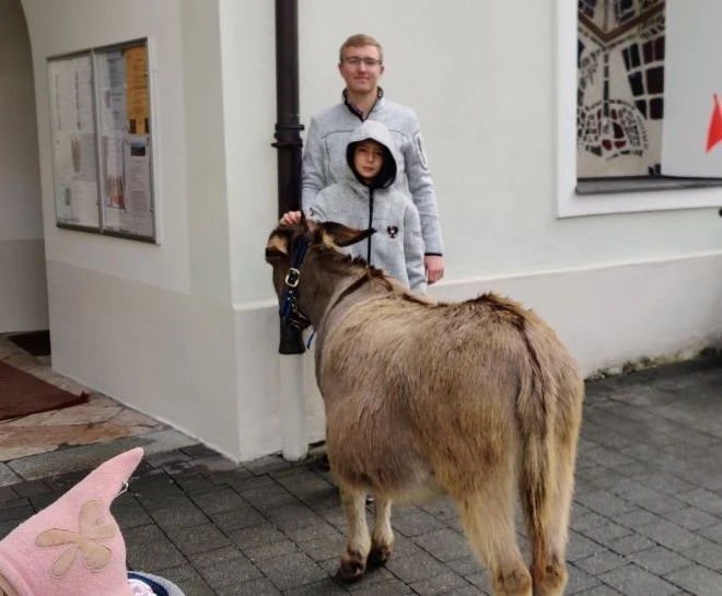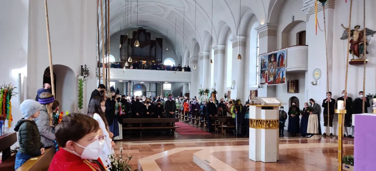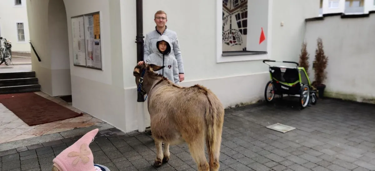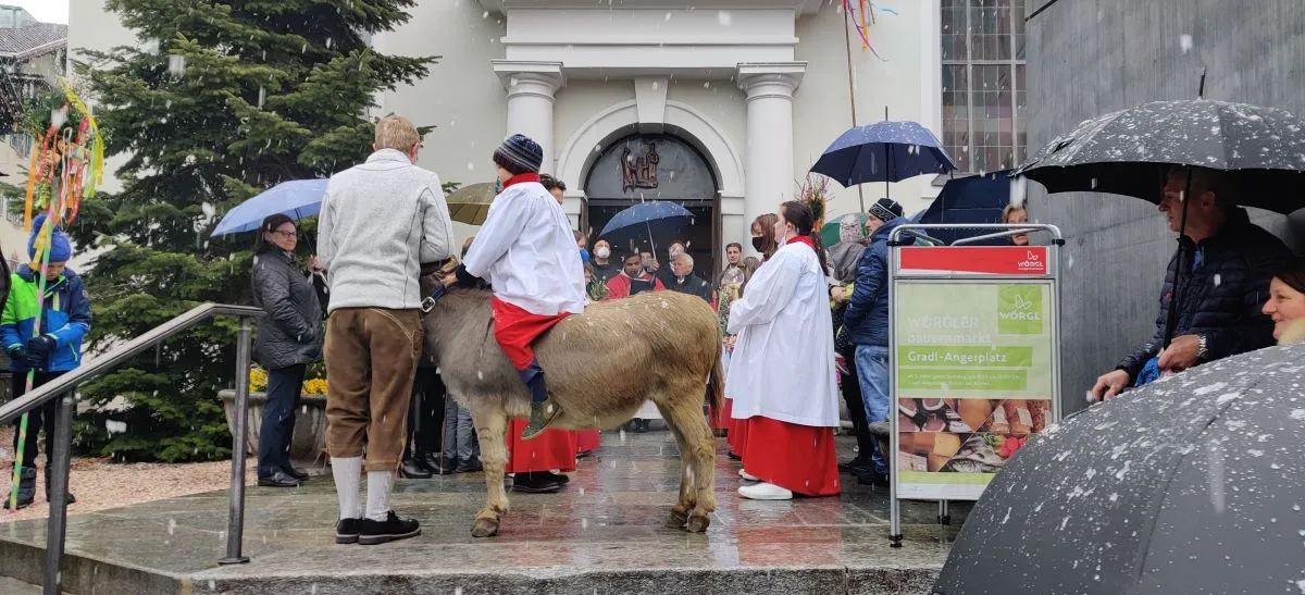 Trotz kalten Wetters kamen heuer wieder viele, um dem Gottesdienst am Palmsonntag beizuwohnen. Der Esel, bei Jung und Alt die Tagesattraktion, durfte  natürlich auch nicht fehlen. Familie Egger, Unterkrumbacher, organsierte daher wie auch in den letzten Jahren einen Esel. So wurde man daran erinnert, dass Jesus der Prophezeiung entsprechend als Messias auf einem Esel reitend in Jerusalem eingezogen ist.