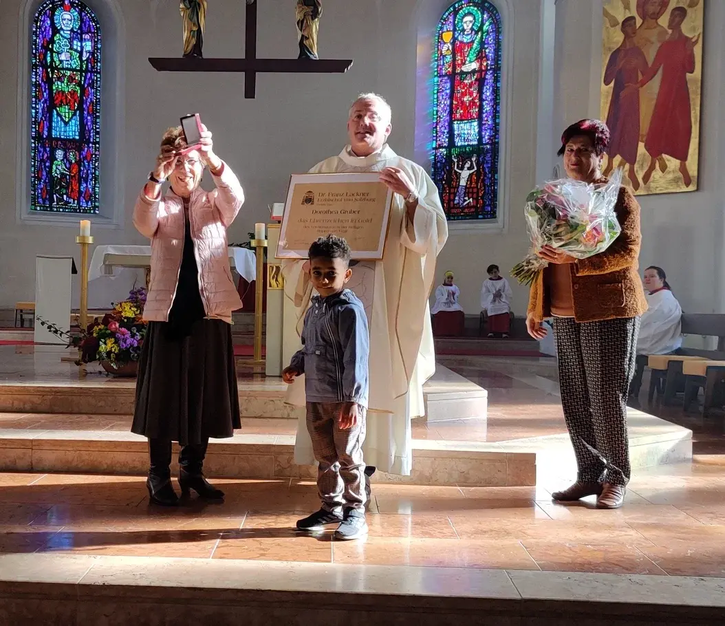 Thea Gruber wurde im September das Ehrenzeichen des Verdienstordens der Heiligen Rupert und Virgil in Gold verliehen. Aus diesem Anlass wurde beim Sonntagsgottesdienst am 16. Oktober 2022 in der Stadtpfarrkirche Thea aufgrund ihrer Verdienste um die Katholische Frauenbewegung (kfb), ihres Engagements in der Liturgiekommission der Erzdiözese Salzburg und bei der Mitgestaltung der Liturgie in den Pfarren Bruckhäusl und Wörgl bedankt.