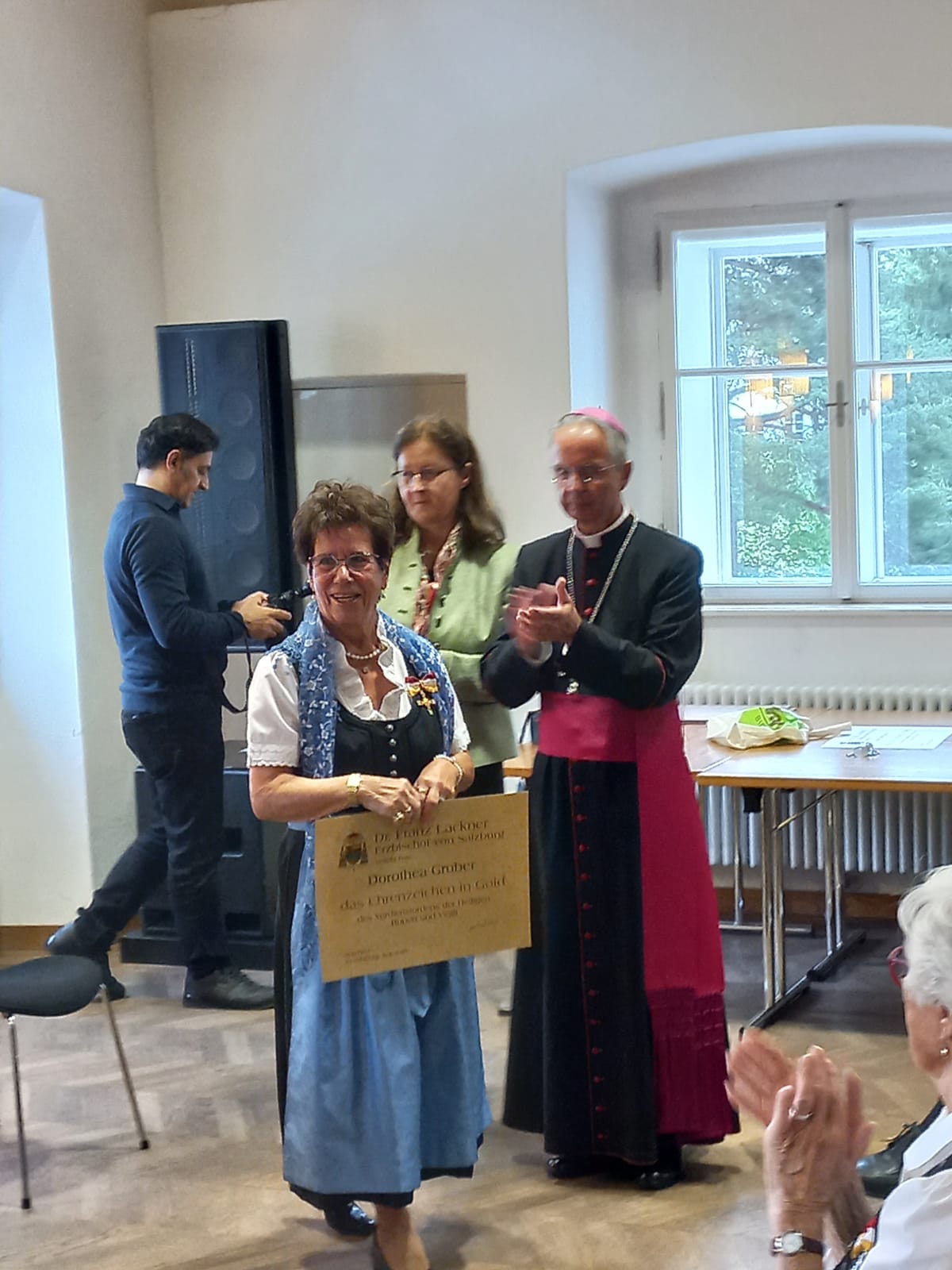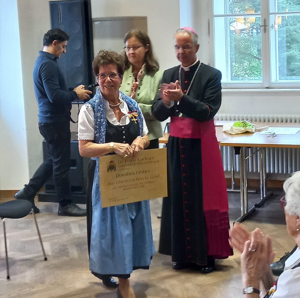 Für ihre langjährige Tätigkeit in der Liturgiekommission der Erzdiözese Salzburg und ihr umsichtiges Engagement in Sachen Liturgie, in der sie auch als Wortgottesfeier-Leiterin fungiert, wurde ihr nun der "Verdienstorden der Heiligen Rupert und Virgil in Gold" von Erzbischof Dr. Franz Lackner verliehen.