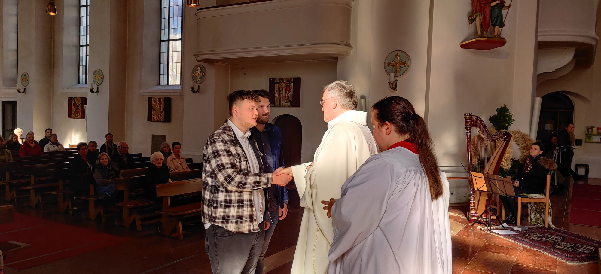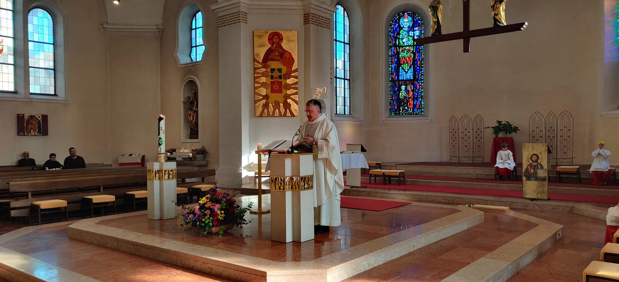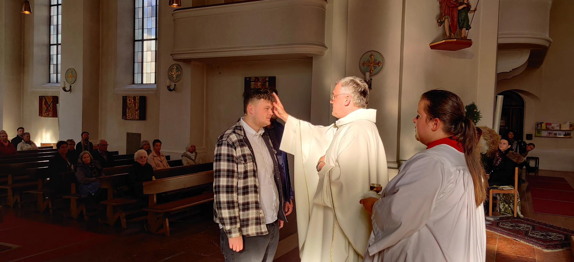 An diesem Sonntag gab es auch eine Erwachsenenfirmung zu feiern. Firmung nicht als eigenes Event, sondern gespendet im Sonntagsgottesdienst der Pfarrgemeinde, drückt den Charakter dieses Sakraments ganz besonders aus: Gestärkt durch den Heiligen Geist spricht der Firmling sein Ja zum Glauben an Gott vor der versammelten Gemeinde. Er wird dadurch voll in die Gemeinschaft der Gläubigen aufgenommen.