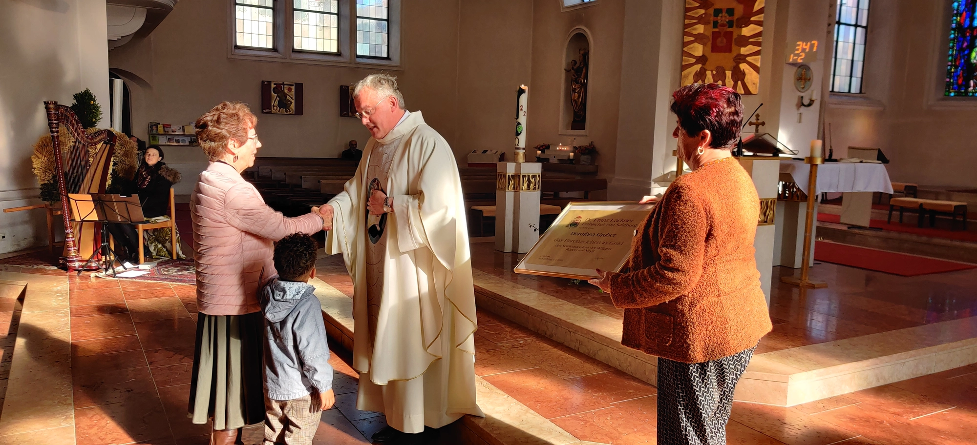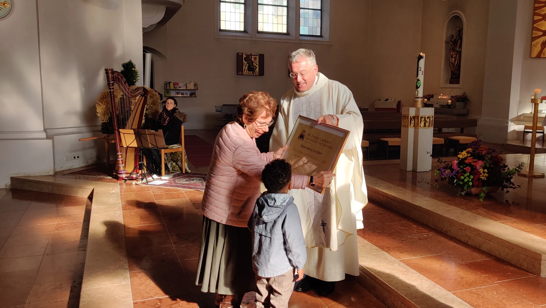In den Dankesworten von PGR-Obmann Heinz Werlberger, die von Pfr. Christian Hauser aufgrund der krankheitsbedingten Abwesenheit des PGR-Obmanns vorgetragen wurden, wurde das jahrzehntelange Engagement Thea Grubers hervorgehoben. Als Gründungsmitglied der kfb Wörgl trug sie wesentlich dazu bei, dass Frauen mit ihren Anliegen ein Raum gegeben wurde, um sich in der Kirche und darüber hinaus von einer von Männer dominierten Welt emanzipieren zu können. 1965 - Gründungsjahr der kfb Wörgl - war dies noch keine Selbstverständlichkeit. Umso höher muss diese Initiative auch gewürdigt werden. Für dieses Engagement wurde Thea 2019 die Verdienstmedaille des Landes Tirol verliehen.