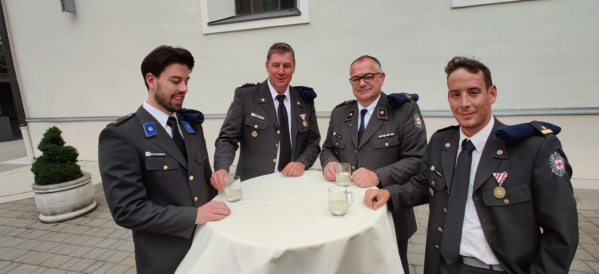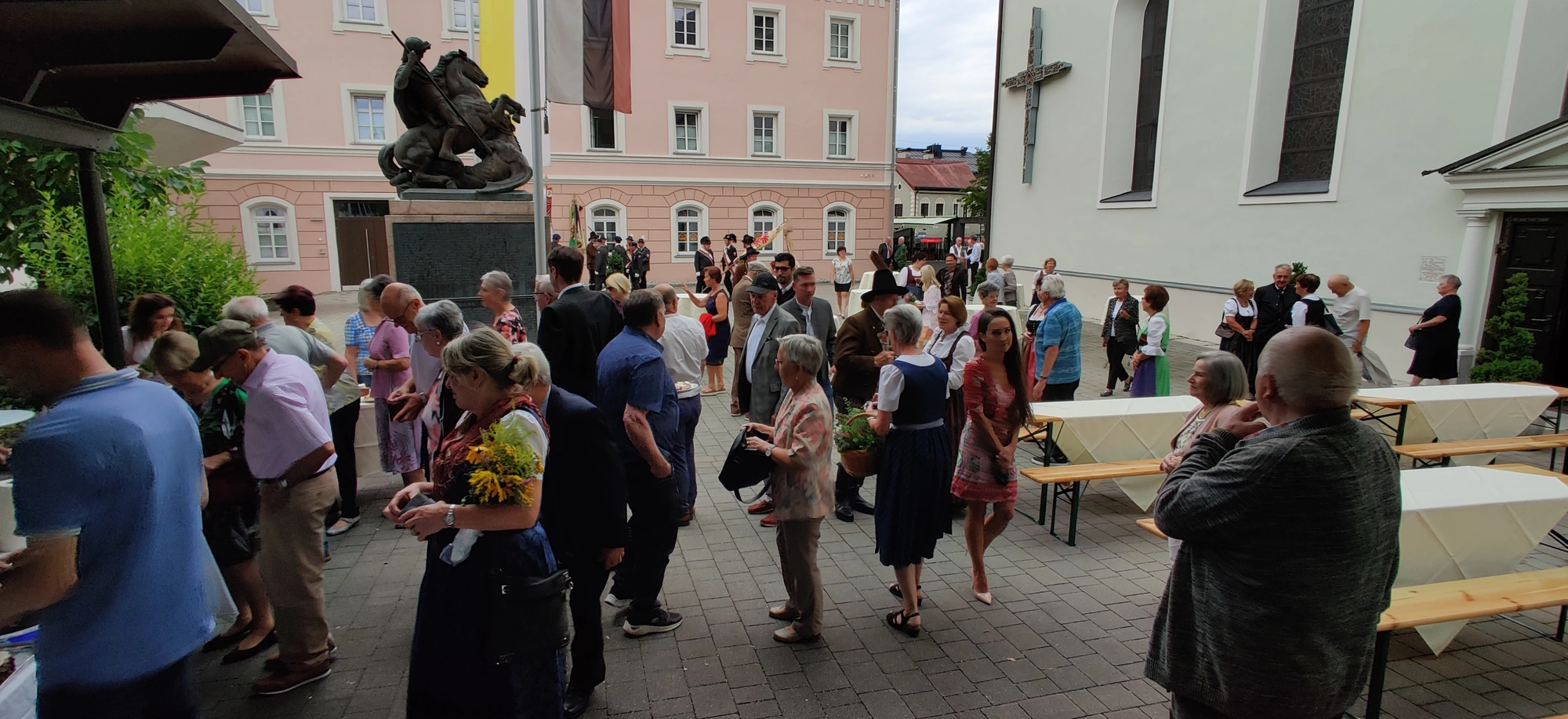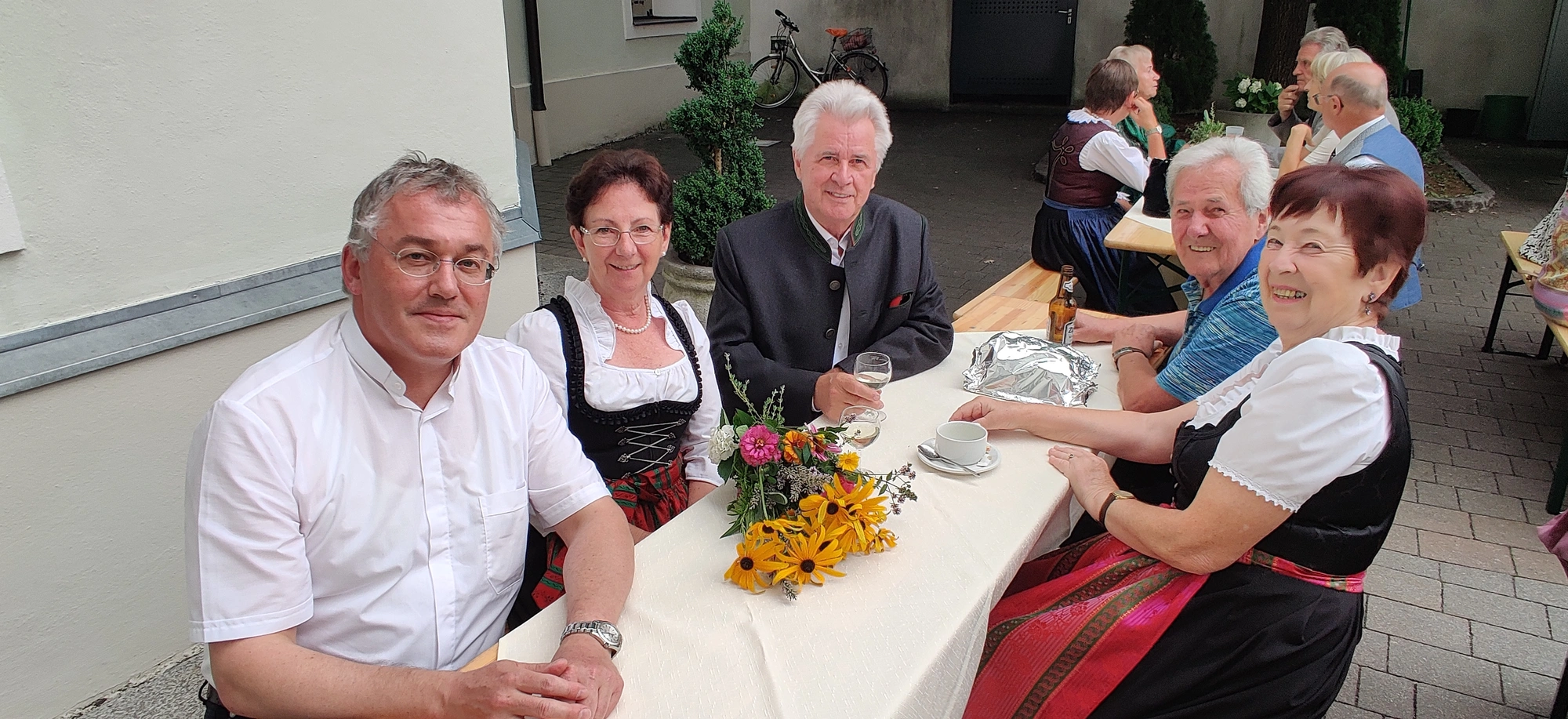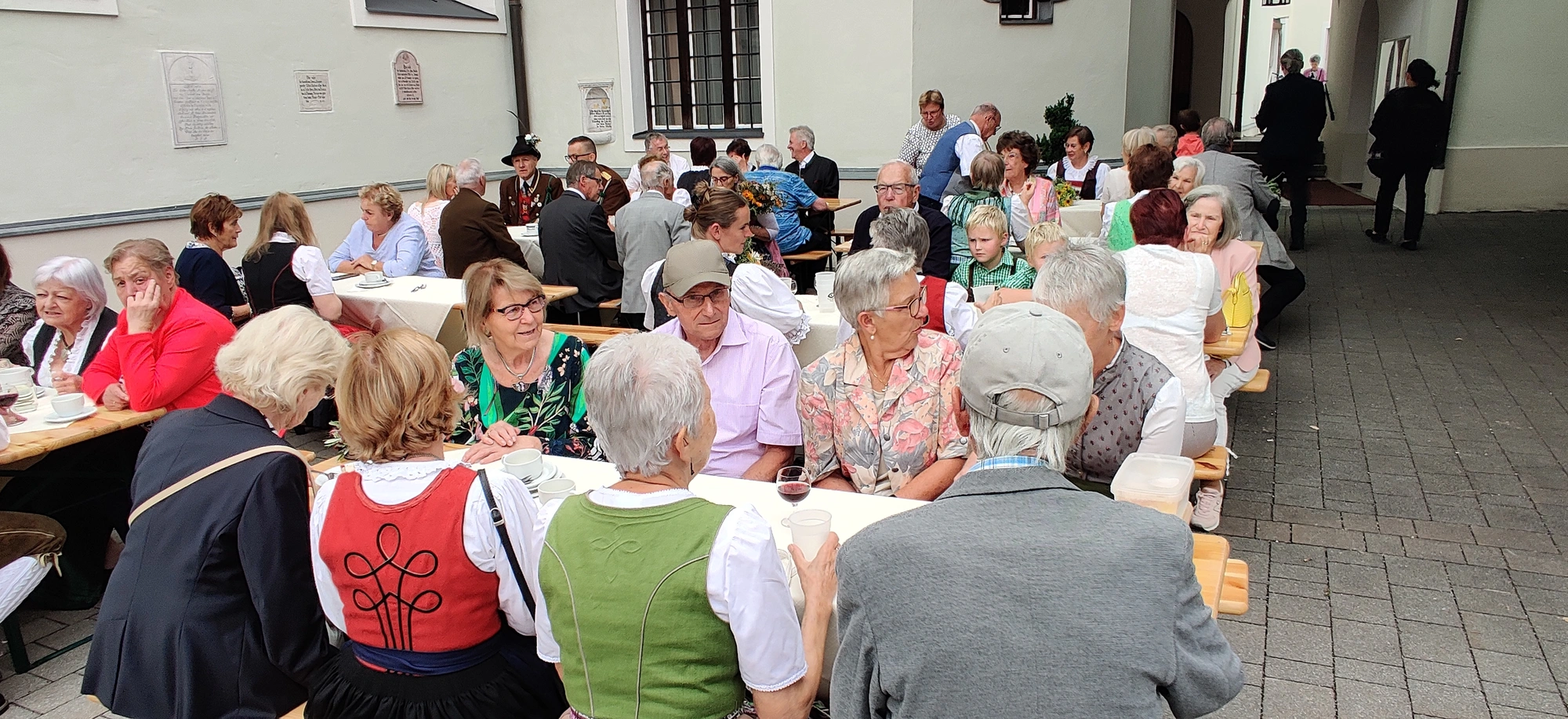 Nach dem Festgottesdienst, bei dem traditionellerweise auch eine Kräuterweihe stattfindet, die sich nach wie vor großer Beliebtheit erfreut, konnte aus einer Vielzahl an herrlichen Kuchen und Torten ausgewählt und fürstlich geschlemmert werden. Der "Hoagoscht" bzw. "Kaffeeklatsch" durfte dabei natürlich nicht zu kurz kommen. Bei angenehmen Wetter entpuppte sich der Kirchhof wieder einmal als idealer Treffpunkt. Mit Biertischen, Bänken (Leihgabe der FF Wörgl) und Stehtischen zauberte das Organisationsteam um Charlie Schallhart wieder ein herrliches Festambiente, an dem es sich nicht nur wegen der angenehmen Temperaturen trefflich feiern ließ. Auch der neu gewählte Bürgermeister, Michael Riedhart, Vizebürgermeister Kaya Kayahan und weitere Vertreter*innen der Gemeindepolitik ließen sich das Pfarrevent nicht entgehen.