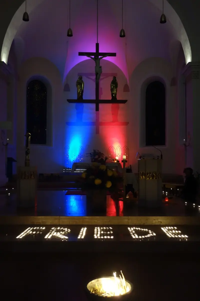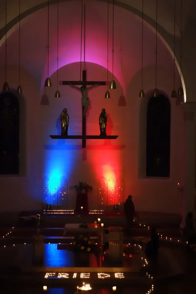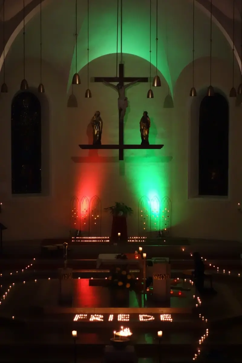 Am 31. Oktober erhellten wieder zahlreiche Kerzen bei der „Nacht der 1000 Lichter“ die Wörgler Stadtpfarrkirche. Gerade in einer so hektischen und stressigen Zeit, ist es ein schöner Gedanke, sich wieder besinnlich auf die Feste Allerheiligen und Allerseelen einstimmen zu können. So war die Veranstaltung eine gute Gelegenheit, sich ein paar Minuten in der stimmungsvollen Kirche Zeit zu nehmen und inne zu halten. Es erwartete einen ein Lichterweg mit besinnlichen Texten und meditativen Stationen wie beispielsweise eine Klagemauer, in die man seinen Bittzettel stecken konnte, eine „Erste-Welt-Station“ mit der Fragestellung, was man für diese eine Welt selbst tun könnte, oder eine Gebetsstation für den Frieden. Denn wenn jede/r kleine Schritte setzt, dann kann es immer mehr „ein bisschen Frieden“ auf dieser Welt werden, wie es die deutsche Sängerin Nicole bei ihrem Grand Prix-Sieg 1982 im gleichnamigen Lied besungen hatte. Im Kirchhof wurden heißer Punsch und Kekse zur Stärkung angeboten. Eine Feuerstelle diente zum Aufwärmen.