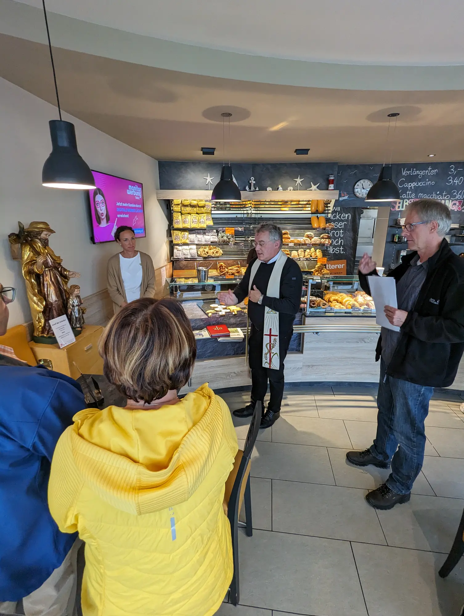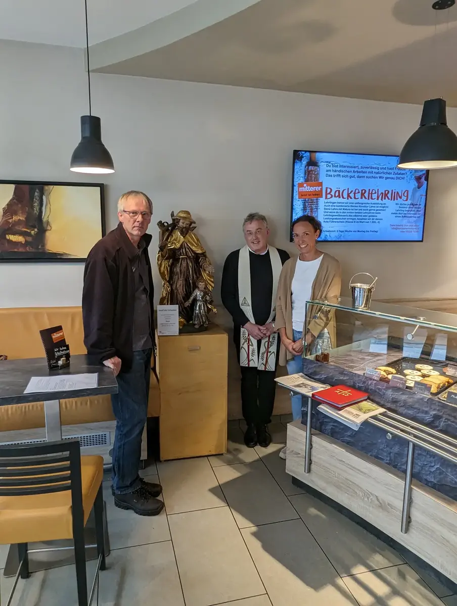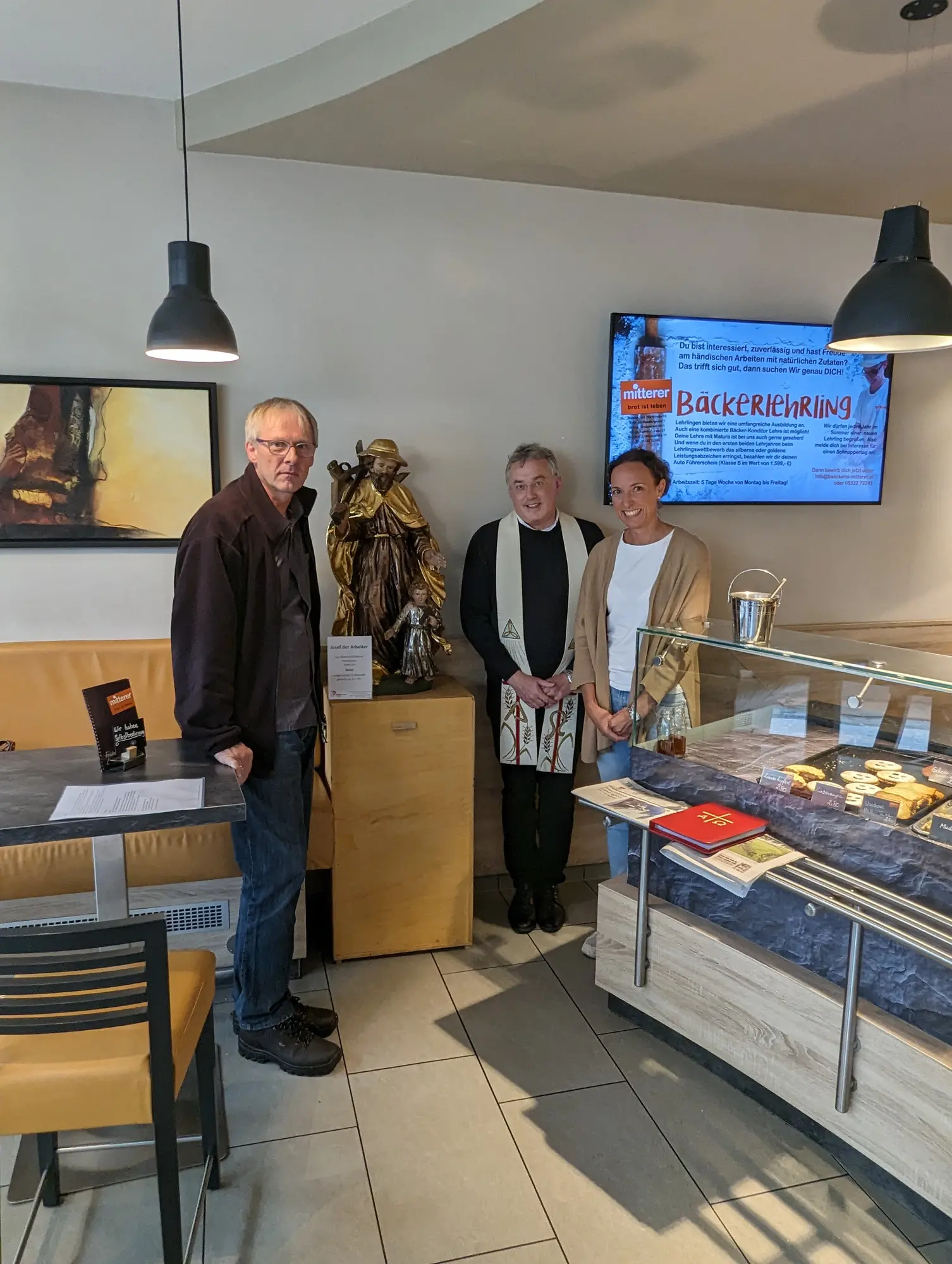 Der Familienbetrieb wird seit über hundert Jahren in der sechsten Generation geführt. Mit über 50 Mitarbeiter*innen beliefert der Betrieb seine acht Filialen im Tiroler Unterland. Die Pfarrgemeinderätin Julia Mitterer unterstützt das Projekt der Betriebsseelsorge, indem sie dem Hl. Josef über den Sommer hinweg eine Herberge in ihrer Backstube gibt. Die Skulptur wurde mit einer kleinen Andacht, gestaltet von Pfarrprovisor Christian Hauser, am Stammsitz in Wörgl empfangen und eingesegnet. Dort soll er zunächst in der Hauptfililiale die Mitarbeiter*innen daran erinnern, dass Gott auch in der Arbeitswelt und im Alltag an ihrer Seite steht. So kann er auch von Kund*innen bestaunt werden. Danach wechselt der Hl. Josef in die Backstube nach Kirchbichl, in der sämtliche Bäckerei- und Konditorenware hergestellt werden.