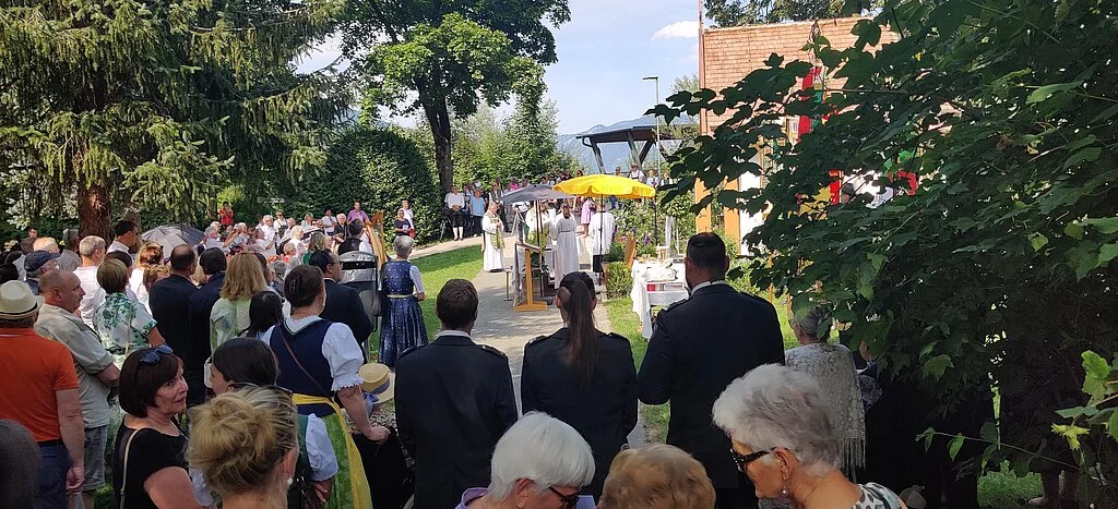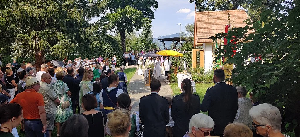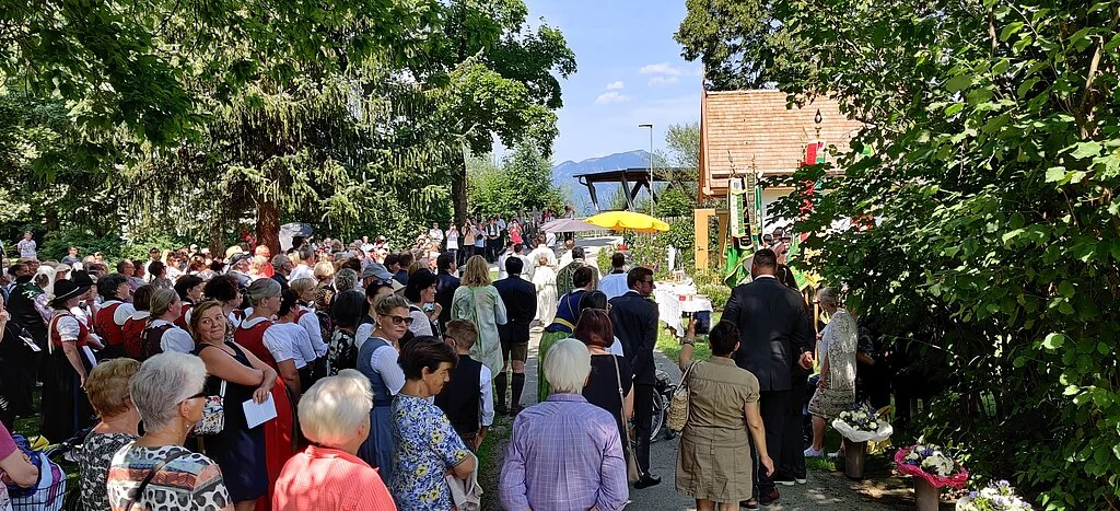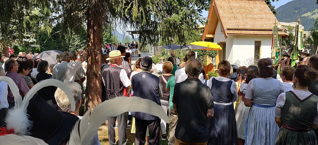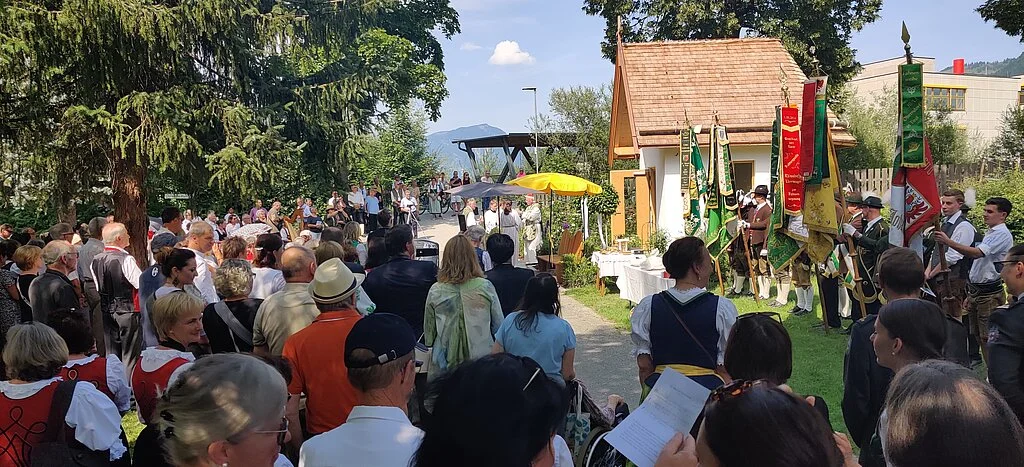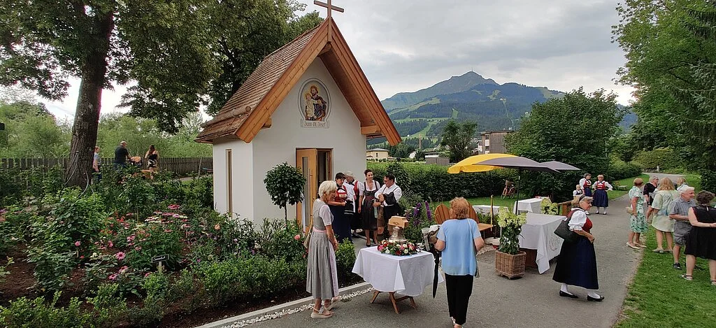 Vor einigen Jahren reifte bei Dagmar und Manfred Hauser, Bruder unseres Pfarrers Christian, der Grundgedanke zur Errichtung einer Kapelle. An diesem Sonntag feierten nun bei herrlichem Wetter der Salzburger Erzbischof mit Christian Hauser und über 200 Besucher*innen die heilige Messe, in der Kapelle und Glocke, gegossen von der Firma Foidl aus Waidring, gesegnet wurden.