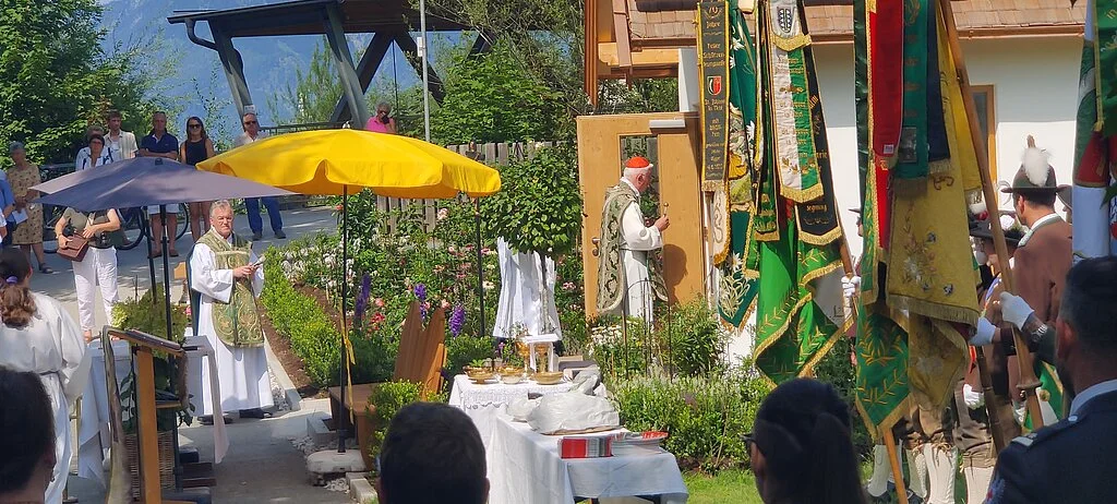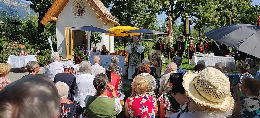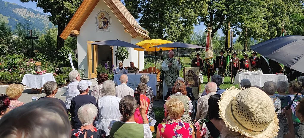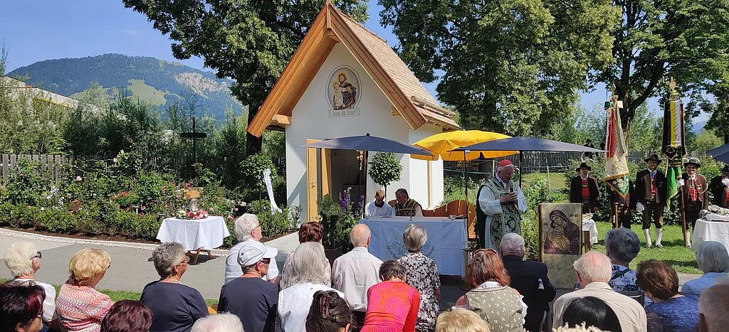 Staunen war angesagt. Staunen über das, was am 23. Juli 2023 am Nachmittag im Achenzipf-Park von St. Johann in Tirol vor sich ging. Der Verein „Kapelle Sankt Josef St. Johann in Tirol“ lud zur Segnung der neu errichteten St. Josefs-Kapelle. Niemand geringerer als Erzbischof Dr. Franz Lackner nahm die Segnung dieses Kleinods vor. Gelegen in einer malerischen Idylle konnte mit Unterstützung Vieler das Projekt trotz verschiedener Widerstände realisiert werden.