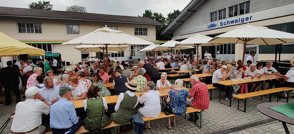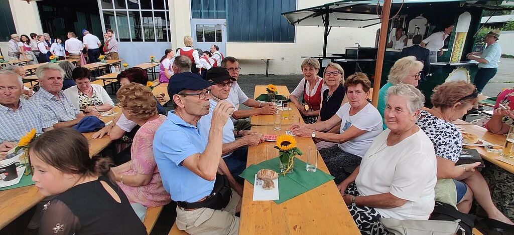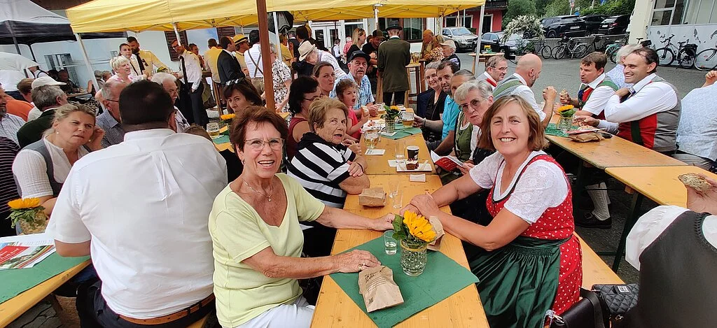 Im Anschluss ging es noch zu Fuß oder mit dem Bummelzug zum ehemaligen Autohaus Schwaiger. Dort wurde in bester Agapetradition Wein und ein eigenes „Josefs-Brot“ gereicht. Mit festähnlichem Charakter bei gutem Essen und Trinken, Kaffee und Kuchen sowie schwungvoller musikalischer Umrahmung wurde diese Segnung würdig abgerundet.