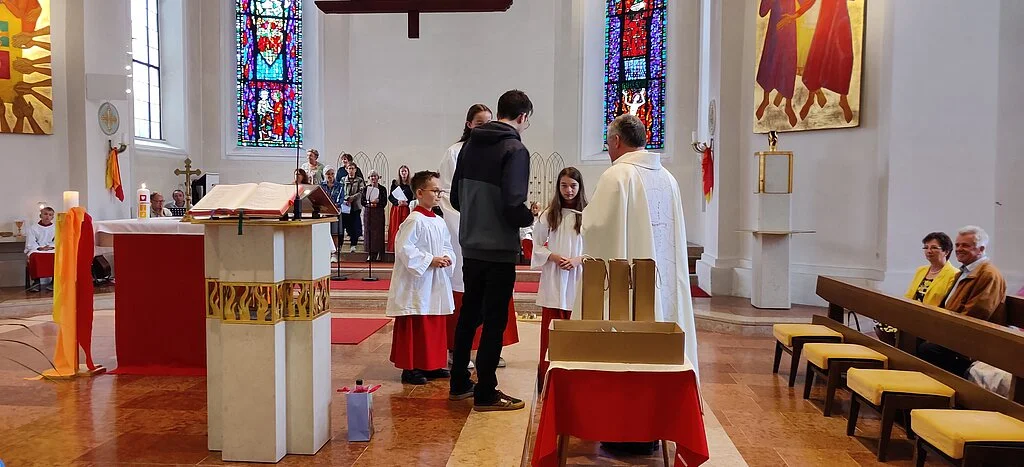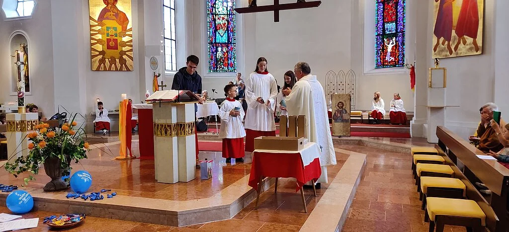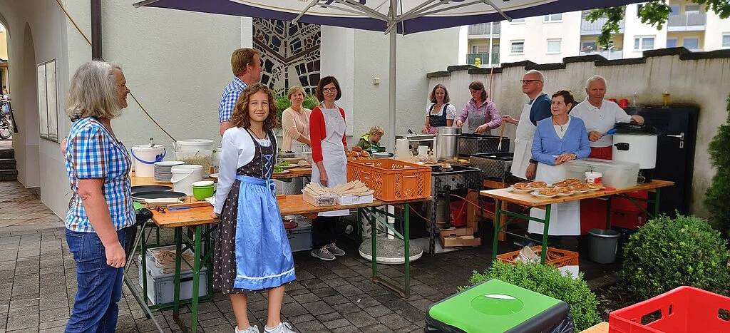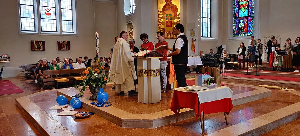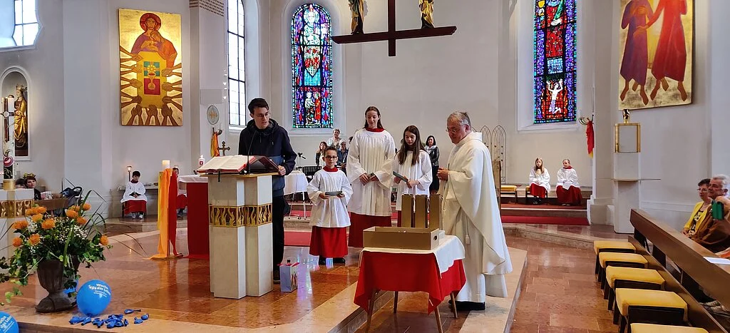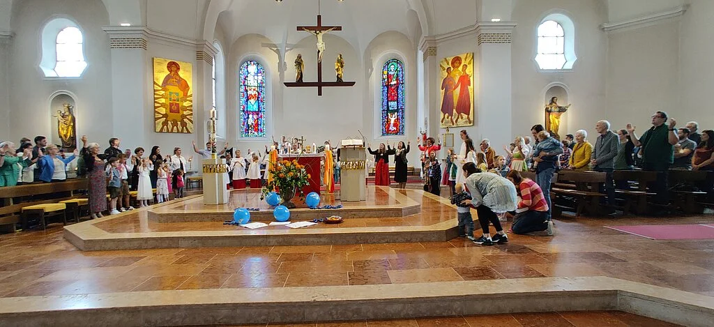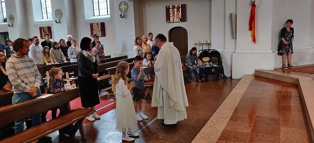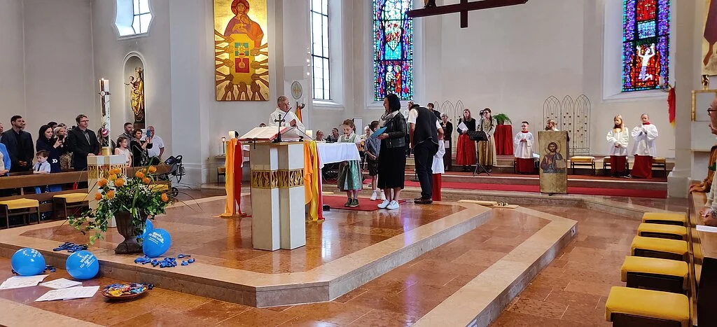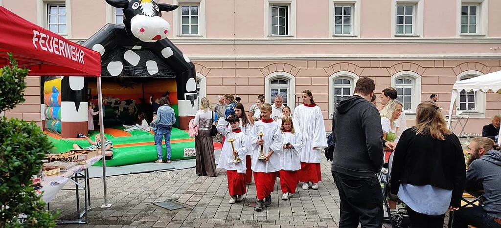 Vor dem Fest gab es den traditionellen Kinderwaglgottesdienst (organisiert von Christian Ehrensberger und Brigitte Schnellrieder), bei dem die Kinder und werdenden Eltern von Pfarrer Christian gesegnet wurden. Außerdem konnten zwei Kinder an diesem Tag ihre aus Krankheitsgründen verpasste Erstkommunion nachholen. Selbstverständlich durfte bei diesem Event auch die Erstkommunionband nicht fehlen, die – unterstützt von Sänger*innen des Chores Sonamus – die Lieder der Erstkommunion nochmals zum Erklingen brachten.