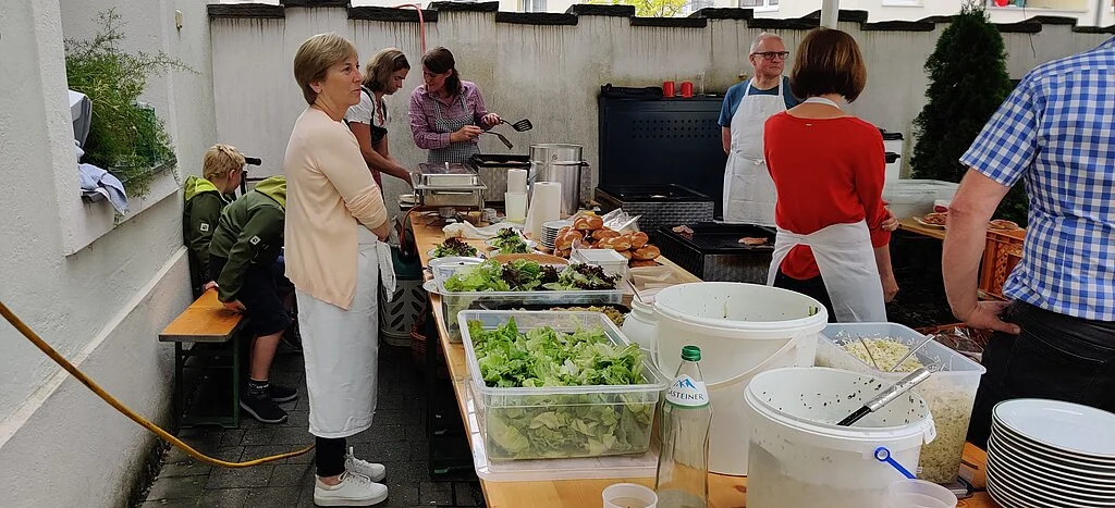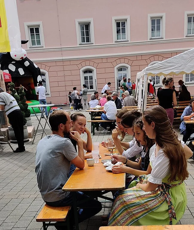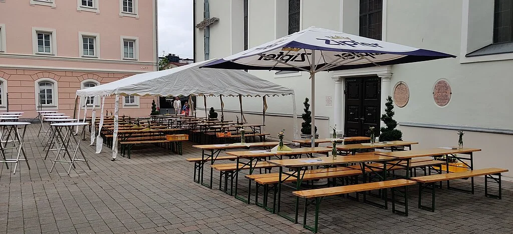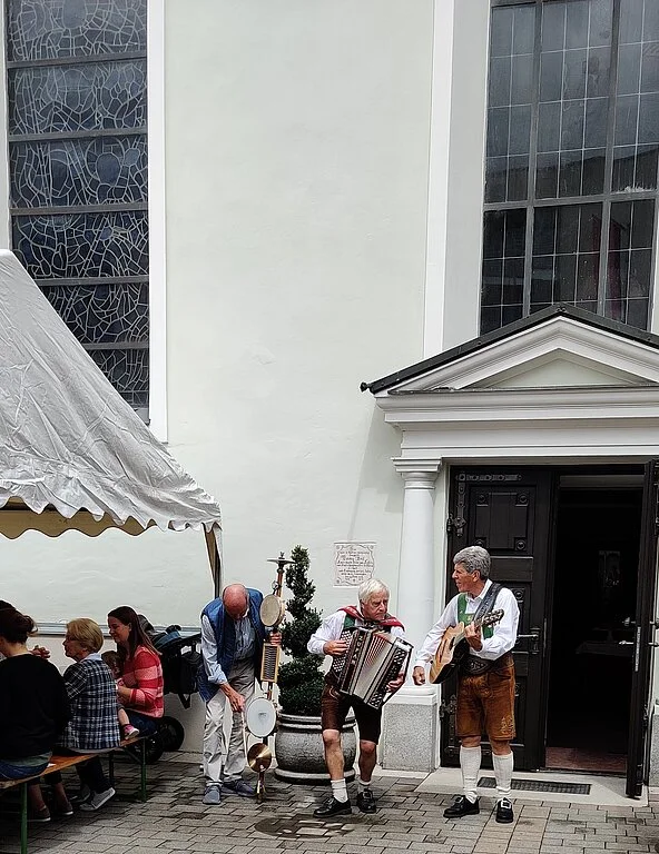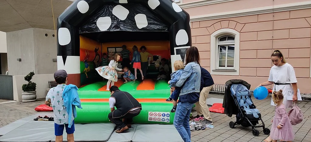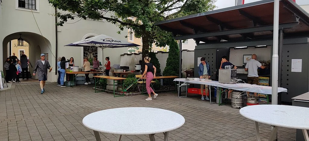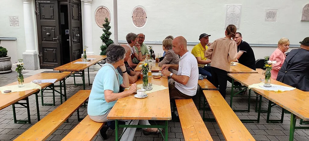 Das Organisationsteam um Monika Egger, Charly Schallhart, Julia Mitterer, Franz Schnellrieder und Heinz Werlberger (PGR-Obmann) hat ganze Arbeit geleistet. Mit einem großen Team ehrenamtlicher Helfer*innen konnte nach vier Jahren Abstinenz erstmals wieder das Pfarrfest stattfinden. Mit neuen Ideen (es wurde beispielsweise eine Hüpfburg für die Kinder organisiert), neuer Speisekarte (Steaksemmel, Grillfleisch, Kaspressknödl) und Altbewährtem (Weißwürste, Kuchen/Torten) konnten viele Besucher*innen angesprochen werden. Die von Pfarrer Christian organisierten Musikanten Lois und Gerhard vom Duo "Edelraute", ergänzt mit der Harfinistin Johanna Wörgetter und einem "Waschbrett-Percussionisten", sorgten für eine ausgezeichnete Stimmung. Von Tisch zu Tisch gehend gaben sie ihre fein und originell vorgetragenen Musikstücke zum Besten.