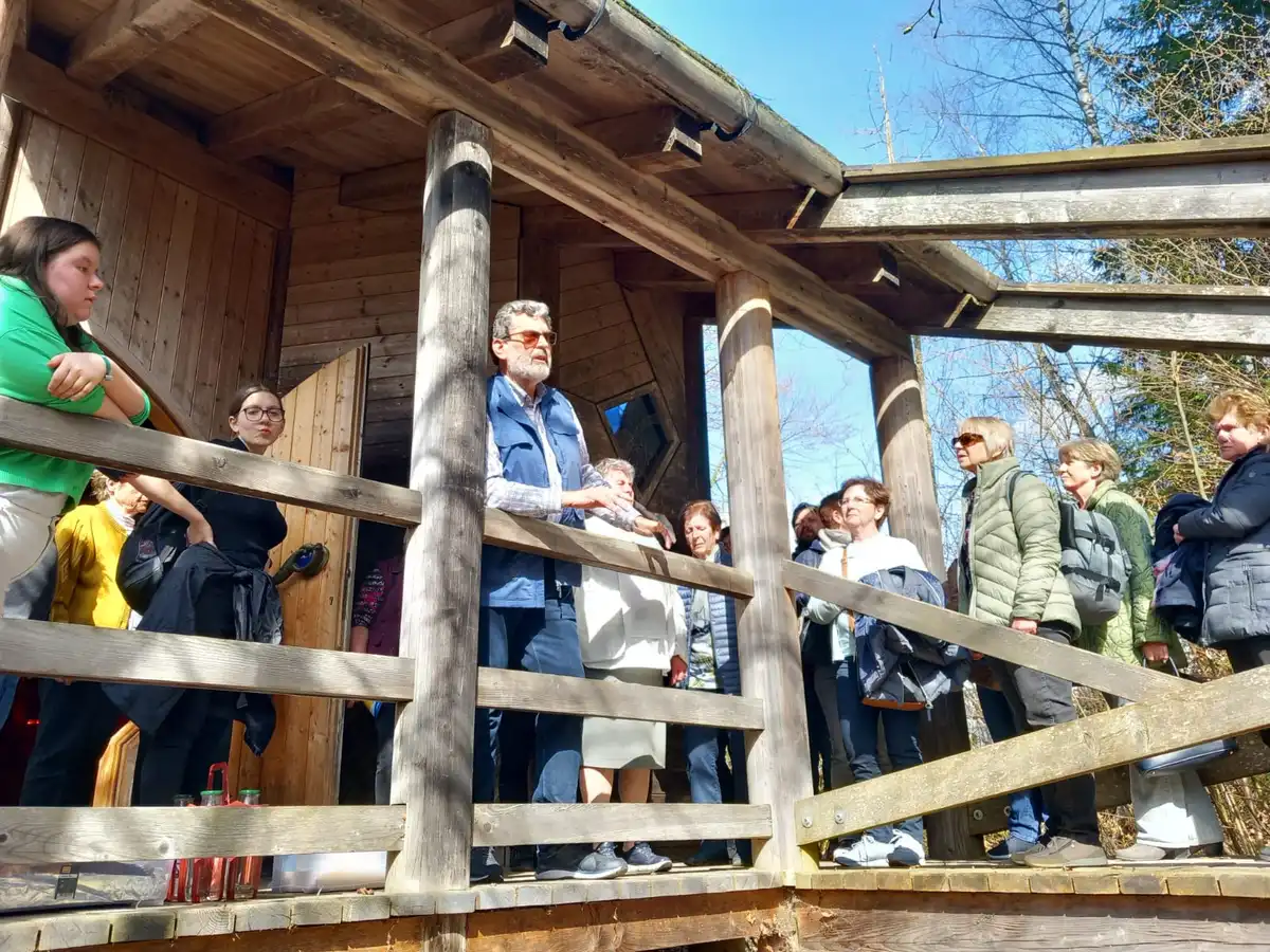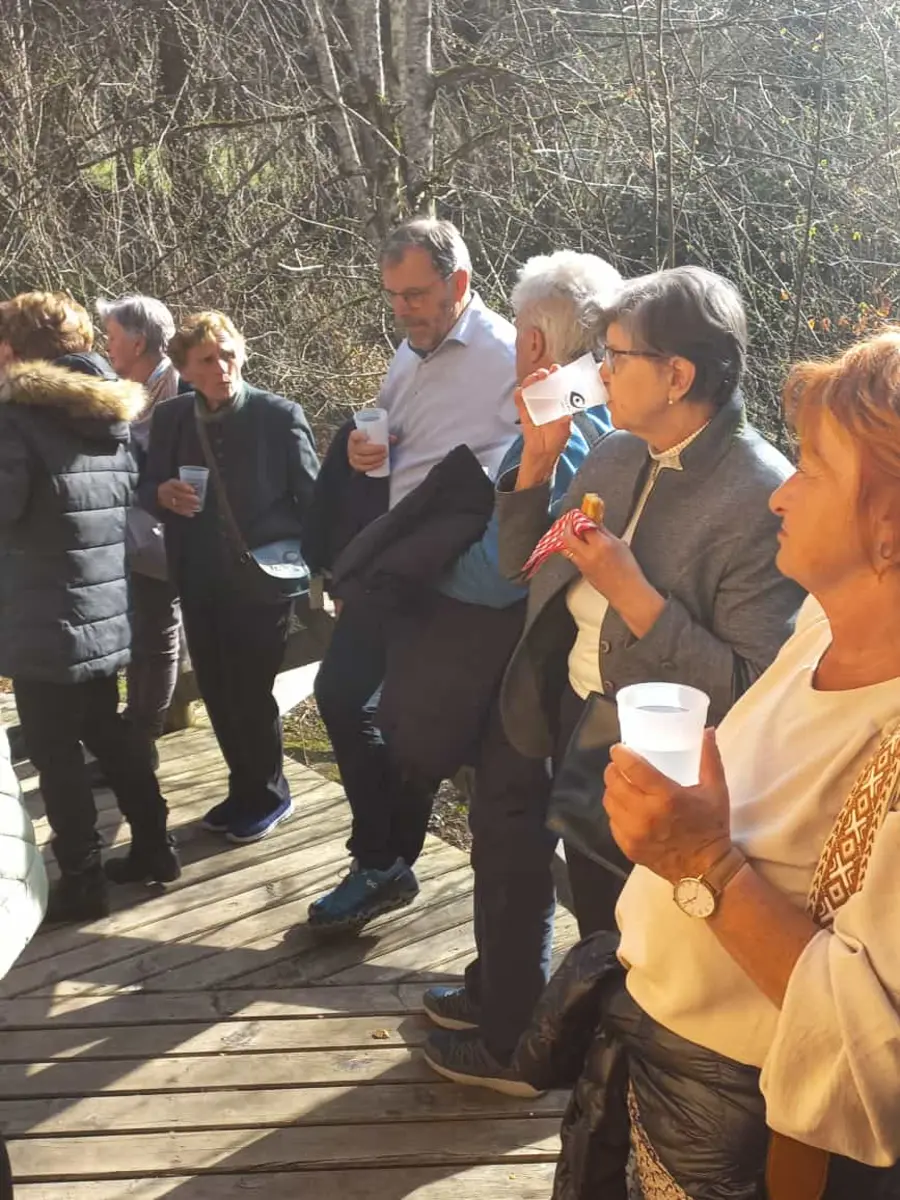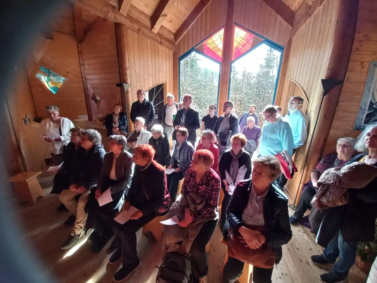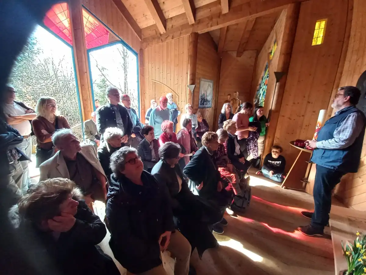 Zu Fuß ging es steil bergauf. Trotz mehrerer Zwischenstationen, an denen uns Walter Rinnerthaler Erklärungen zur Entstehungsgeschichte und den architektonischen Gegebenheiten der Kapelle gab, kamen einige gehörig ins Schwitzen, einige an ihre Grenzen. Vom Ehrgeiz gepackt unser Ziel zu erreichen, kamen wir alle heil in der Friedenskapelle an. Es lohnte sich. In diesem Kleinod, gelegen auf einem Hügel, eingebettet in die Ruhe des Waldes, sprachen wir noch ein gemeinsames Gebet. Nach einer kleinen Stärkung und einem sicheren Abstieg ging es zurück zum Bus. Müde und erschöpft, aber im Herzen bereichert, konnte man noch den schönen Erlebnissen und Begegnungen nachsinnieren, plaudern oder auch ein kleines Nickerchen machen. Der Tag neigte sich zu einem schönen Ende.