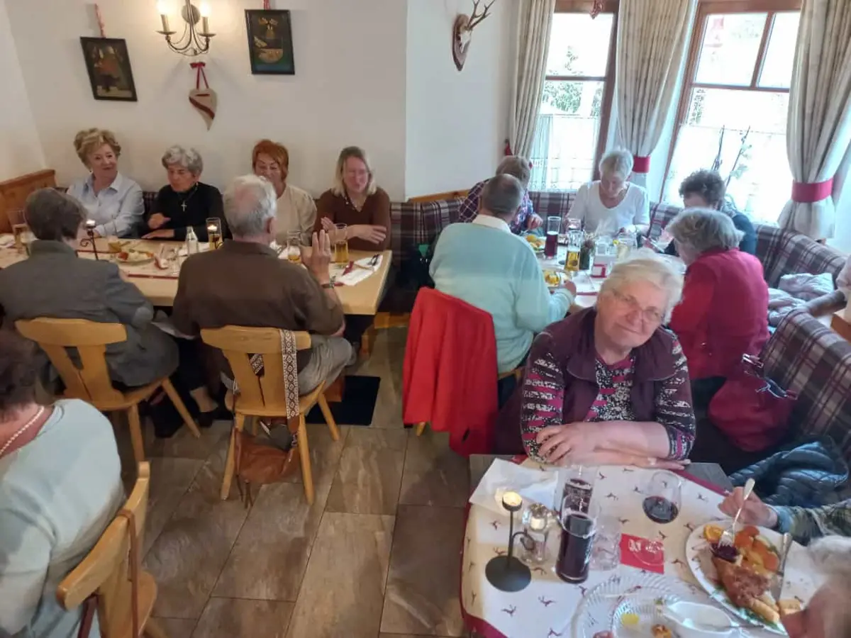 Anschließend war für uns eine Agape durch den Pfarrgemeinderat von Bad Hofgastein unter der Leitung von PGR-Obfrau Jutta Gruber vorbereitet. Theo wurde unsererseits ein kleiner kulinarischer Gruß aus dem Pfarrverband überreicht, um dann nahtlos in den Burggasthof in Dorfgastein zu wechseln. Selbstverständlich begleitete uns Theo, so dass noch Zeit war, Altes und Neues auszutauschen.