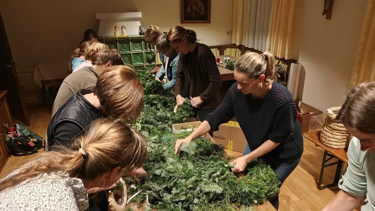 die 12 Adventkranzbinderinnen und Schmückerinnen