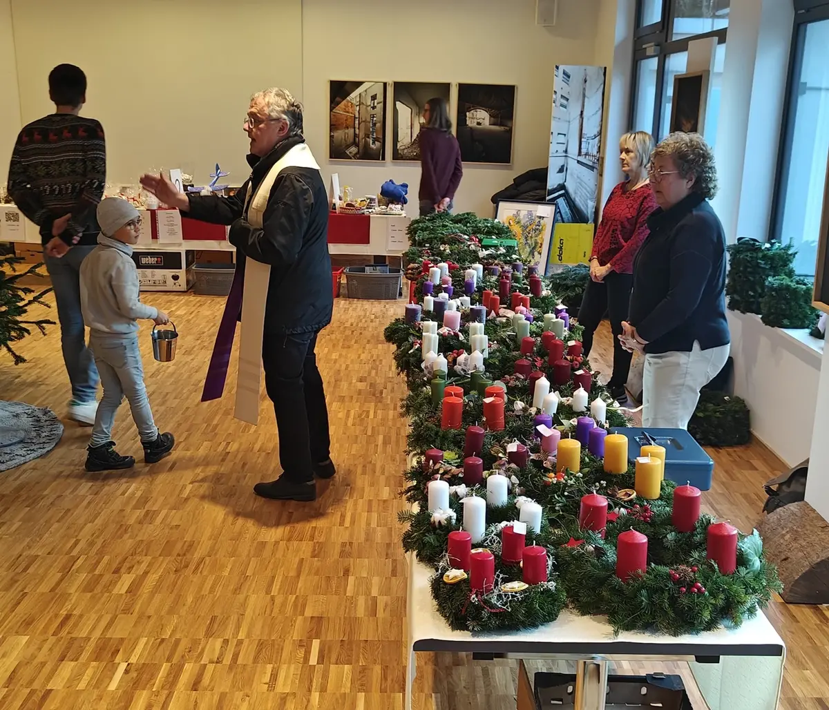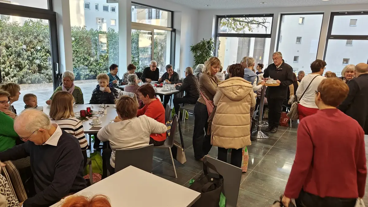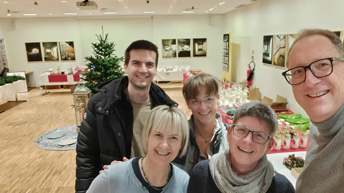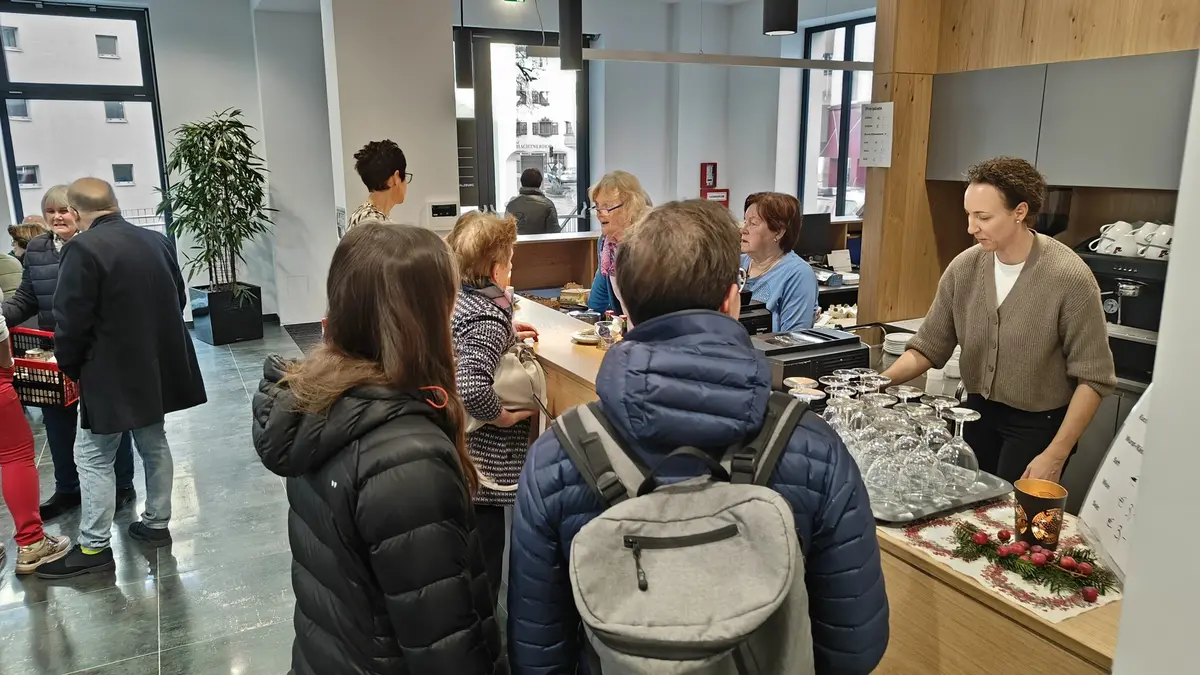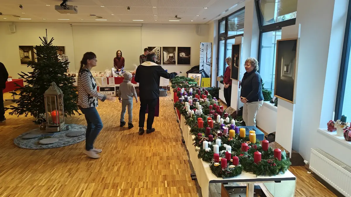 Es strömten wieder sehr viele Besucher*innen zu unserem Adventmarkt, um sich für die Weihnachtszeit mit einem Adventkranz, mit Keksen, Bauernbrot, Likören, Weihnachtsschokoladen und vielen anderen Köstlichkeiten einzudecken. Entweder für den Eigenbedarf oder auch, um einem geliebten Menschen eine Freude zu bereiten. Und manche trieb die Neugier auf das sanierte Tagungshaus an. Im Eingangsbereich ließ sich bei Kaffee, Kuchen, Sekt und Wein trefflich über das neu strukturierte und nunmehr barrierefreie Bildungshaus diskutieren. Schon bald war kein Sitzplatz mehr frei, so dass kurzerhand ein weiterer Seminarraum zum „Kaffeehaus“ umfunktioniert wurde.