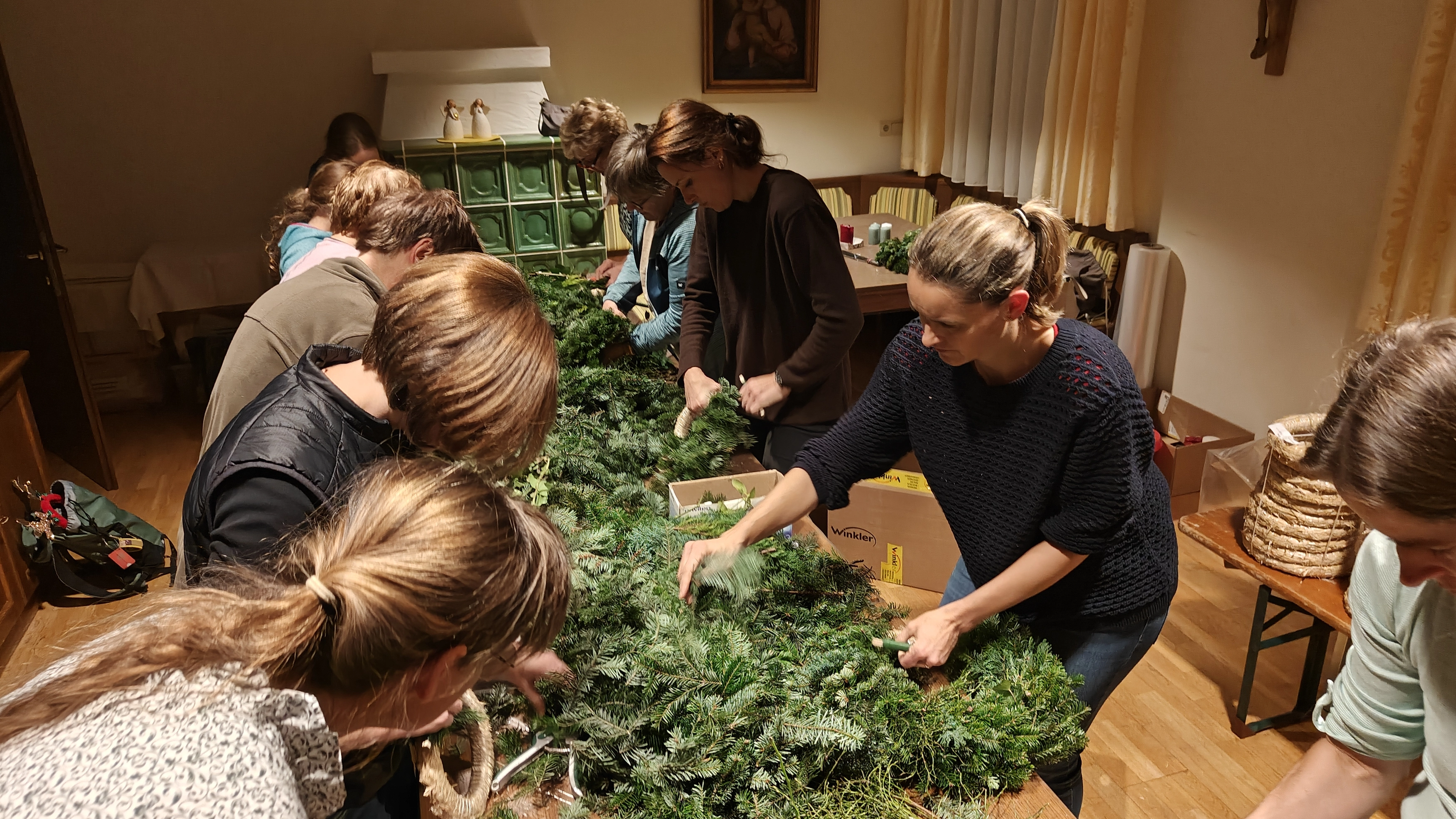 die 12 Adventkranzbinderinnen und Schmückerinnen