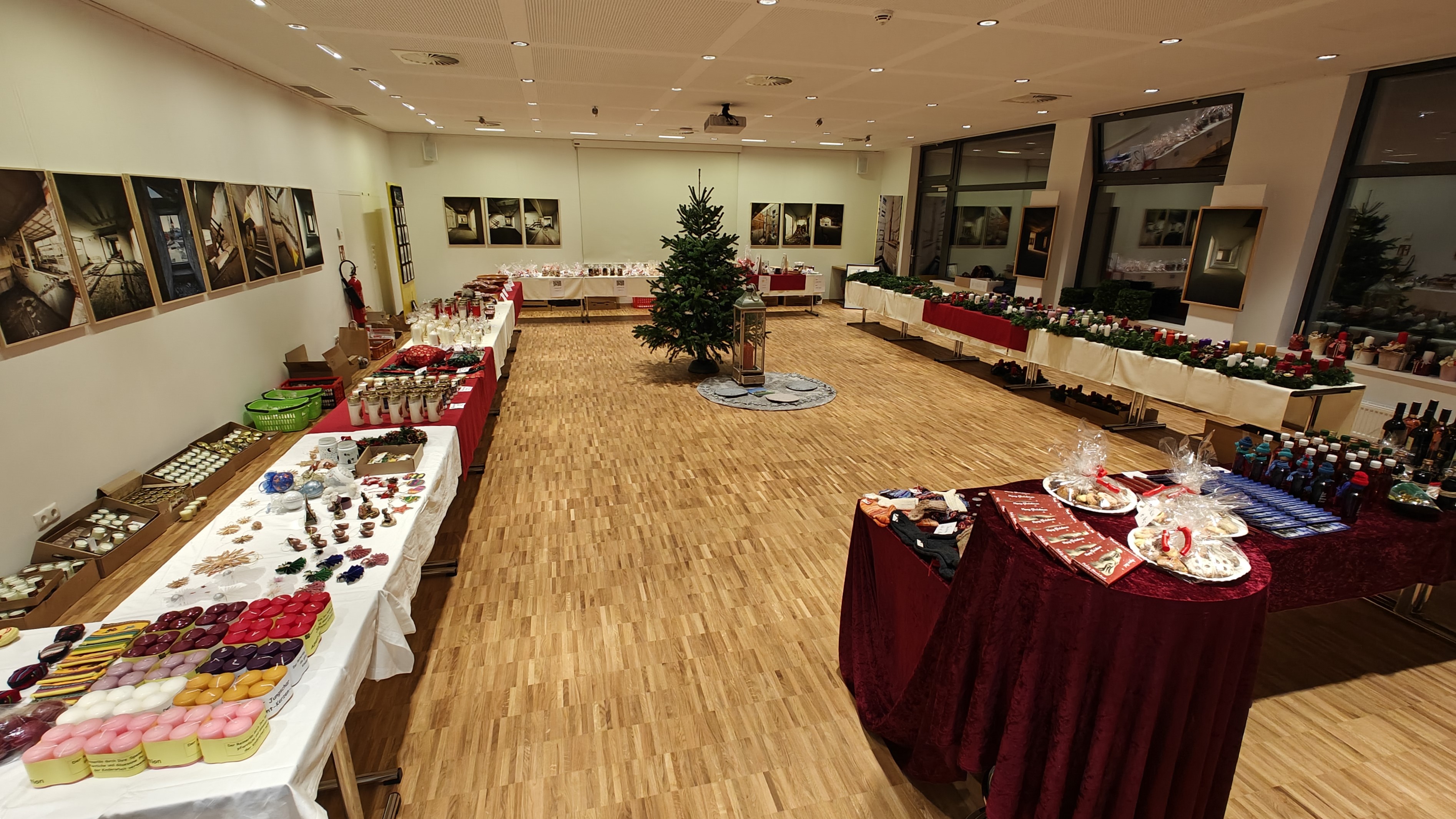 Es strömten wieder sehr viele Besucher*innen zu unserem Adventmarkt, um sich für die Weihnachtszeit mit einem Adventkranz, mit Keksen, Bauernbrot, Likören, Weihnachtsschokoladen und vielen anderen Köstlichkeiten einzudecken. Entweder für den Eigenbedarf oder auch, um einem geliebten Menschen eine Freude zu bereiten. Und manche trieb die Neugier auf das sanierte Tagungshaus an. Im Eingangsbereich ließ sich bei Kaffee, Kuchen, Sekt und Wein trefflich über das neu strukturierte und nunmehr barrierefreie Bildungshaus diskutieren. Schon bald war kein Sitzplatz mehr frei, so dass kurzerhand ein weiterer Seminarraum zum „Kaffeehaus“ umfunktioniert wurde.
