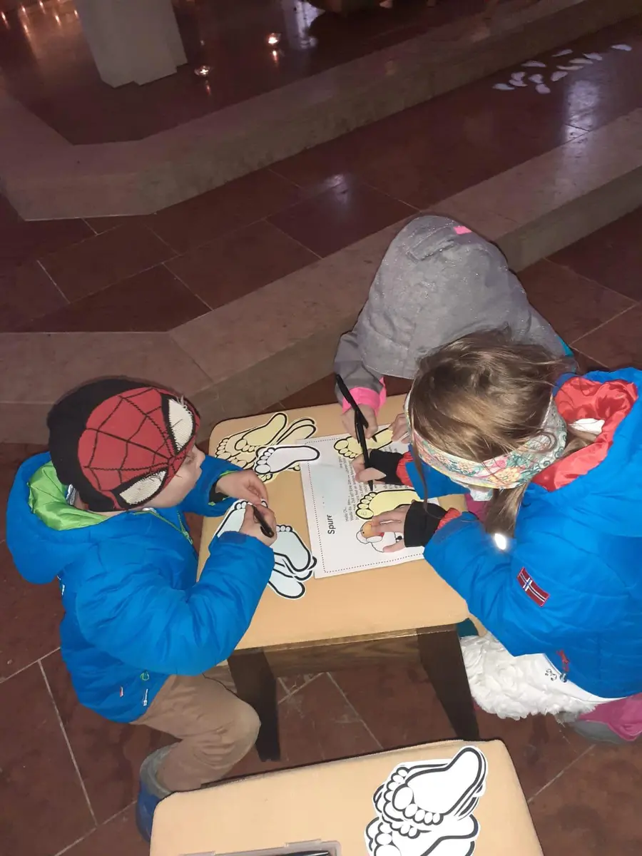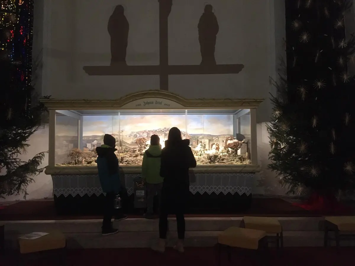 Es kamen auch viele Familien mit ihren Kindern, um sich bei den Stationen mit dem Thema Weihnachten auseinanderzusetzen. So malten und legten die Kinder mit ihren Eltern eine Fußspur zum Christkind, gestalteten einen Sternenhimmel, entzündeteten ein Friedenslicht. Im Mittelpunkt des Weihnachtsweges stand das Christuskind in der Krippe, dargestellt in einer echten Krippe vor dem Altar und in der Seisl-Krippe der Stadtpfarre Wörgl, die den Betrachter einer Zeitreise gleich in die Welt der Geburt Jesu hievt. So war auf diesem Weg zur Weihnacht für jeden Geschmack etwas dabei.