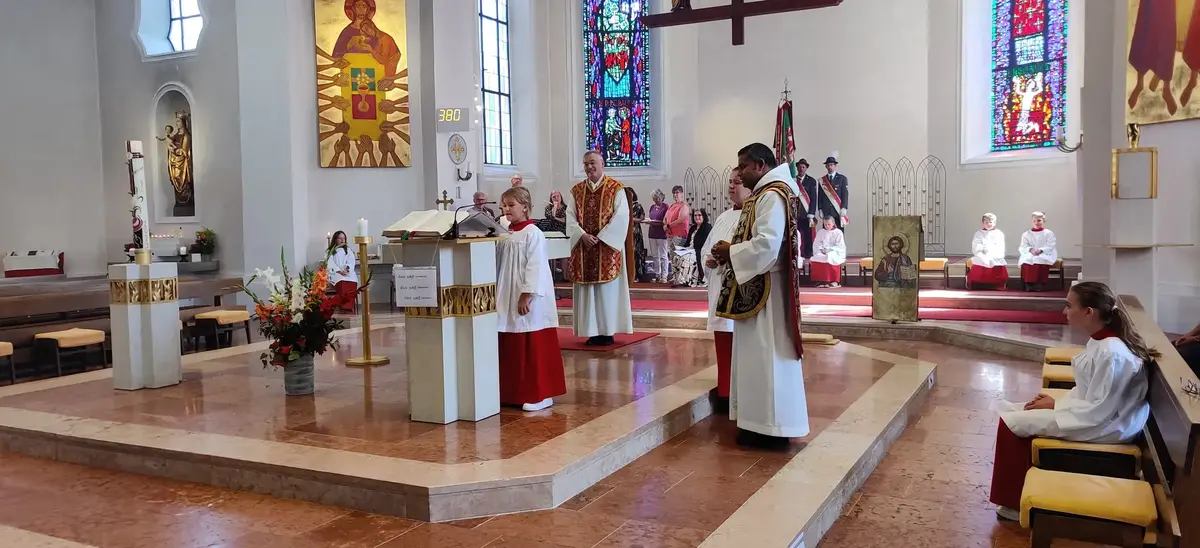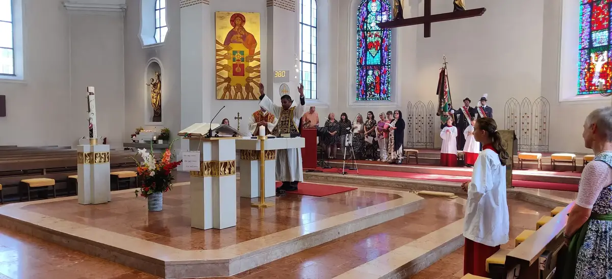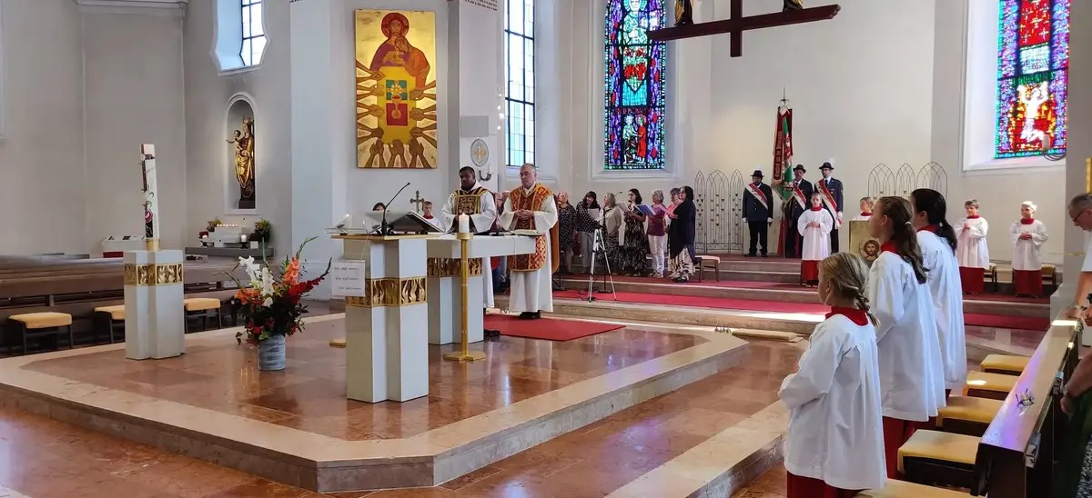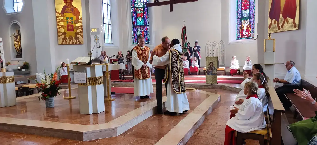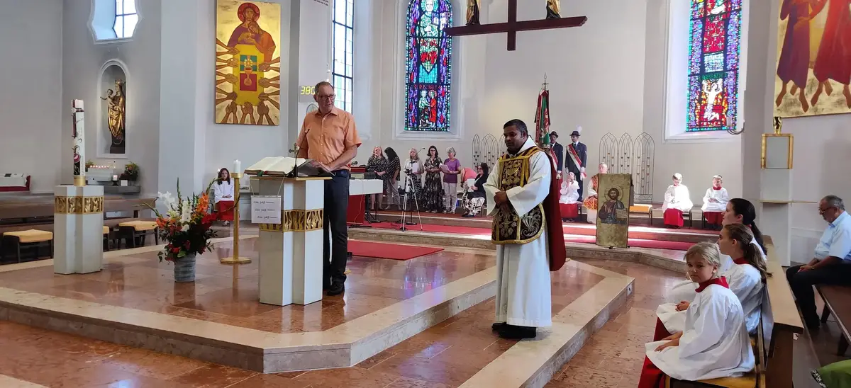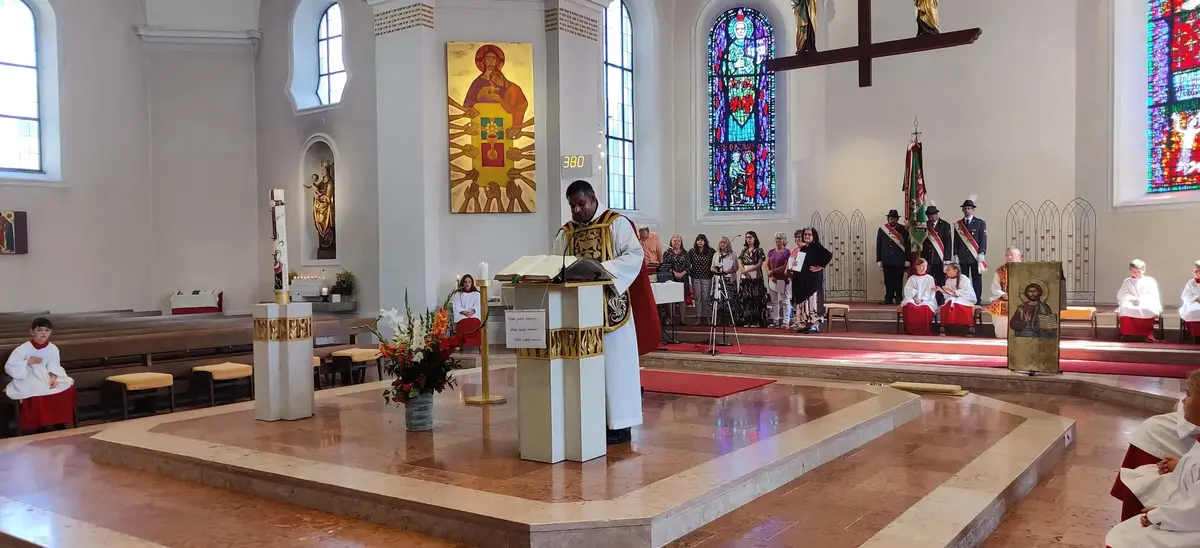 Am Sonntag, den 13. August 2023, wurde beim Patrozinium mit und für Pater Charles anlässlich seiner Verabschiedung aus Wörgl ein Dankgottesdienst mit anschließender Agape im Kirchhof gefeiert. Neben Pfarrer Christian Hauser, der mit Pater Charles die Messe konzelebrierte, und PGR-Obmann Heinz Werlberger waren auch Bürgermeister Michael Ríedhart und Vizebürgermeister Kaya Kayahan anwesend, um Pater Charles für sein vierjähriges Wirken in Wörgl und Bruckhäusl zu danken.