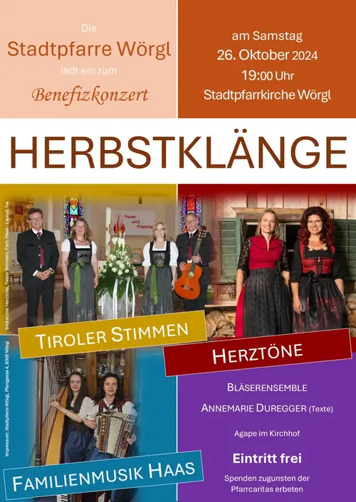 Am Nationalfeiertag veranstaltete die Stadtpfarre Wörgl ein Benefizkonzert, das unter dem Motto "HERBSTKLÄNGE" stand.