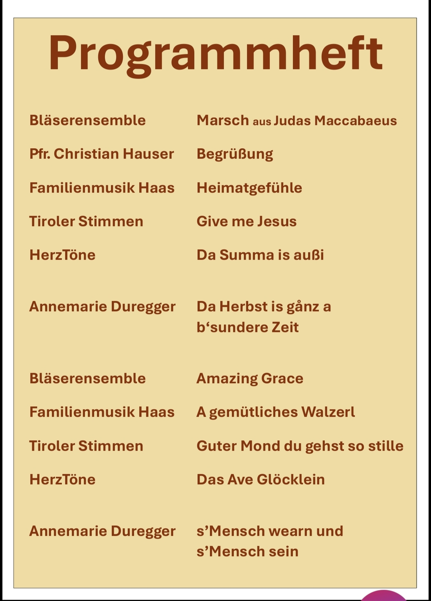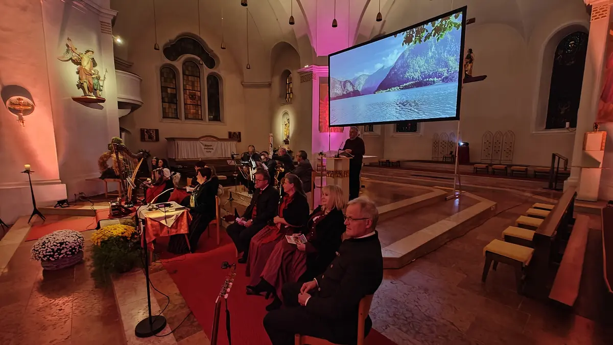Die Tiroler Stimmen, die HerzTöne und die Familienmusik Haas sowie ein Bläserensemble der BMK Bruckhäusl trugen zum großartigen musikalischen Herbstgenuß bei, bei dem Annemarie Duregger einige ihrer Gedichte vortrug. Lieder und Texte über die Endlichkeit des Menschen, über den Herbst und über die Liebe wärmten das Herz, regten zum Nachdenken oder einfach auch nur zum Genießen an. Heinz Werlberger zauberte mit einer Großbildpräsentation eine traumhaft herbstliche Stimmung in die Stadtpfarrkirche. Die Besucher*innen honorierten das Dargebotene am Ende mit Standing Ovations.