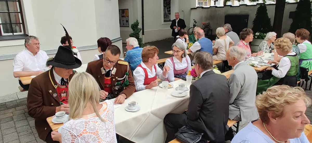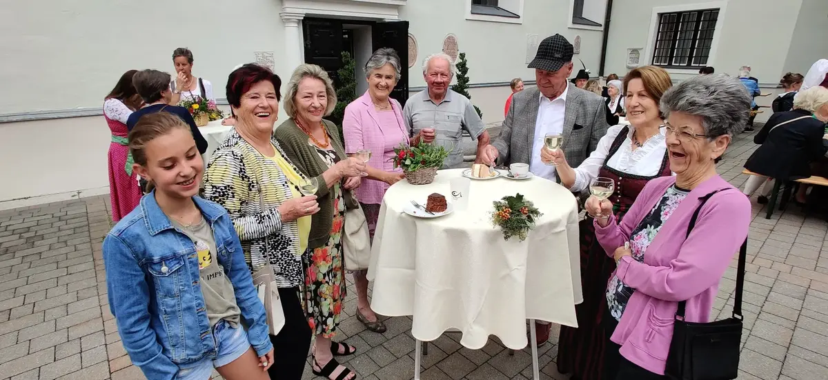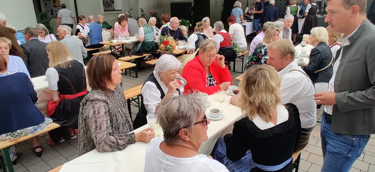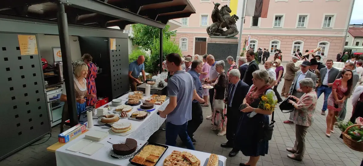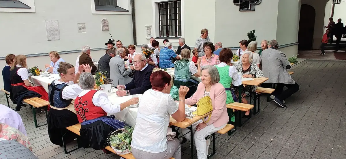 Nach dem Festgottesdienst, bei dem traditionellerweise auch eine Kräuterweihe stattfindet, die sich nach wie vor großer Beliebtheit erfreut, konnte aus einer Vielzahl an herrlichen Kuchen und Torten ausgewählt und fürstlich geschlemmert werden. Der "Hoagoscht" bzw. "Kaffeeklatsch" durfte dabei natürlich nicht zu kurz kommen. Bei angenehmen Wetter entpuppte sich der Kirchhof wieder einmal als idealer Treffpunkt. Mit Biertischen, Bänken (Leihgabe der FF Wörgl) und Stehtischen zauberte das Organisationsteam um Charlie Schallhart wieder ein herrliches Festambiente, an dem es sich nicht nur wegen der angenehmen Temperaturen trefflich feiern ließ. Auch der neu gewählte Bürgermeister, Michael Riedhart, Vizebürgermeister Kaya Kayahan und weitere Vertreter*innen der Gemeindepolitik ließen sich das Pfarrevent nicht entgehen.