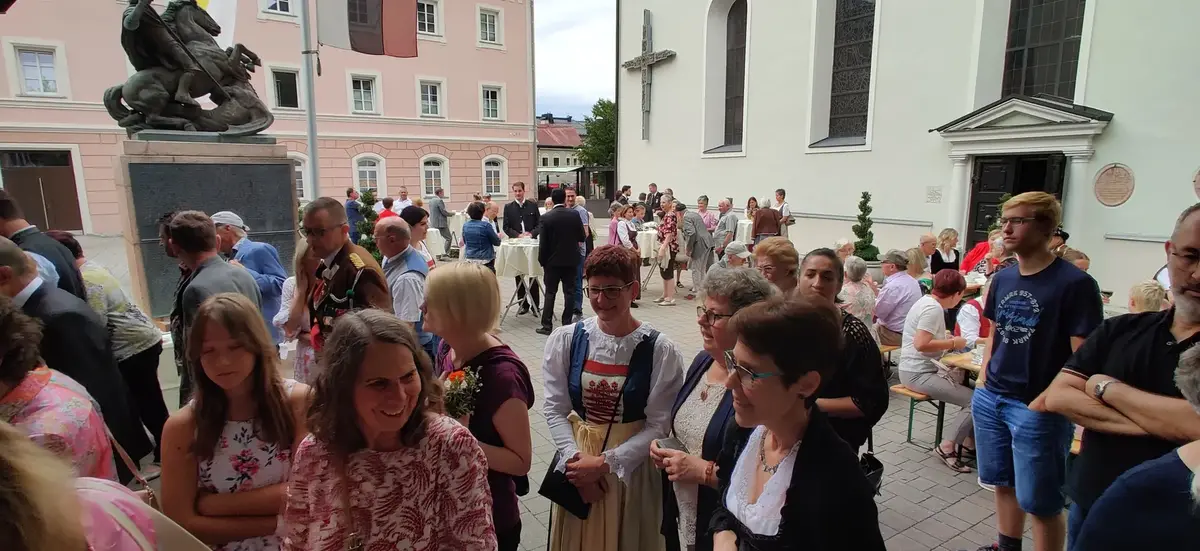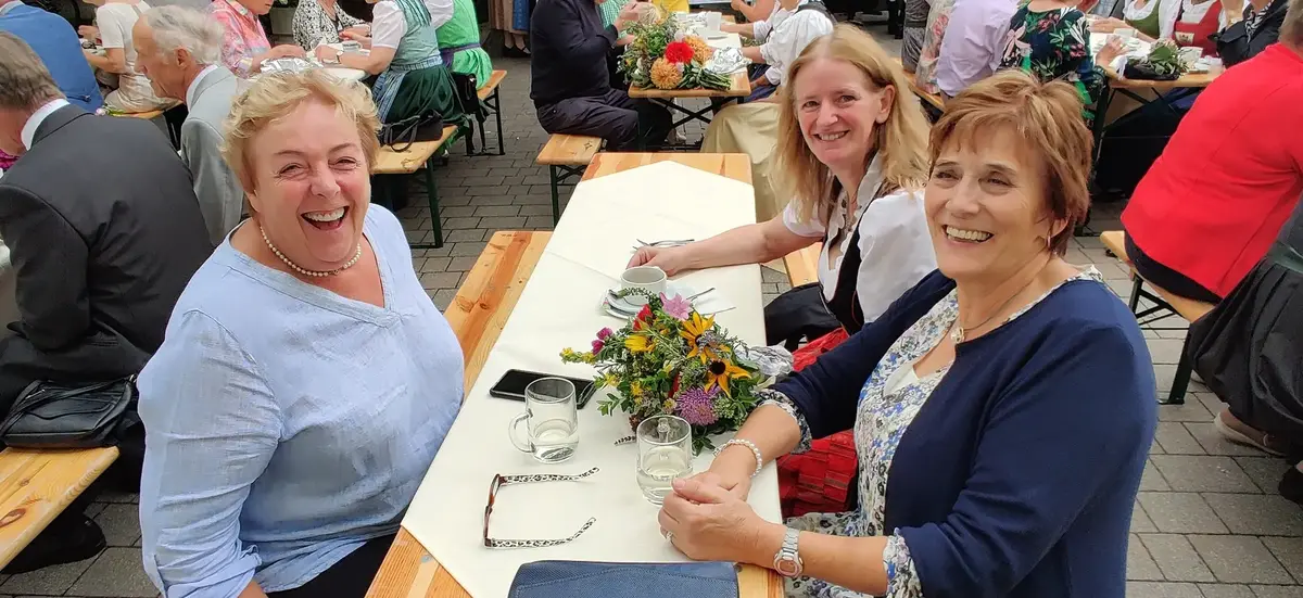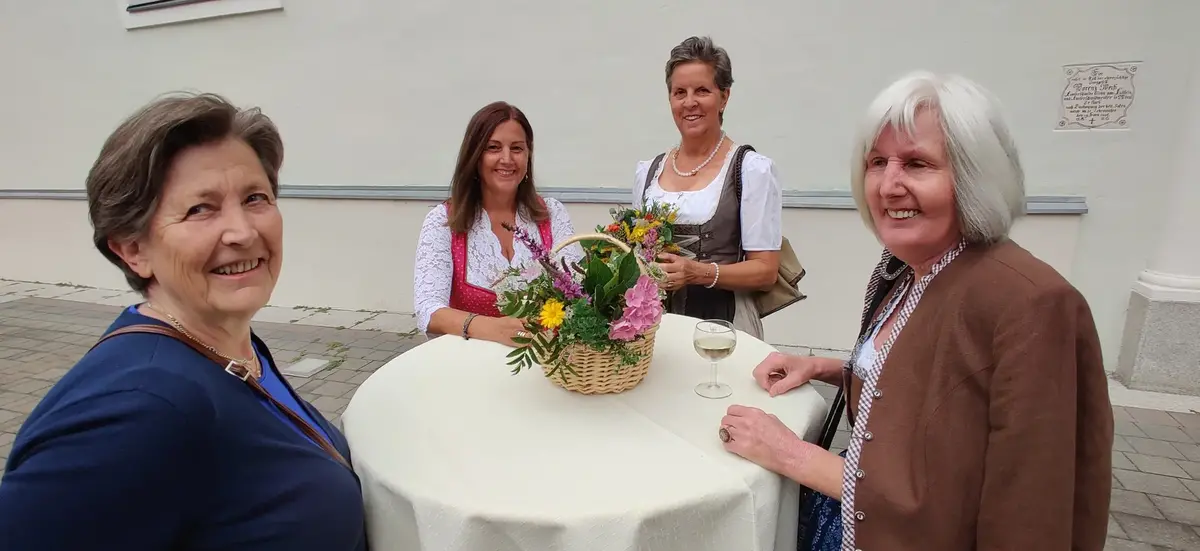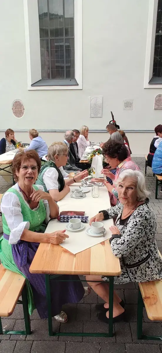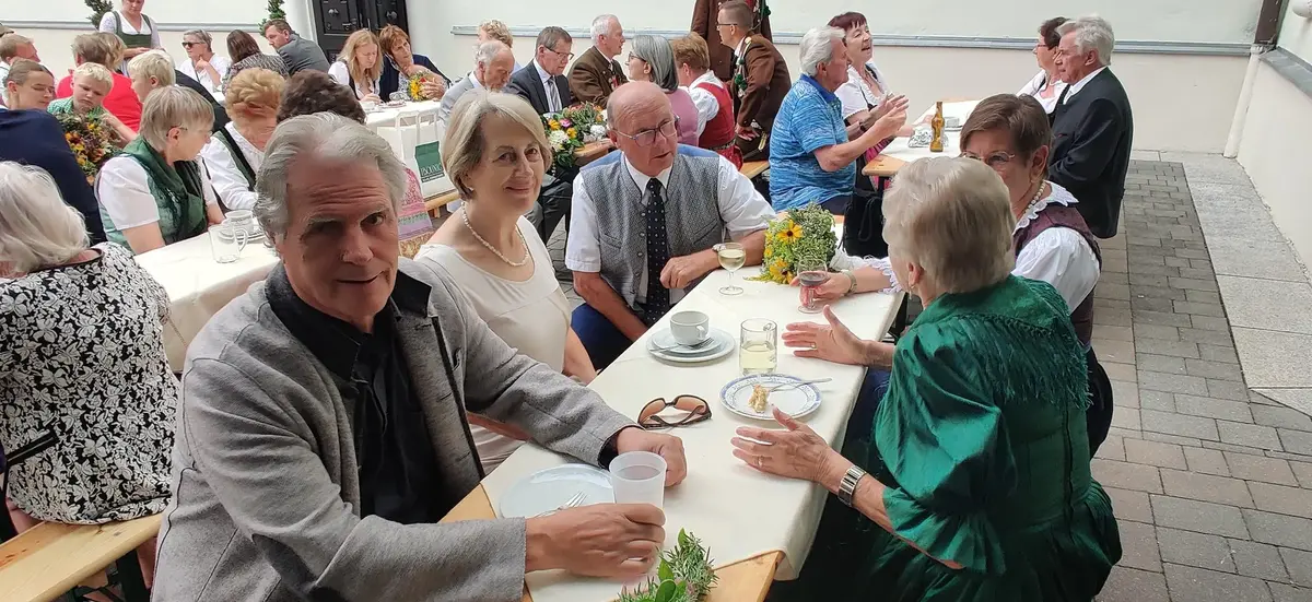 Nach dem Festgottesdienst, bei dem traditionellerweise auch eine Kräuterweihe stattfindet, die sich nach wie vor großer Beliebtheit erfreut, konnte aus einer Vielzahl an herrlichen Kuchen und Torten ausgewählt und fürstlich geschlemmert werden. Der "Hoagoscht" bzw. "Kaffeeklatsch" durfte dabei natürlich nicht zu kurz kommen. Bei angenehmen Wetter entpuppte sich der Kirchhof wieder einmal als idealer Treffpunkt. Mit Biertischen, Bänken (Leihgabe der FF Wörgl) und Stehtischen zauberte das Organisationsteam um Charlie Schallhart wieder ein herrliches Festambiente, an dem es sich nicht nur wegen der angenehmen Temperaturen trefflich feiern ließ. Auch der neu gewählte Bürgermeister, Michael Riedhart, Vizebürgermeister Kaya Kayahan und weitere Vertreter*innen der Gemeindepolitik ließen sich das Pfarrevent nicht entgehen.