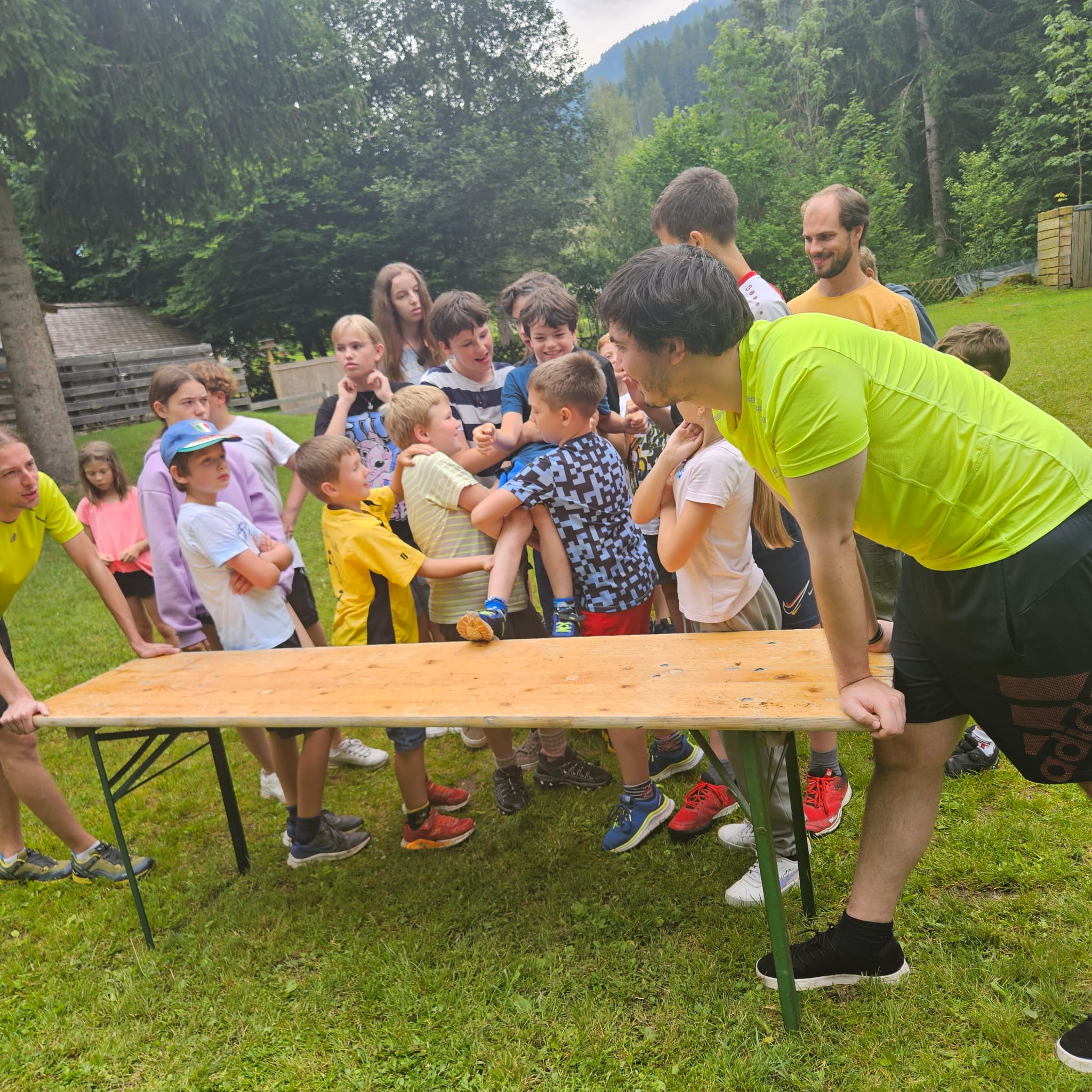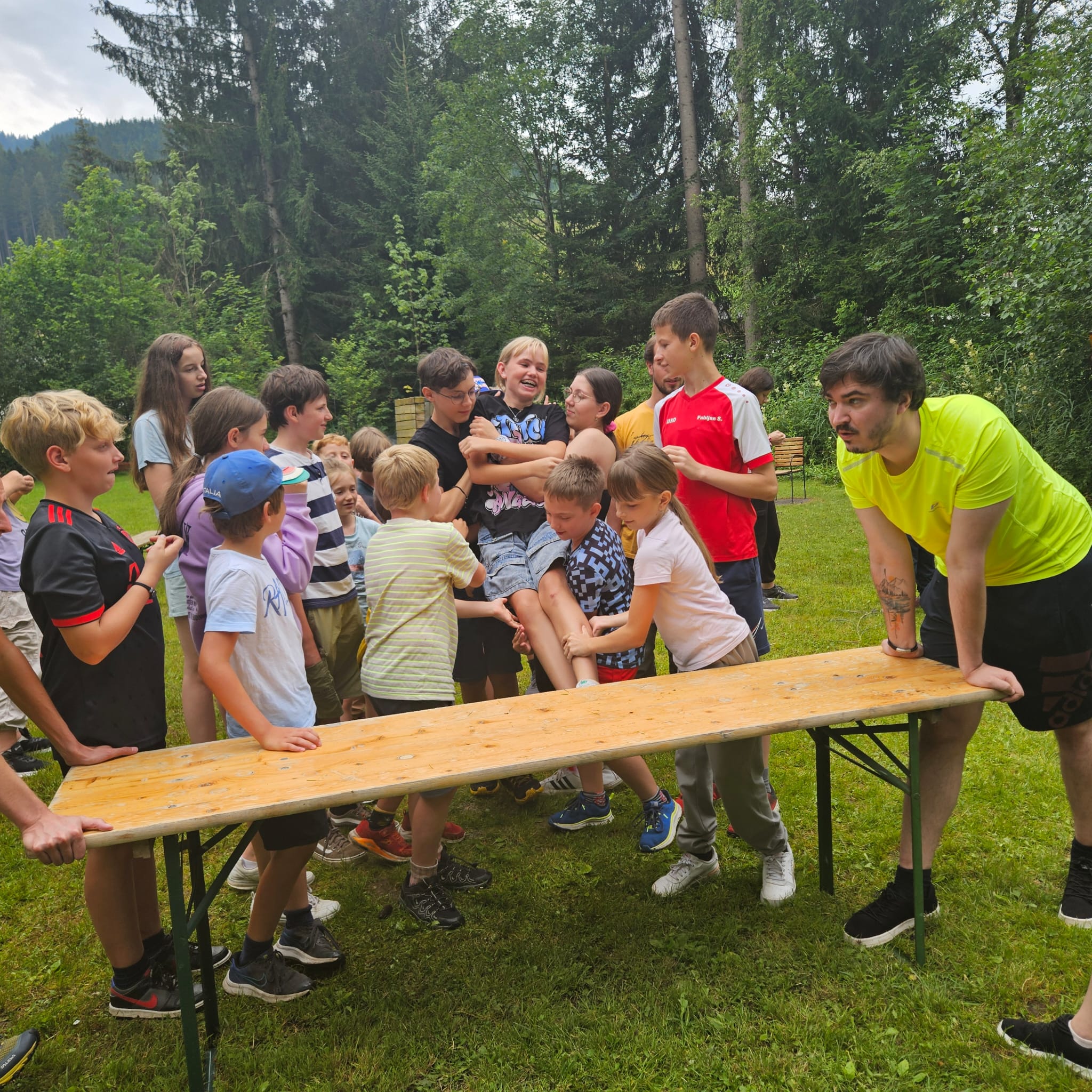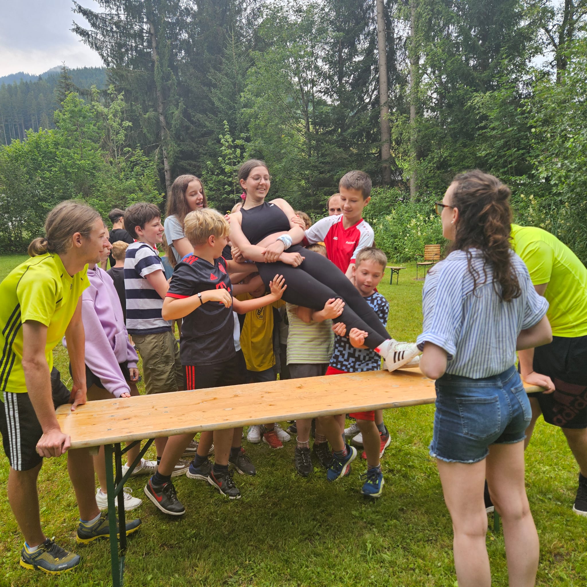 Auch heuer fand in der ersten Ferienwoche wieder das Ministrantenlager des Pfarrverbandes Wörgl-Bruckhäusl statt, diesmal in einer bereits vertrauten Unterkunft in Werfenweng im Salzburger Land. Die Rekordteilnehmerzahl von 31 MinistrantInnen aus beiden Pfarreien machte die Zimmereinteilung zu einer größeren Herausforderung als in den vergangenen Jahren, ermöglichte es uns aber auch, Gemeinschaft mit all ihren Aspekten im Rahmen verschiedener Programmpunkte besonders erfahrbar zu machen. So konnten sich die TeilnehmerInnen in verschiedenen Wettbewerben – Seilspringen, eine Dorfralley, Hindernisparcours und vielem mehr – untereinander, aber auch mit den Betreuern messen. Außerdem kamen, nicht zuletzt dank des prachtvollen Wetters, auch der Spaß beim Schwimmen, Plantschen und Relaxen am See nicht zu kurz. In verschiedenen erlebnispädagogischen Spielen konnten die MinistrantInnen spielerisch erleben, was es heißt, in sich selbst und in eine Gruppe vertrauen zu können, und sich auf dieses Vertrauen einzulassen. Gemeinsam mit der ausgezeichneten Verköstigung unserer Köchin Reni machten diese Aktivitäten auch das heurige Ministrantenlager zu einem unvergesslichen Erlebnis – sowohl für die Kinder, als auch für das 9-köpfige Lagerteam. Unser Dank gilt allen, die dieses Lager ermöglicht haben, an unsere Köchin Reni, an die Fahrdienste sowie an alle unsere Sponsoren.