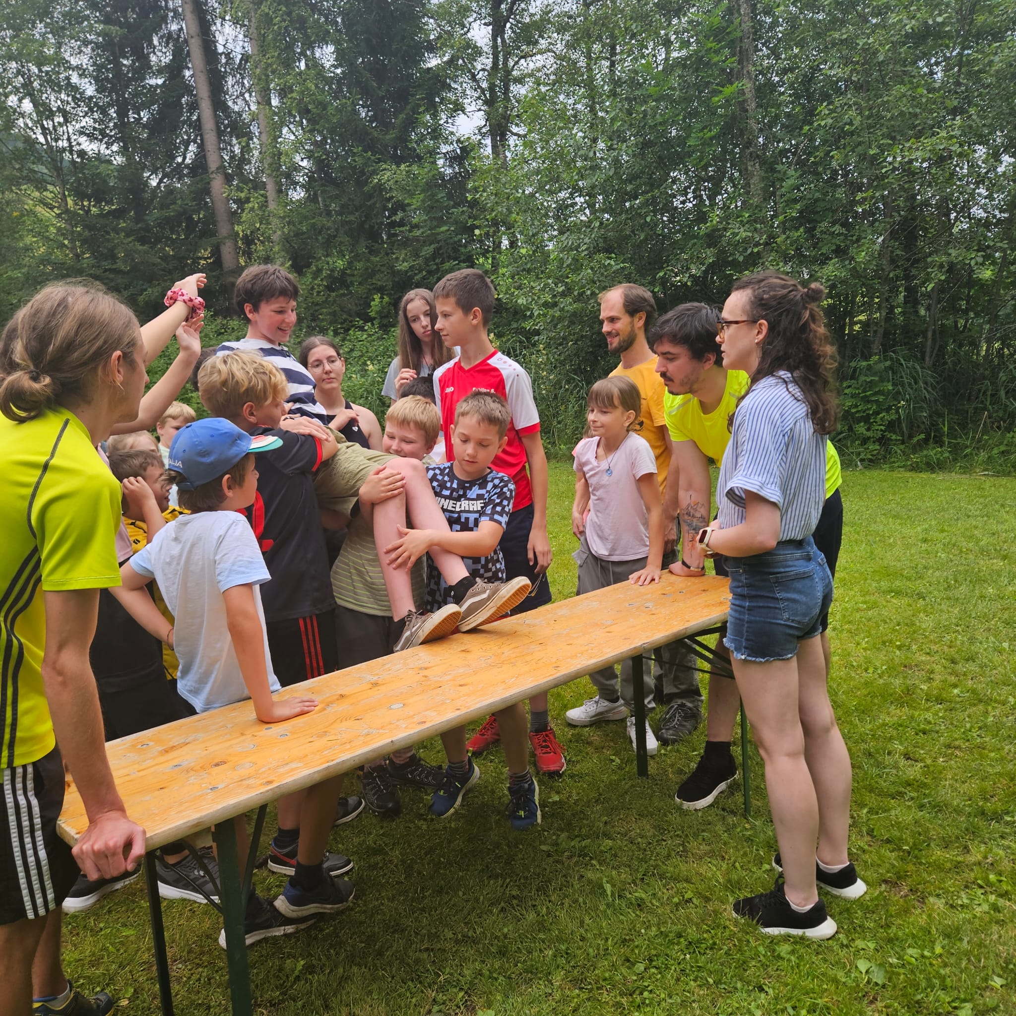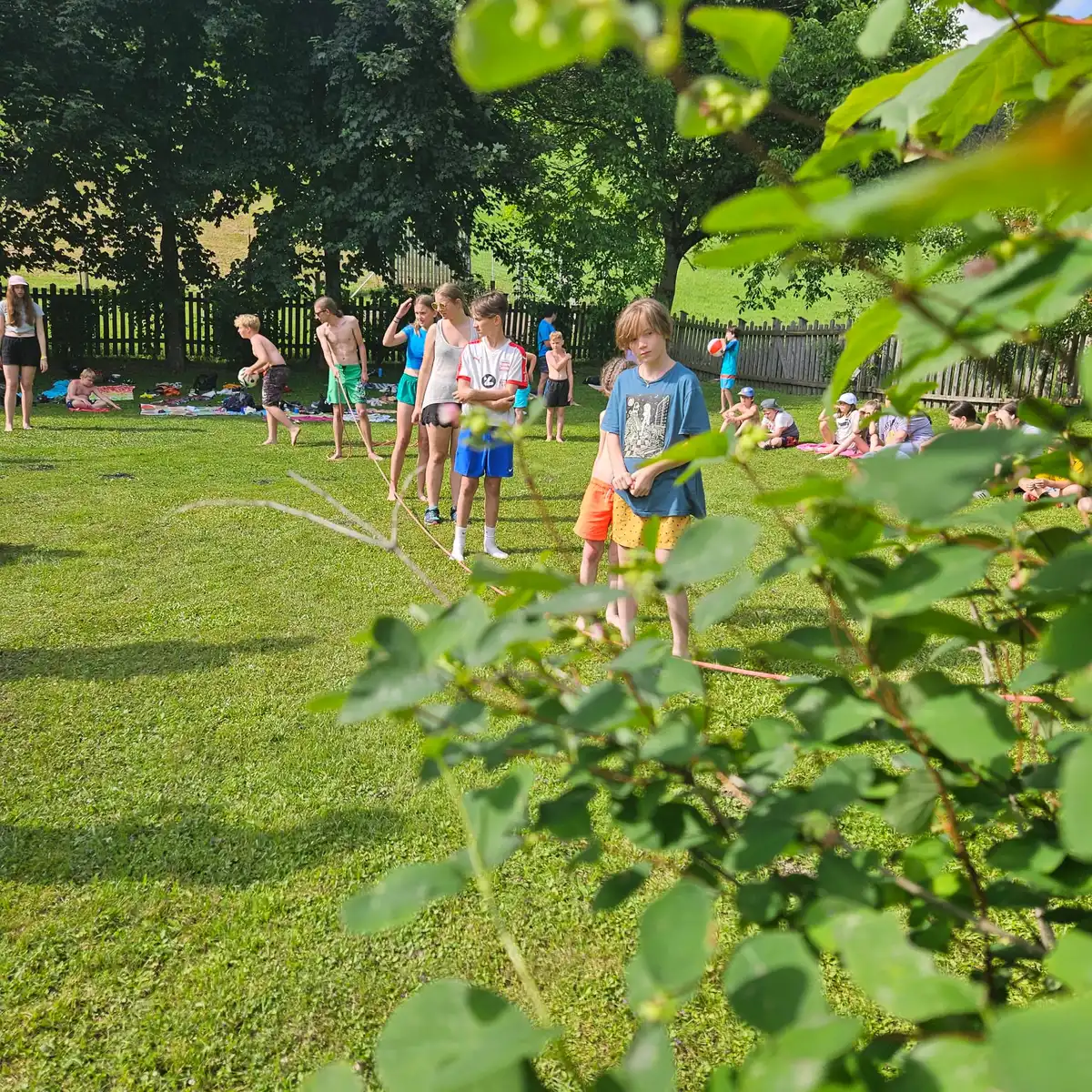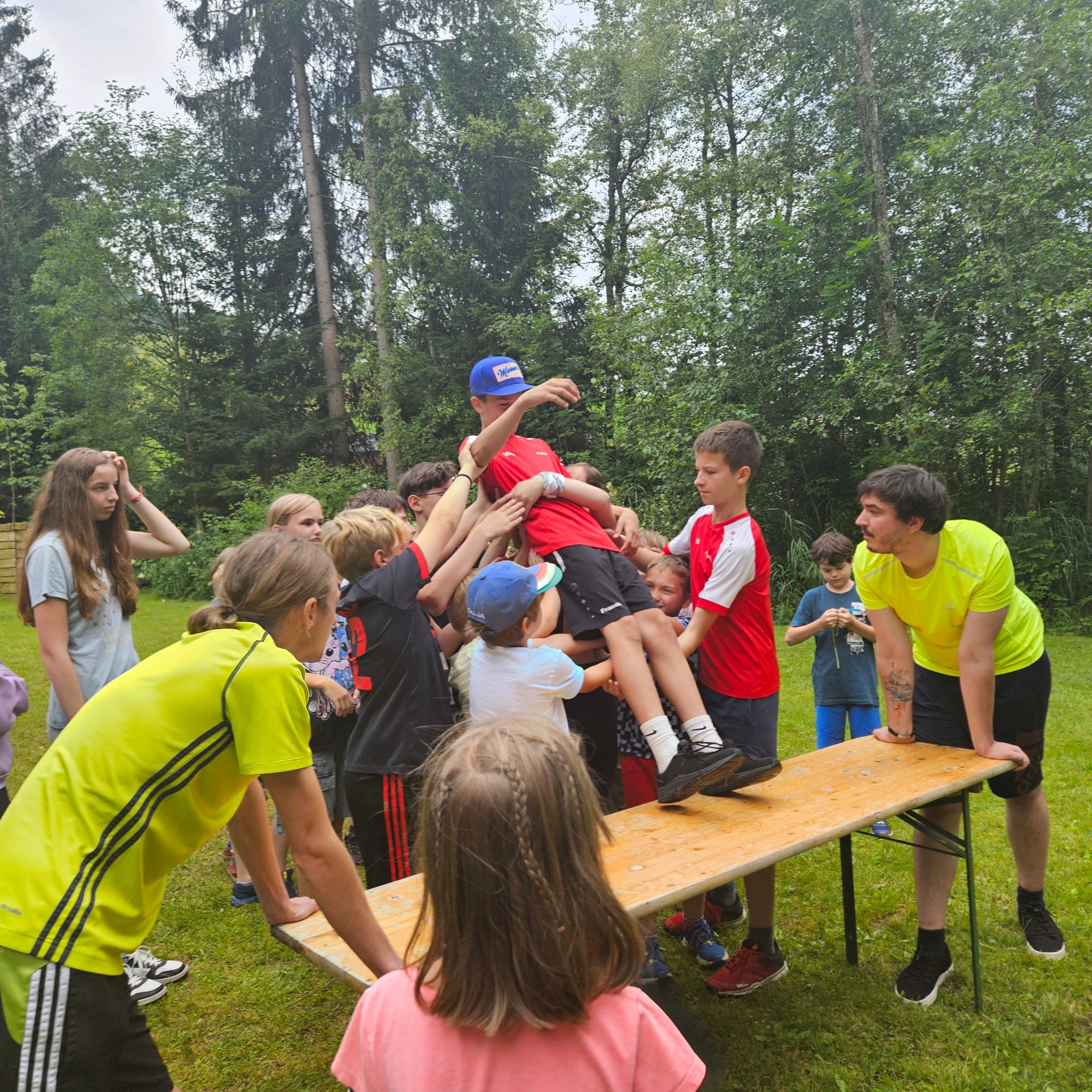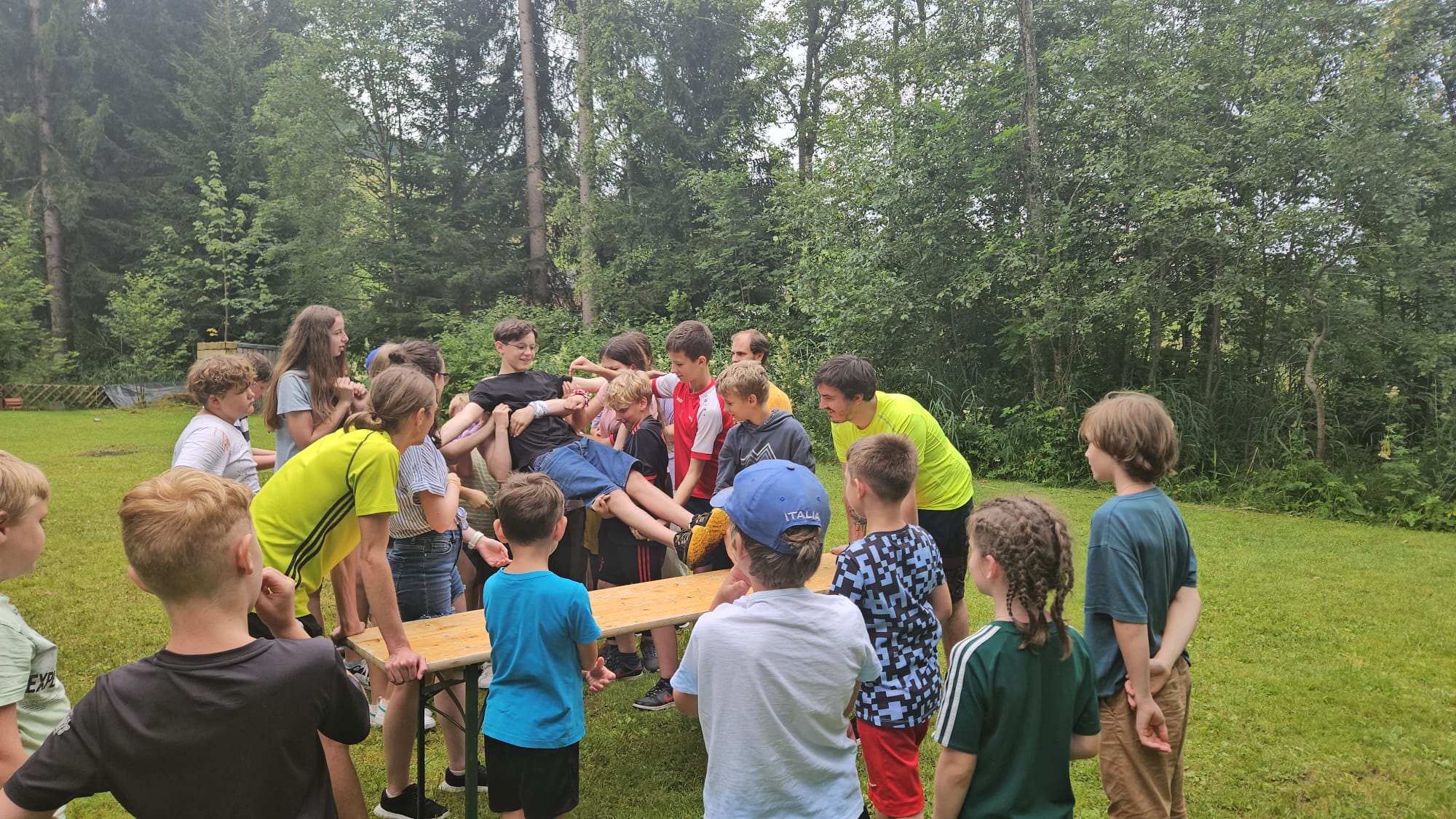 Auch heuer fand in der ersten Ferienwoche wieder das Ministrantenlager des Pfarrverbandes Wörgl-Bruckhäusl statt, diesmal in einer bereits vertrauten Unterkunft in Werfenweng im Salzburger Land. Die Rekordteilnehmerzahl von 31 MinistrantInnen aus beiden Pfarreien machte die Zimmereinteilung zu einer größeren Herausforderung als in den vergangenen Jahren, ermöglichte es uns aber auch, Gemeinschaft mit all ihren Aspekten im Rahmen verschiedener Programmpunkte besonders erfahrbar zu machen. So konnten sich die TeilnehmerInnen in verschiedenen Wettbewerben – Seilspringen, eine Dorfralley, Hindernisparcours und vielem mehr – untereinander, aber auch mit den Betreuern messen. Außerdem kamen, nicht zuletzt dank des prachtvollen Wetters, auch der Spaß beim Schwimmen, Plantschen und Relaxen am See nicht zu kurz. In verschiedenen erlebnispädagogischen Spielen konnten die MinistrantInnen spielerisch erleben, was es heißt, in sich selbst und in eine Gruppe vertrauen zu können, und sich auf dieses Vertrauen einzulassen. Gemeinsam mit der ausgezeichneten Verköstigung unserer Köchin Reni machten diese Aktivitäten auch das heurige Ministrantenlager zu einem unvergesslichen Erlebnis – sowohl für die Kinder, als auch für das 9-köpfige Lagerteam. Unser Dank gilt allen, die dieses Lager ermöglicht haben, an unsere Köchin Reni, an die Fahrdienste sowie an alle unsere Sponsoren.