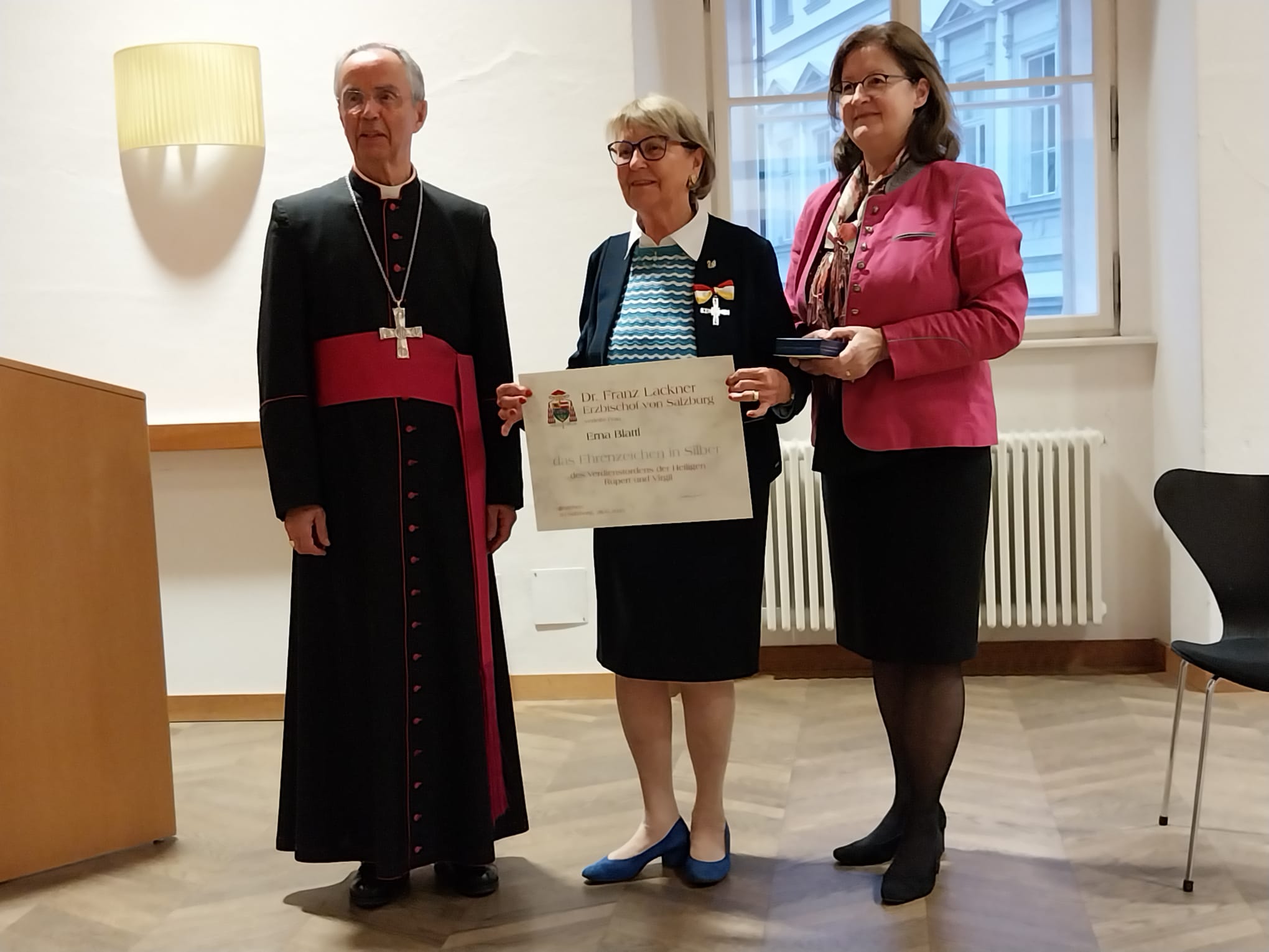Weihbischof Dr. Hansjörg Hofer und Ordinariatskanzlerin KR Dr. Elisabeth Kandler-Mayr waren als Vertreter der Erzdiözese zugegen und überrreichten die Orden.