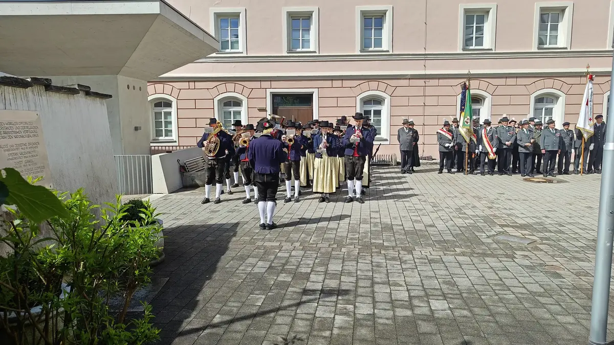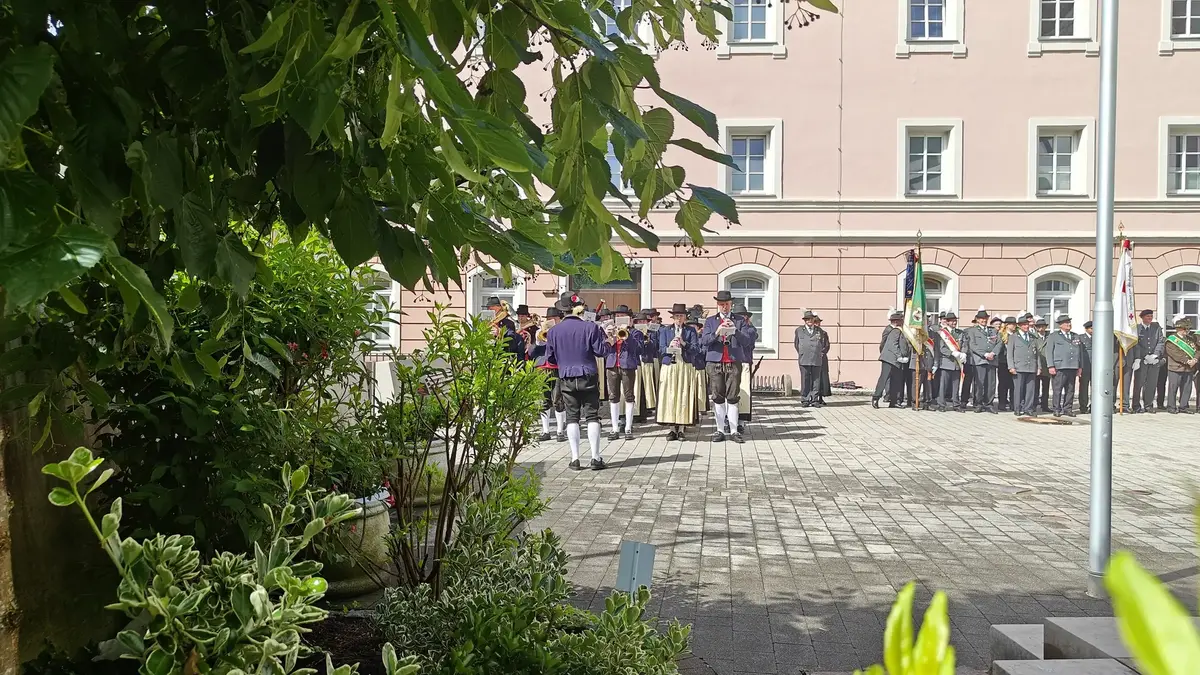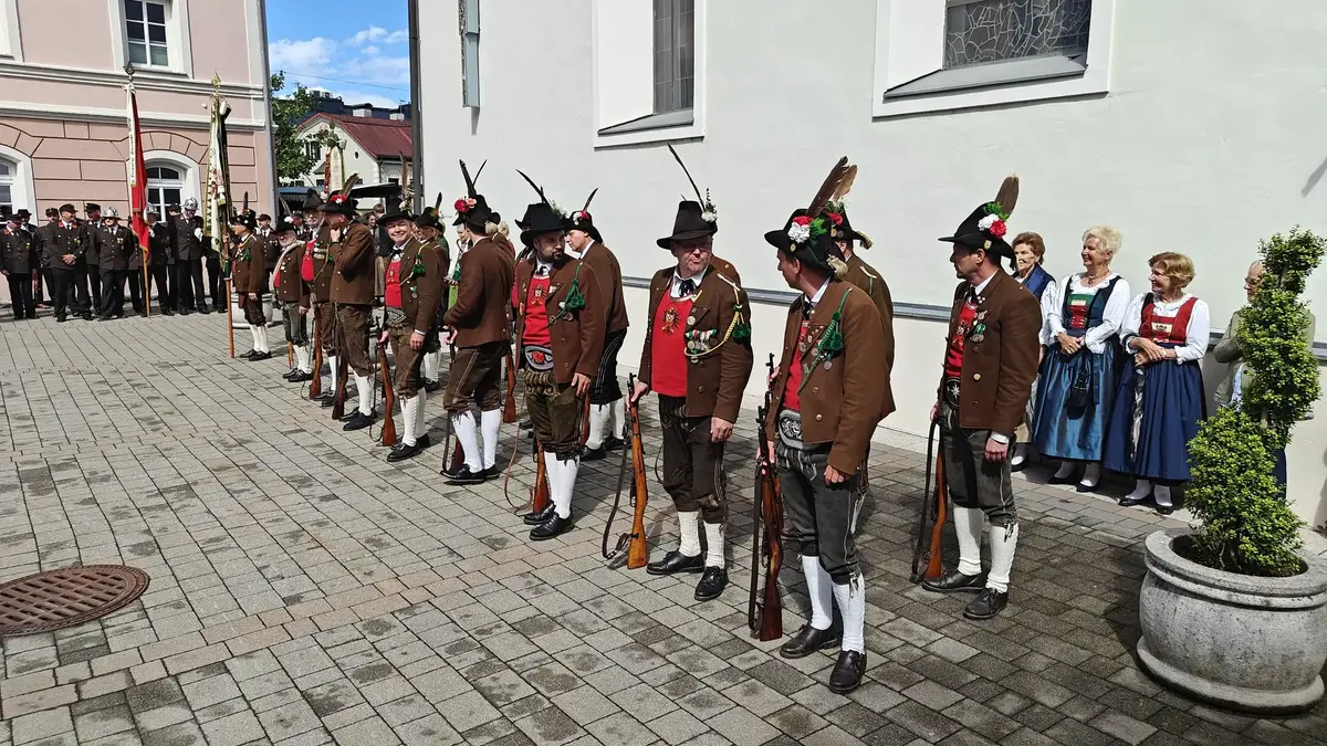 Im Anschluss an den Gottesdienst wurde im Kirchhof – nun bei schönem Wetter und begleitet von festlichen Klängen der Stadtmusikkapelle - zu Ehren des neuen Schützenkuraten eine Ehrensalve abgefeuert. Am Ende der Zeremonie wurde mit dem obligatorischem Schnapserl angestoßen.