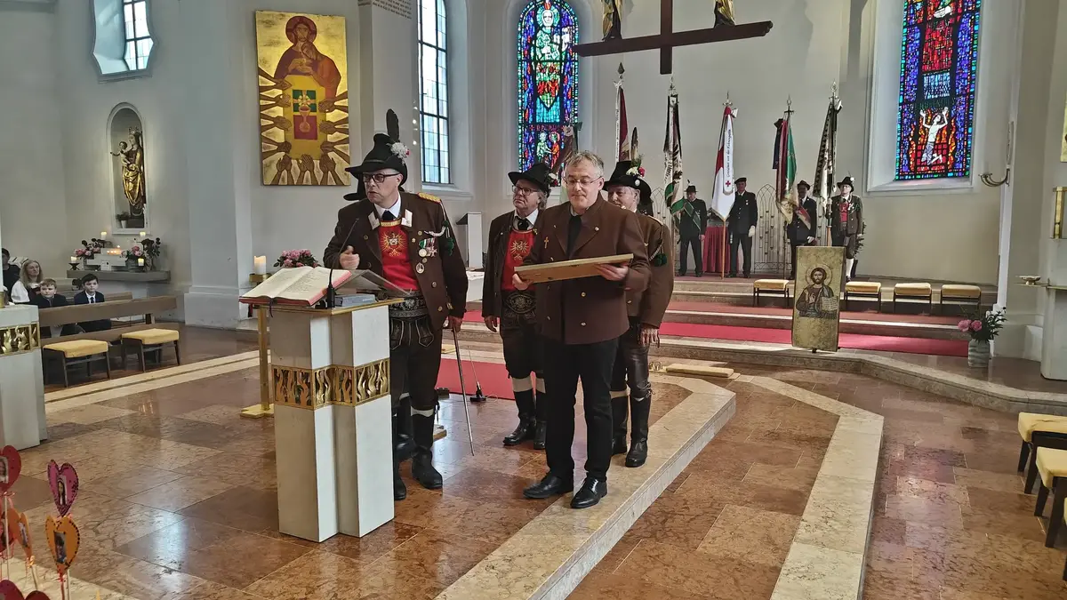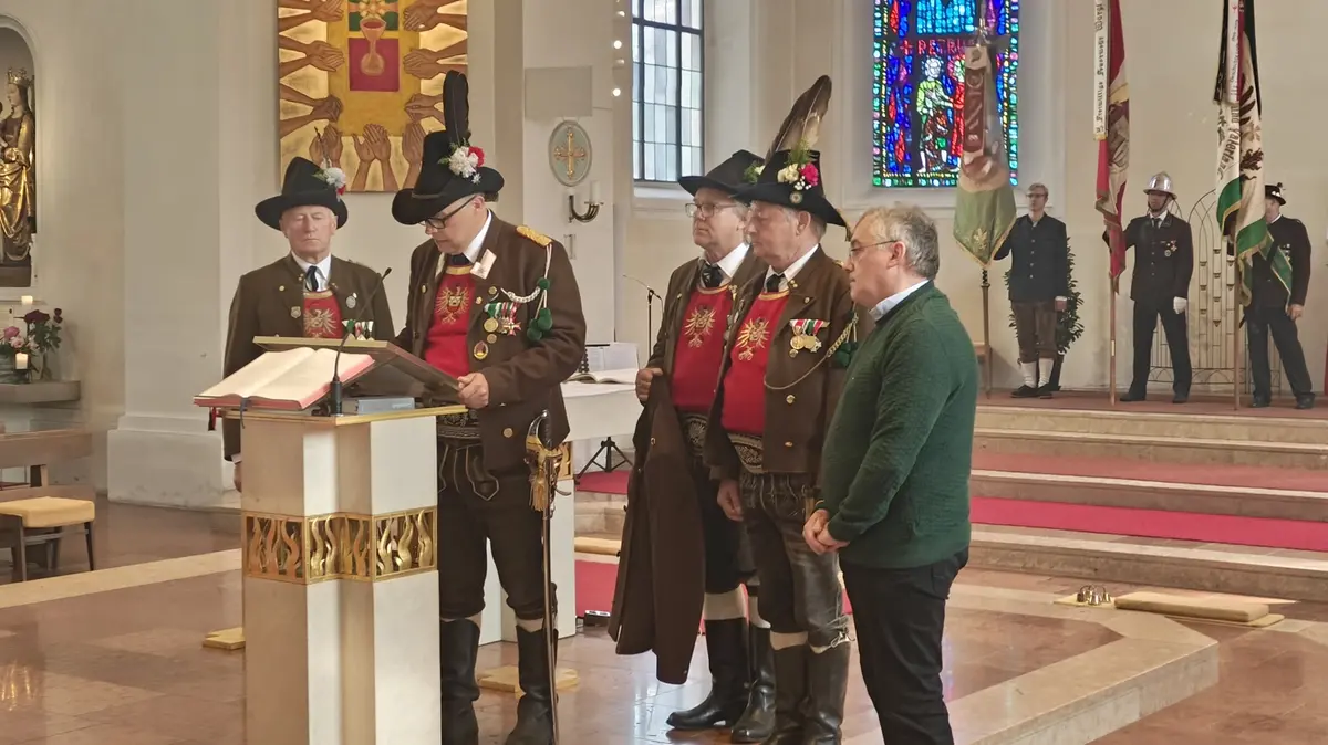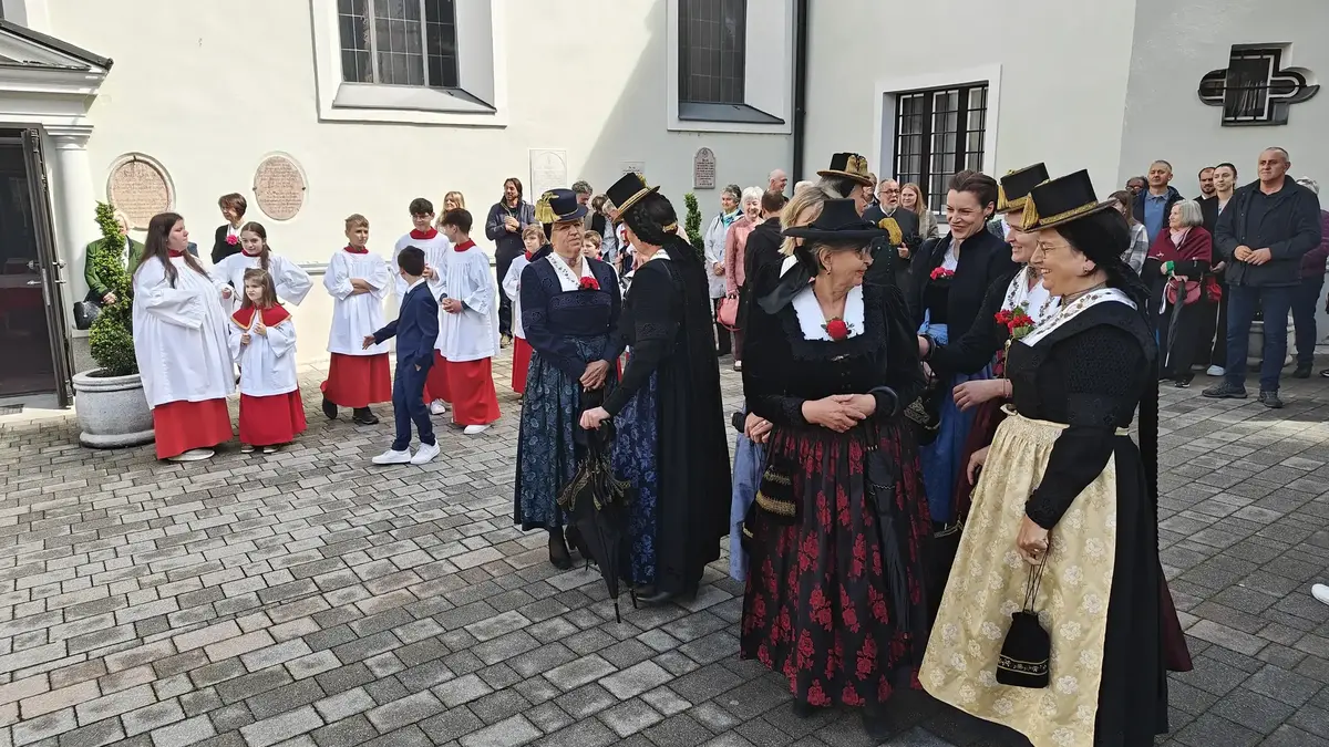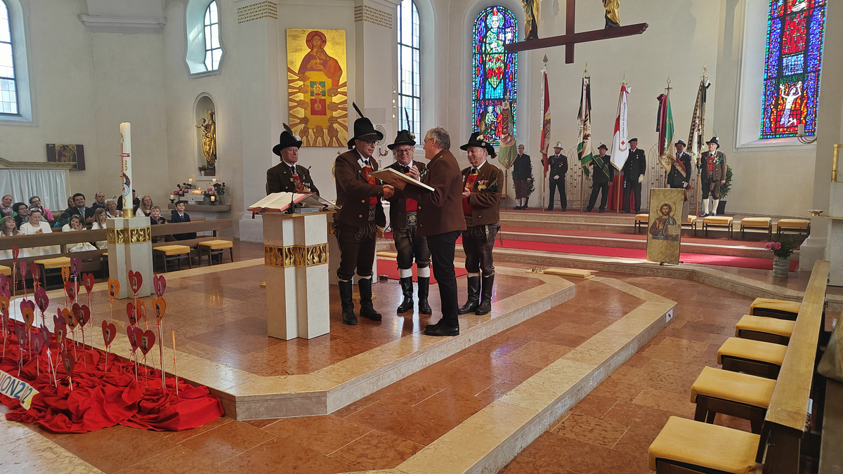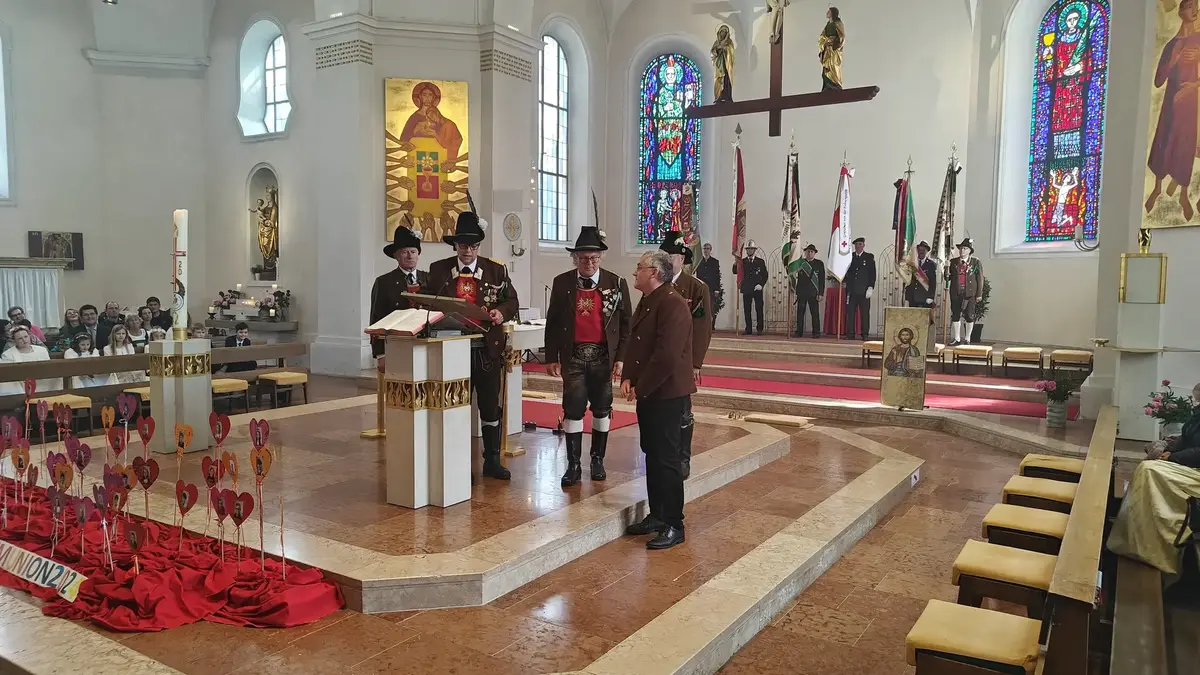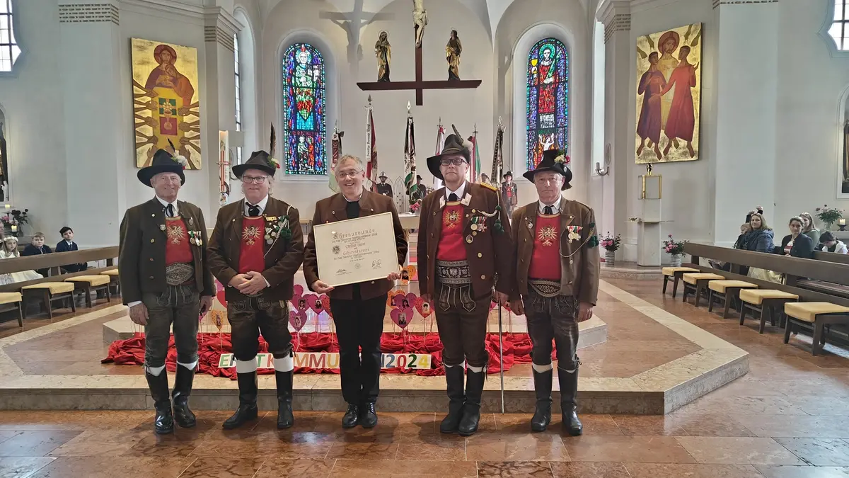 Auch wenn die Fronleichnamsprozession wegen des intensiven Regens vor Beginn des Gottesdienstes abgesagt werden musste, konnte das diesjährige Fronleichnamsfest mit einem überraschenden Höhepunkt aufwarten. Major Manfred Schachner, Bataillonskommandant des Schützenbataillons Kufstein und Obmann der Sepp Innerkofler Standschützenkompanie Wörgl, bat die versammelte Feiergemeinde, unter ihnen auch Bürgermeister Michael Riedhart, Stadt- und Gemeinderäte, Pfarrgemeinderäte und Pfarrgemeinderatsobmann Heinz Werlberger, die Fahnenabordnungen und Vertreter*innen der Traditionsvereine und Kassettl-Frauen, am Ende des Gottesdienstes noch auszuharren. Den Grund dafür ließ er offen.