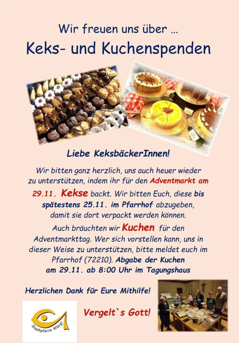 Dazu benötigen wir wieder Keks- und Kuchenspenden.